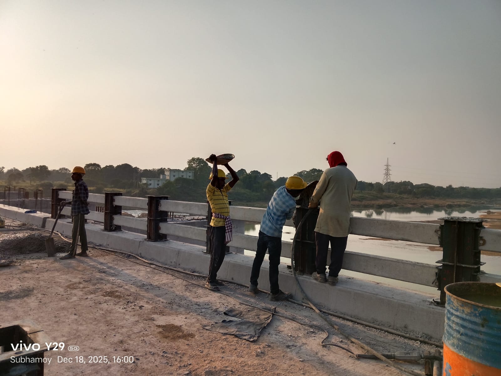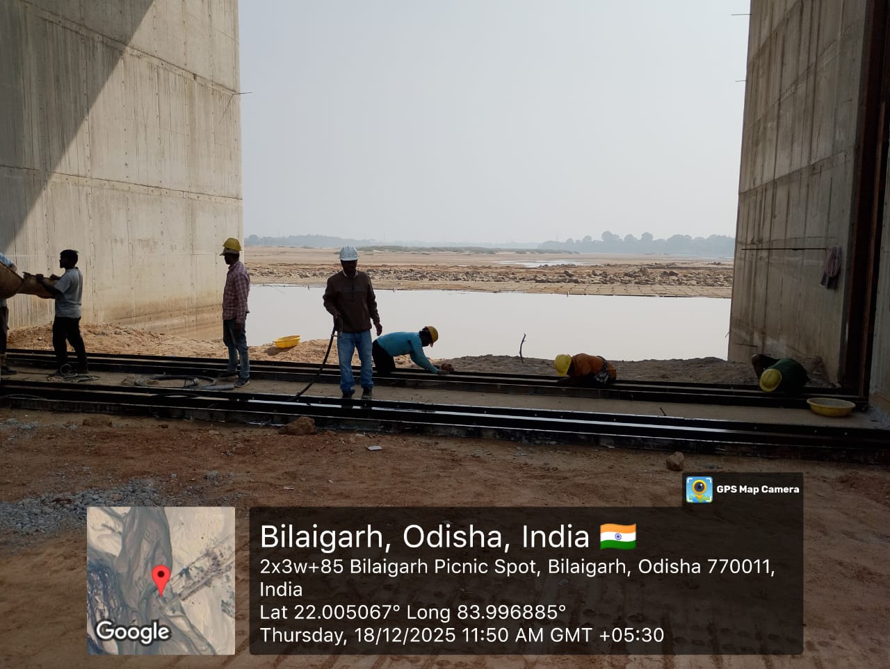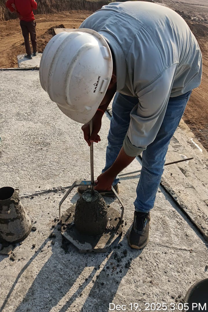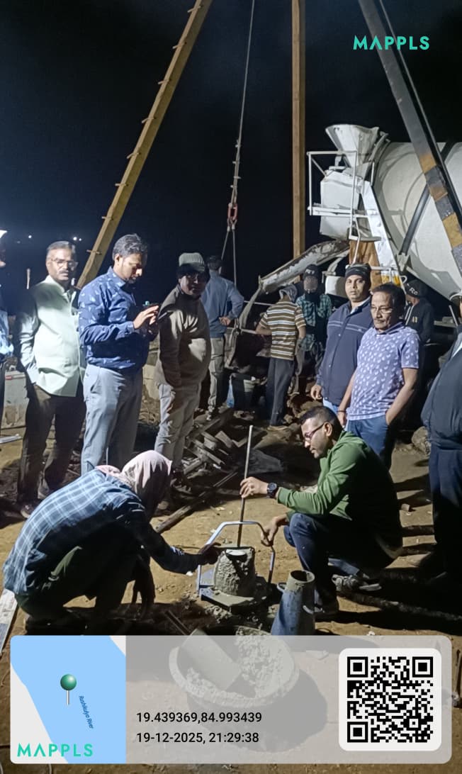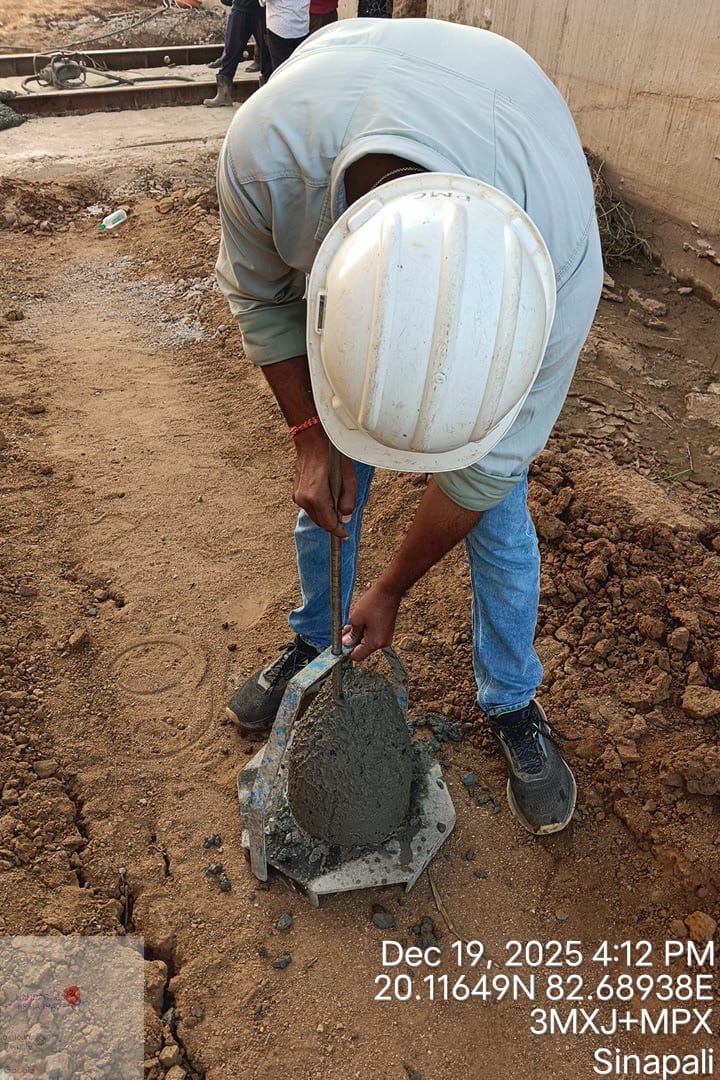 Concrete casting with M35A20 grade of stoplog & main gate grooves sill beam at bay-7 (barrage bay no.5) block-1 is in progress in presence of JE,KID, PM EPC agency, Site Engineers of PMC & EPC agency. Slump achieved 74mm on 19.12.2025