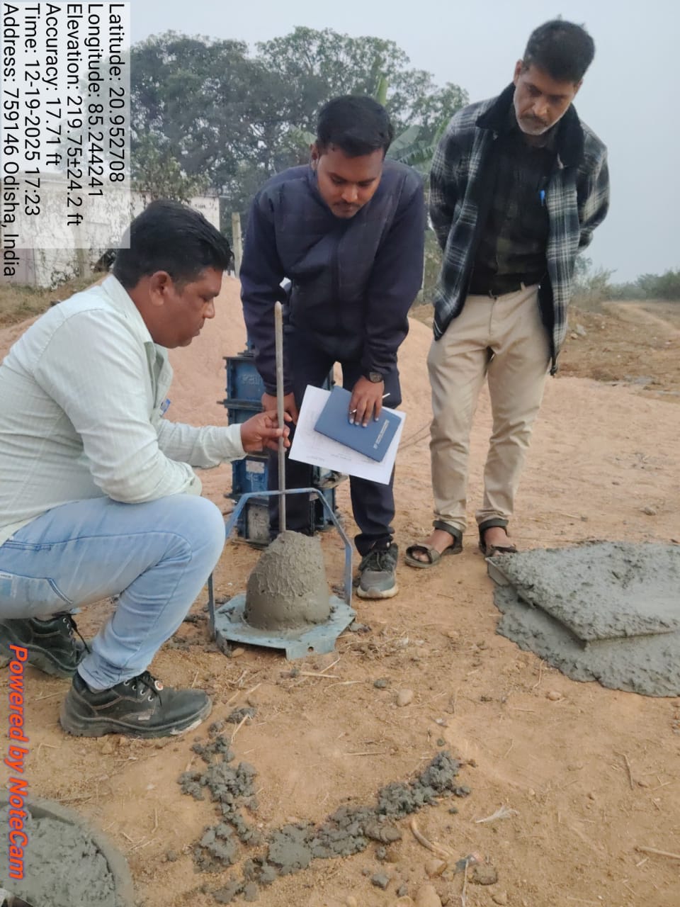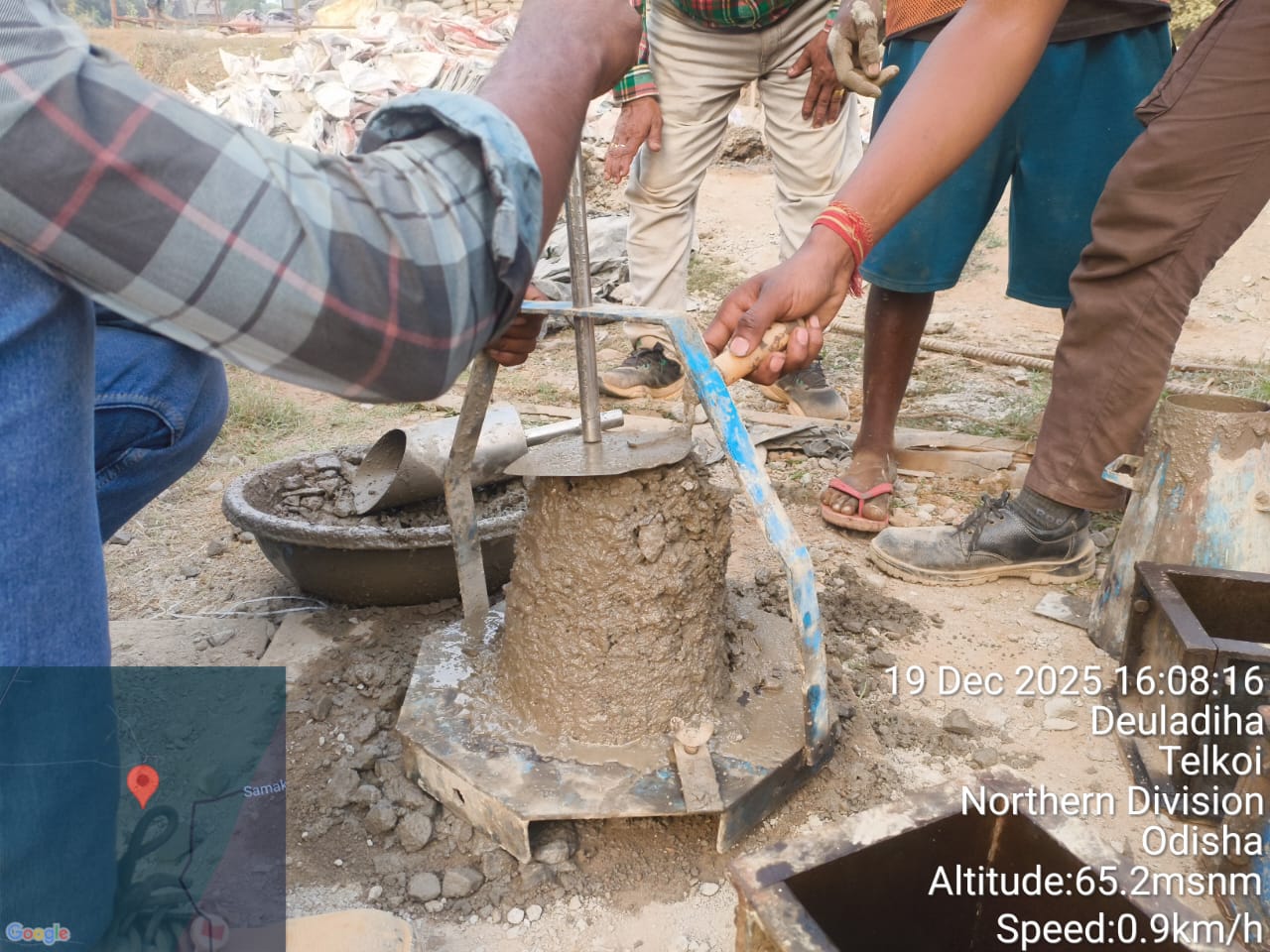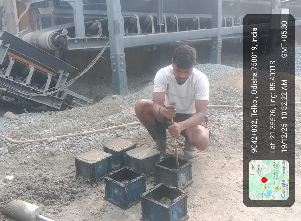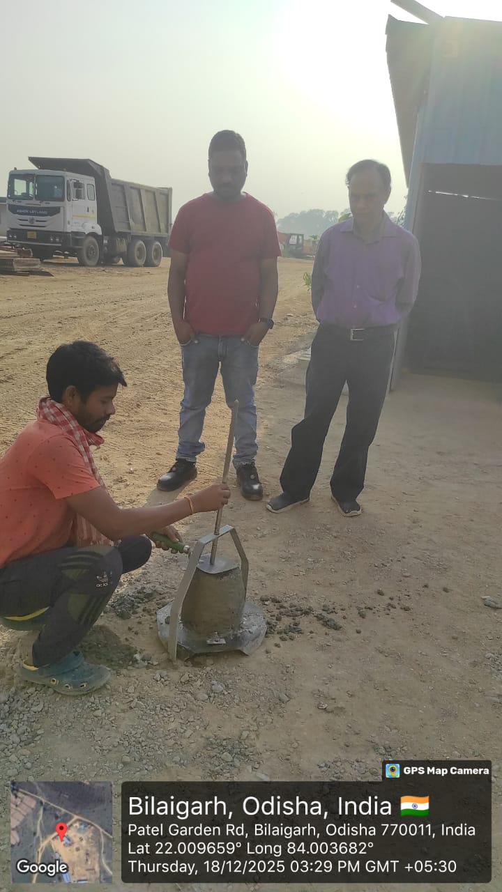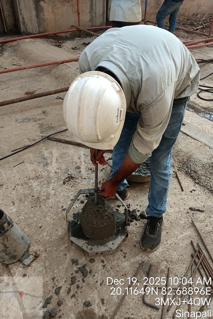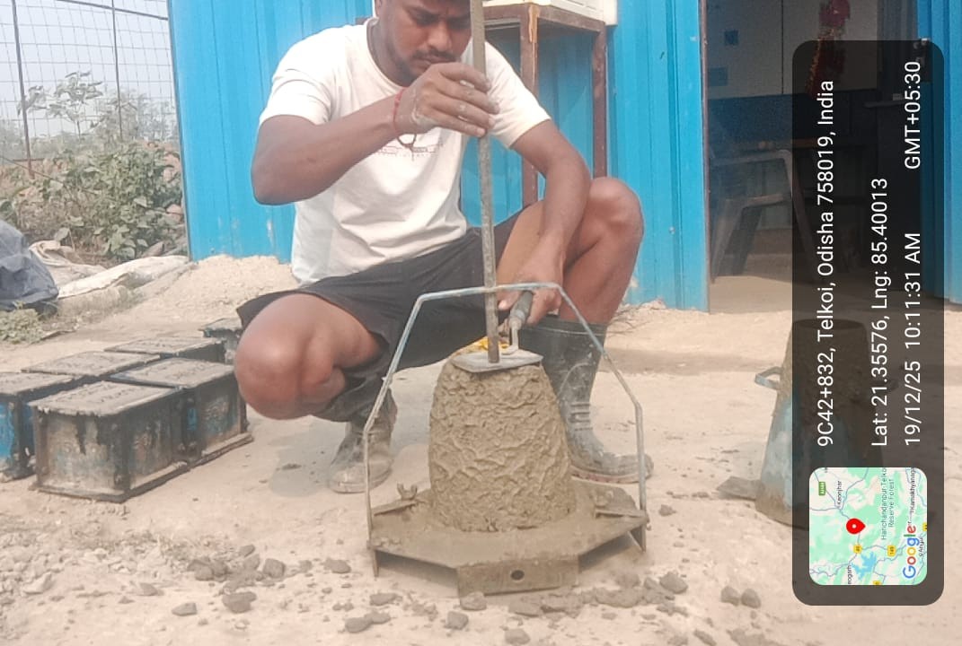 Slump test and cube cast at site in presence of Geologist and Irr. Eng. Expert along with Site engineer PMC.