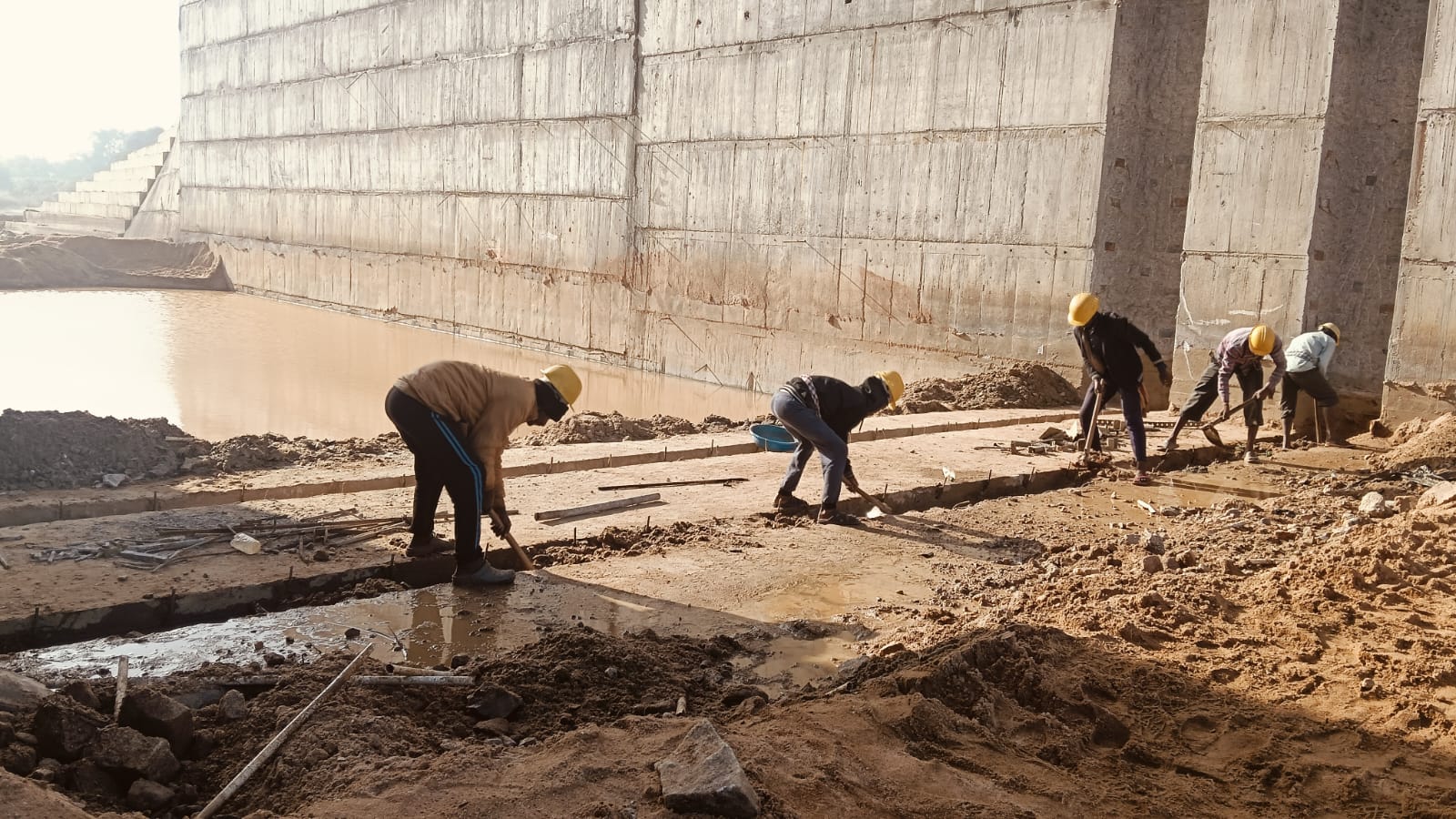 Shuttering work at right side under sluice bay crest for 2nd layer RCC is under progress on 07.01.2026