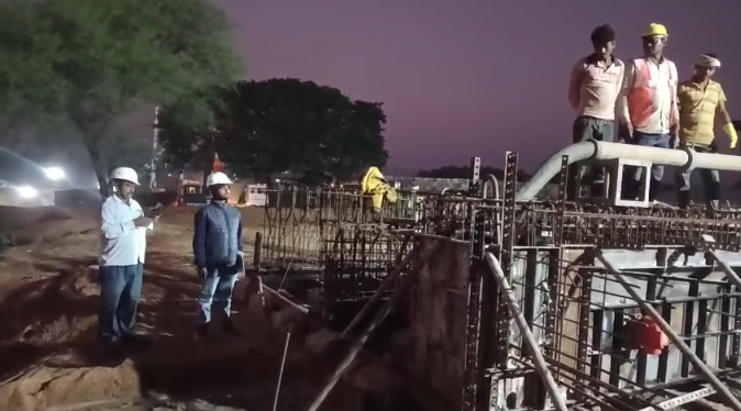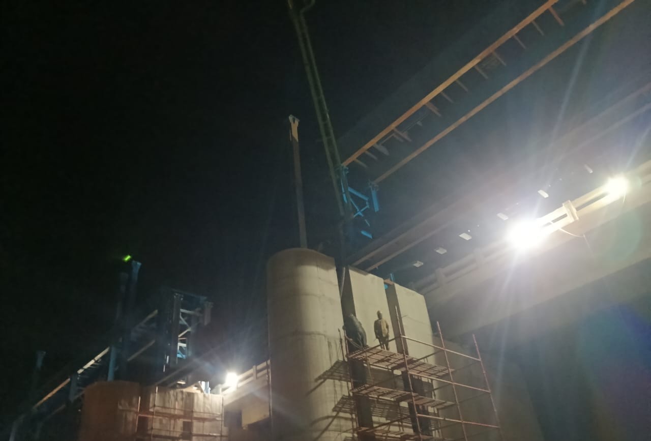 Casting of CC M25A20 in Right D/S Flank wall Parapet wall in progress.