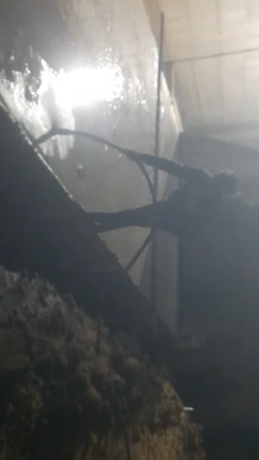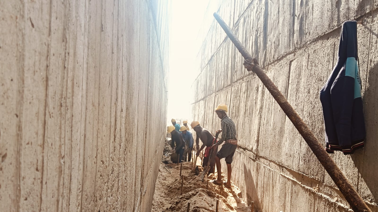 RHS U/S Flared out wall mud cleaning work is going on .