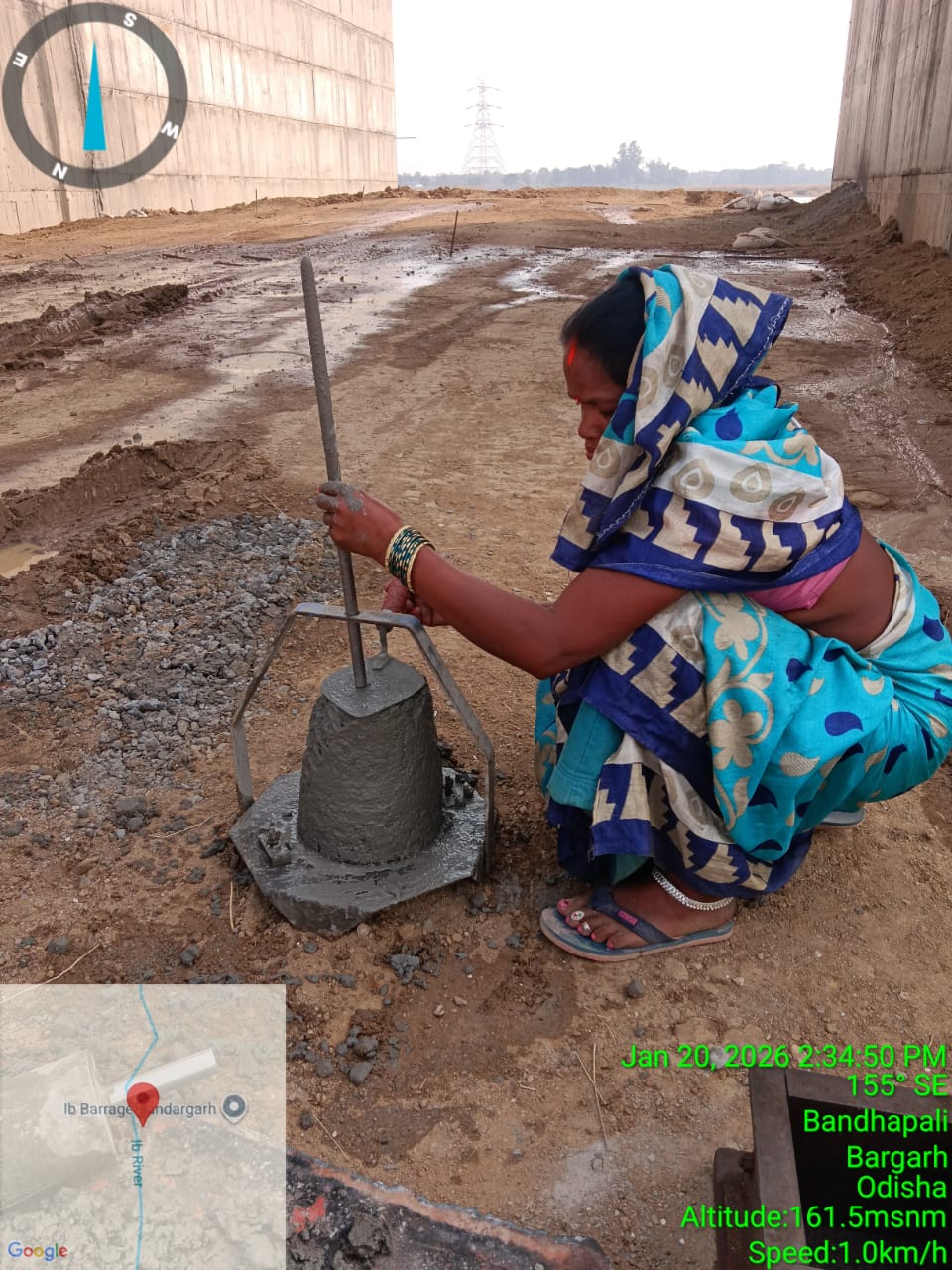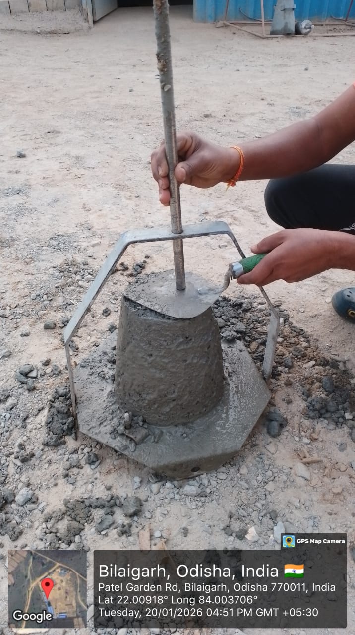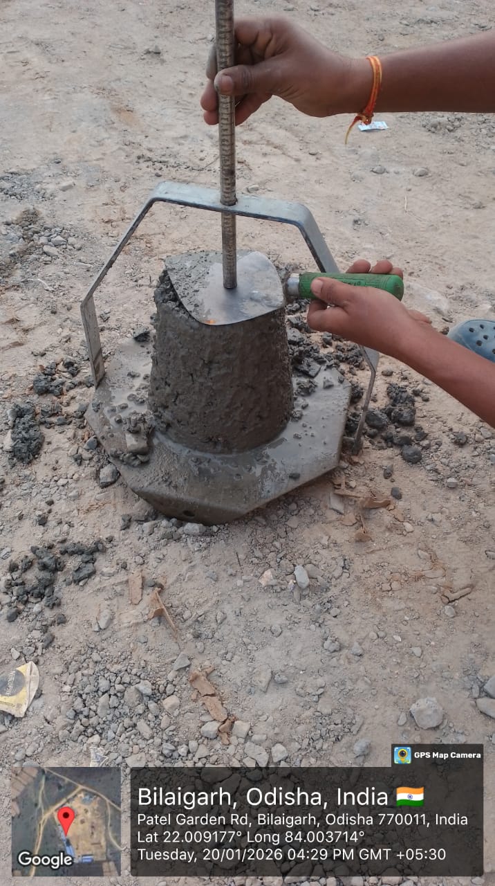 Slump testing work is in progress for internal approach road concrete casting at Pump House in presence of DoWR JE, PMC team and MEIL staff.