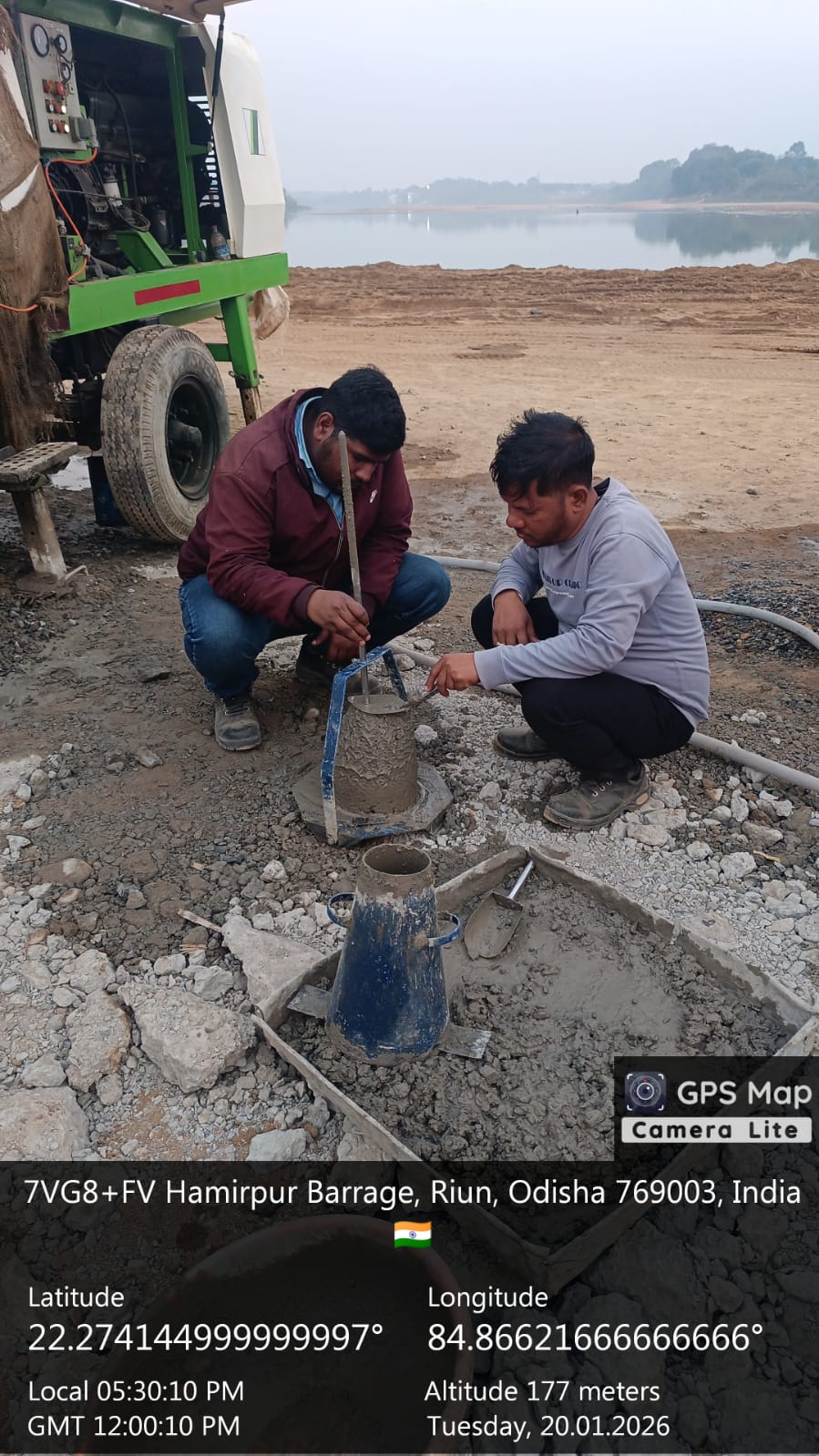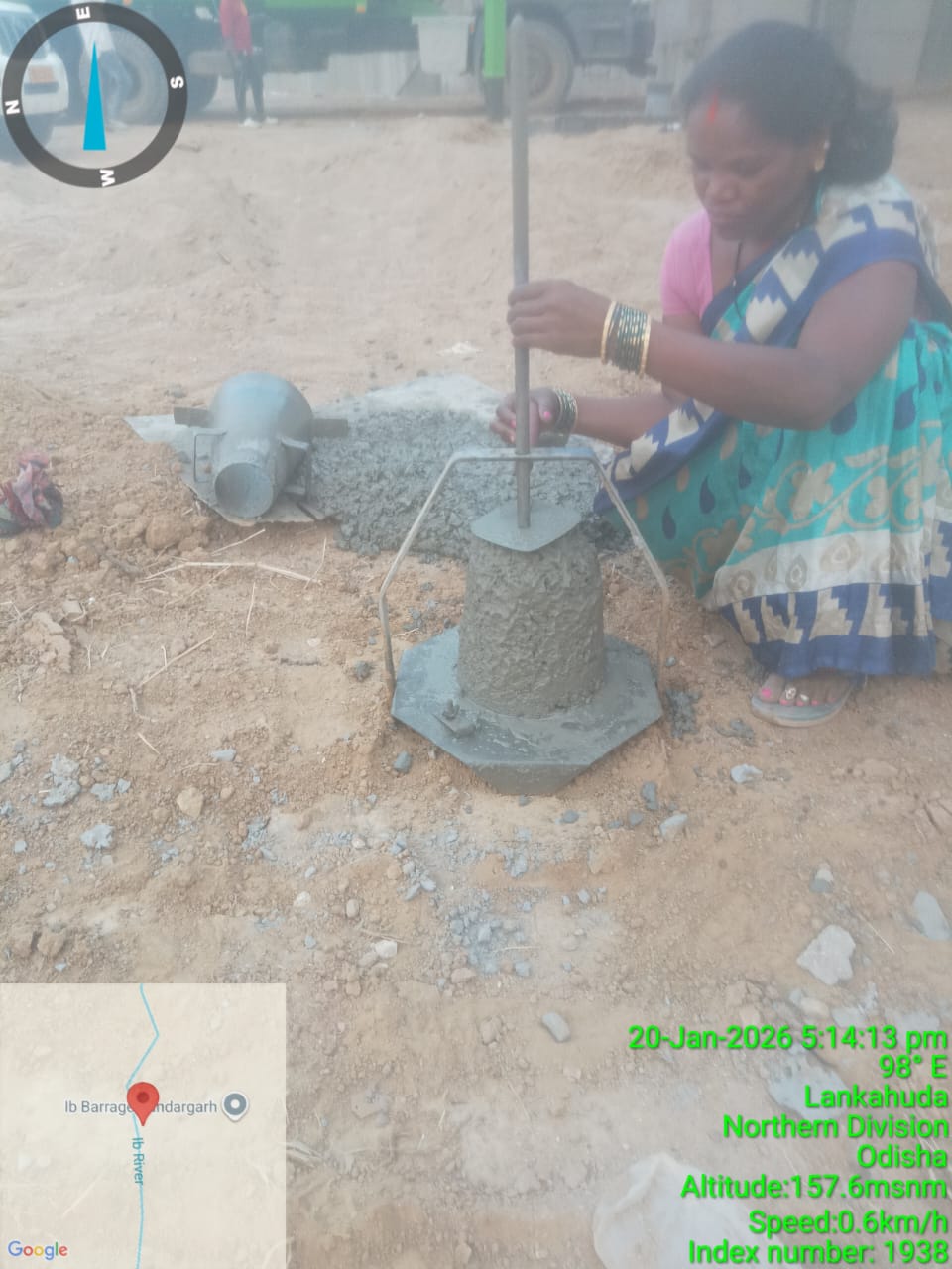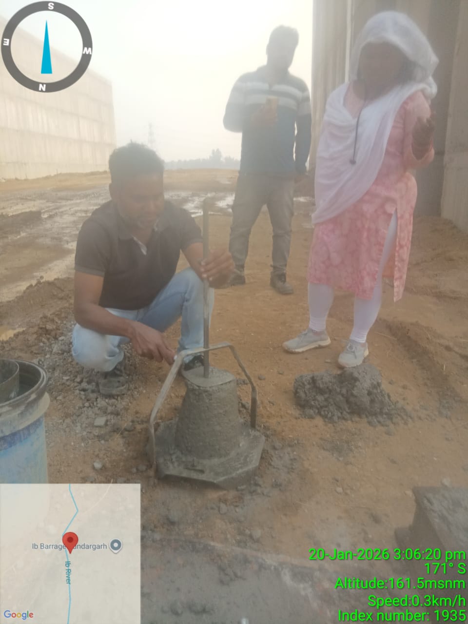 Slump testing work is in progress for internal approach road concrete casting at Pump House in presence of DoWR JE, PMC team and MEIL staff.