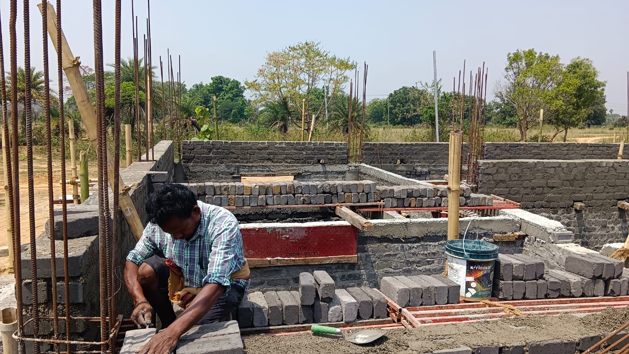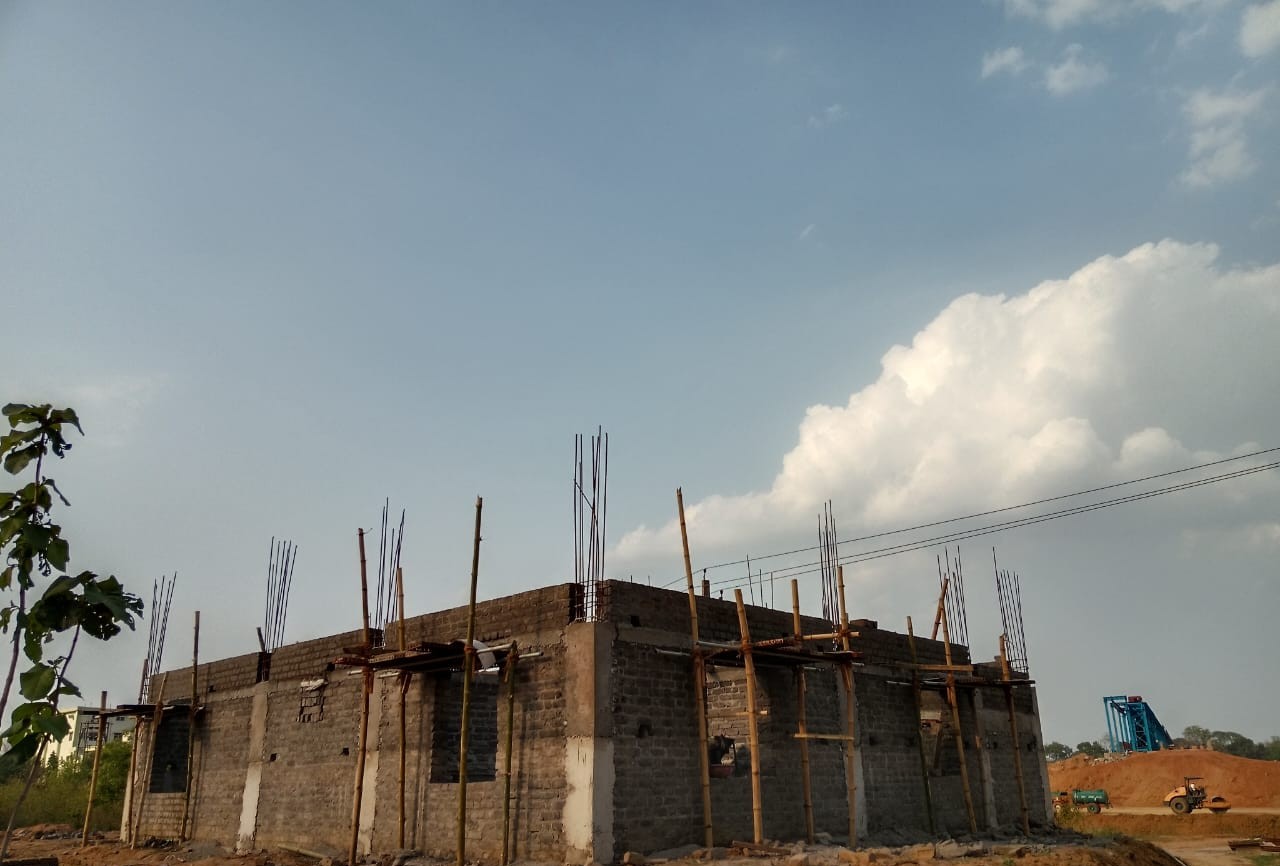 Staff quarters 1st floor column shuttering & steel placing work is going on .