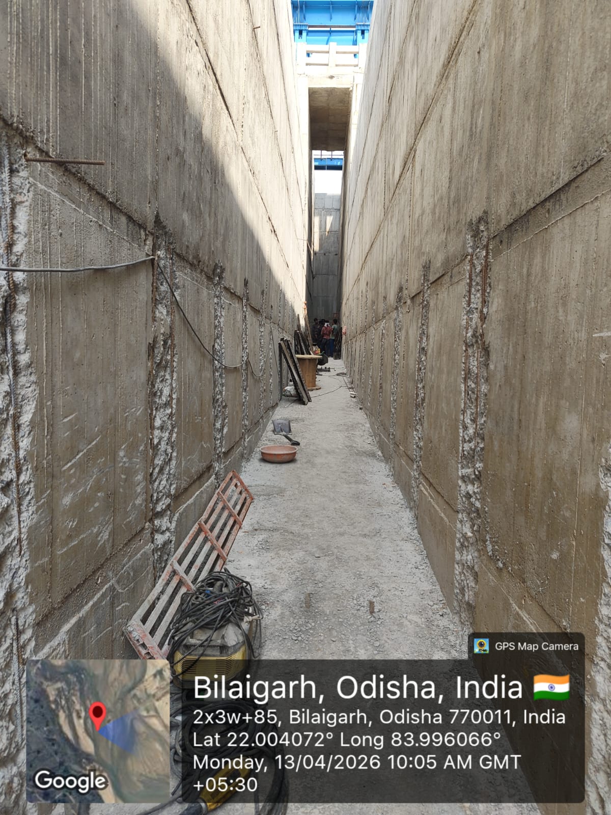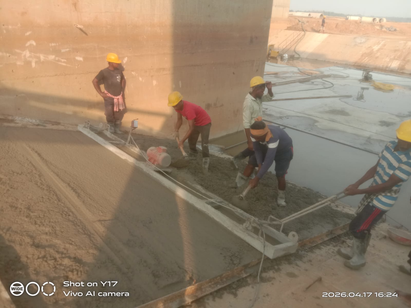 Concrete work is in progress of u/s divide wall 1st lift RHS in presence of dept. AEE, AE & JE .