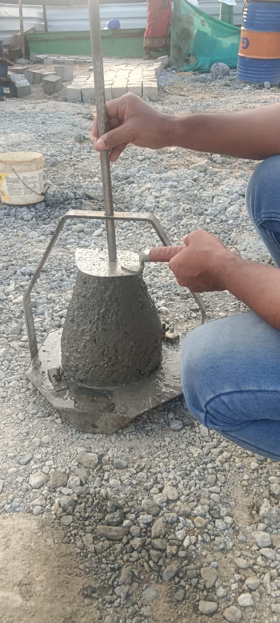 Slump testing M20A40 (Value 70 mm) C.C Blocks done in presence of Client & PSS Team.