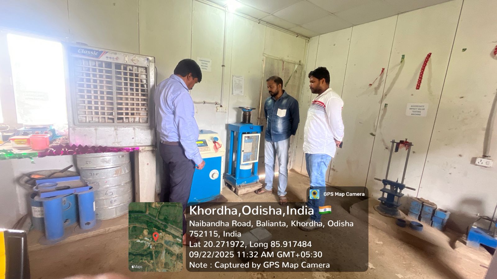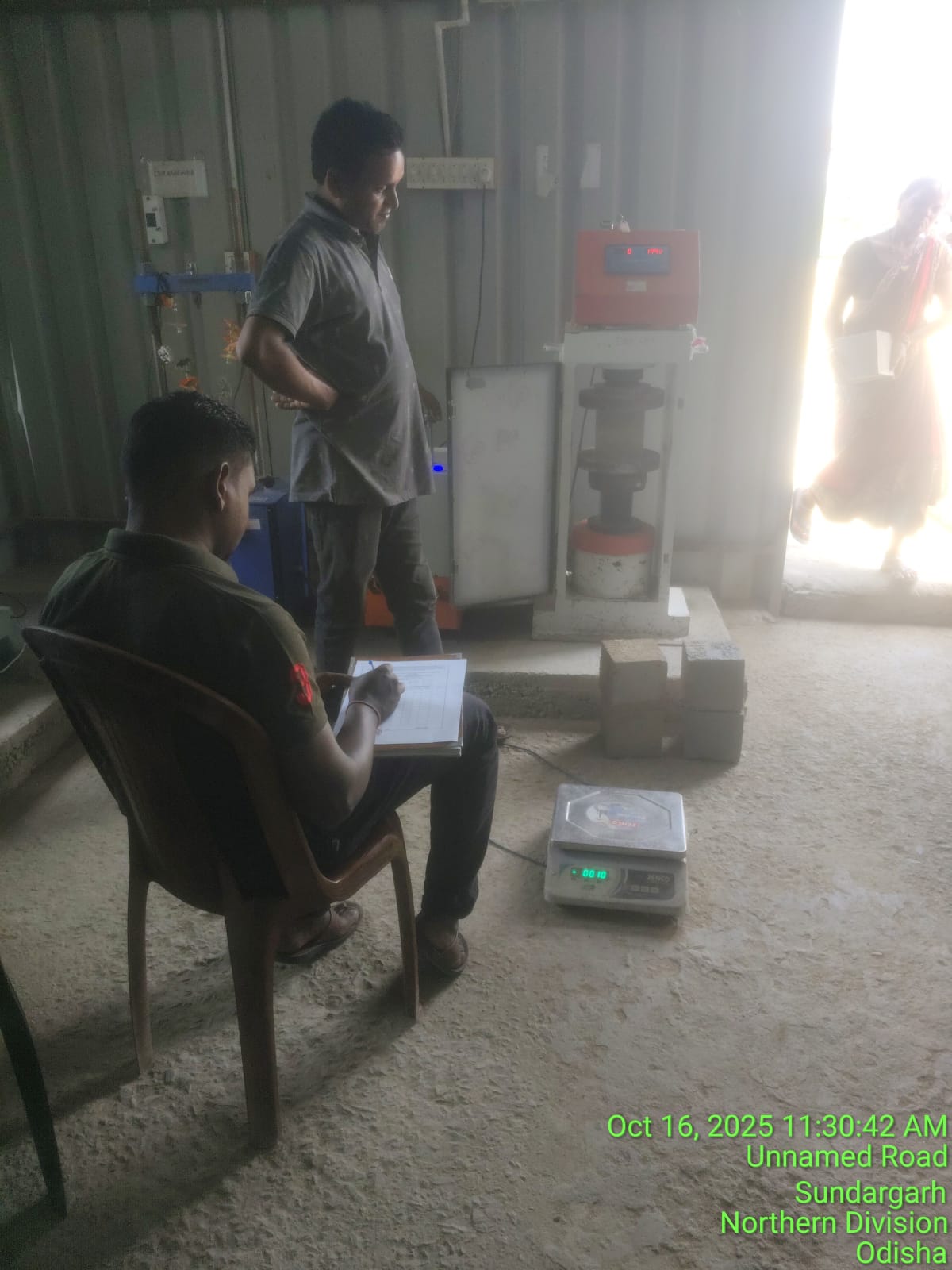 28 days cube test for CCM15A40 done at field laboratory of the ISS in presence of PSS Team.