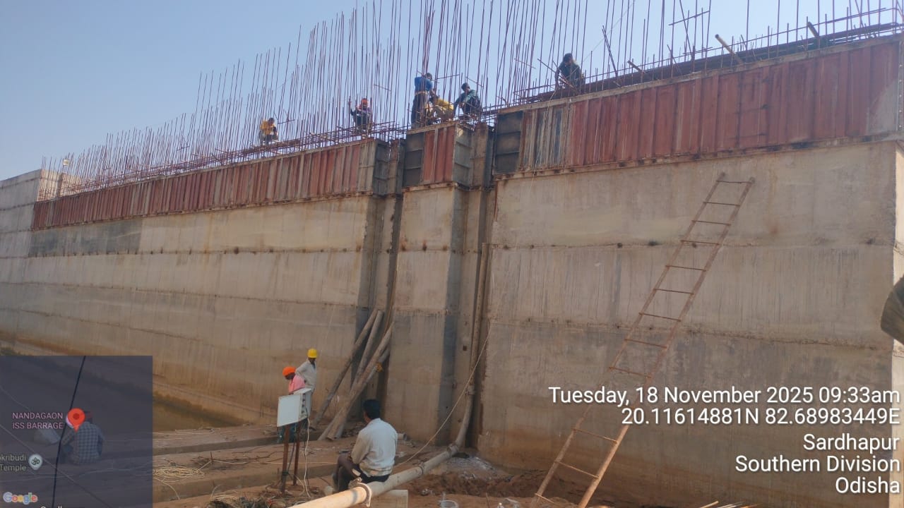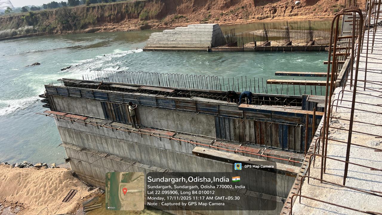 Pier no-6 (Left) from RL 14.80m to 17.10m Barrage gate secondary gate groove concrete laying in progress.