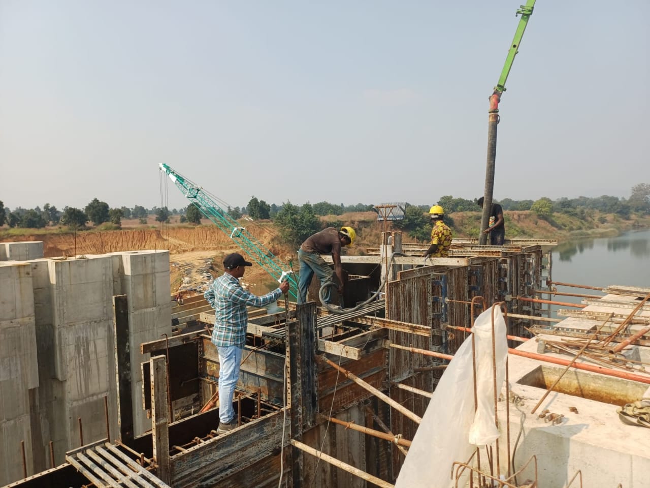 Barrage bay-2 span no- 21 p-21R & p-20 for stoplog & service gate groove 2nd stage 5th lift M30A20 casting work in progress