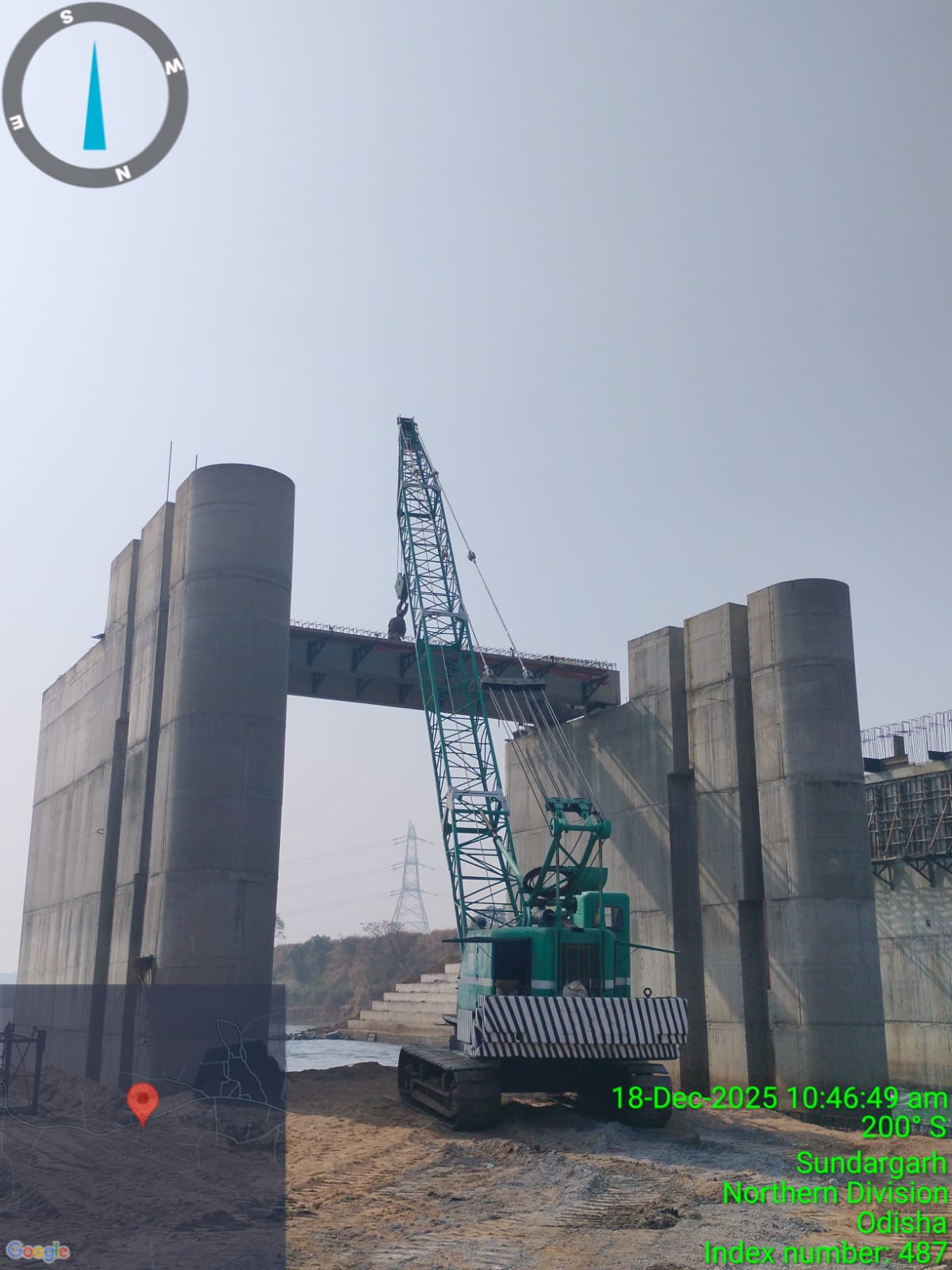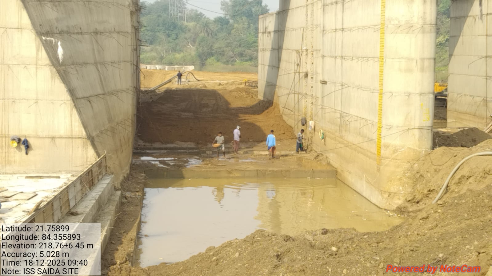 Concrete casting with RCC M35A20 grade for 2nd stage concrete for stoplog & service gate grooves at Pier no.2 & 3 of bay no.3 for 3rd lift is in progress in presence of JE,KID, PM EPC agency, Site Engineers of PMC & EPC agency,ISS Nandgaon. Slump achieved 78mm on 19.12.2025