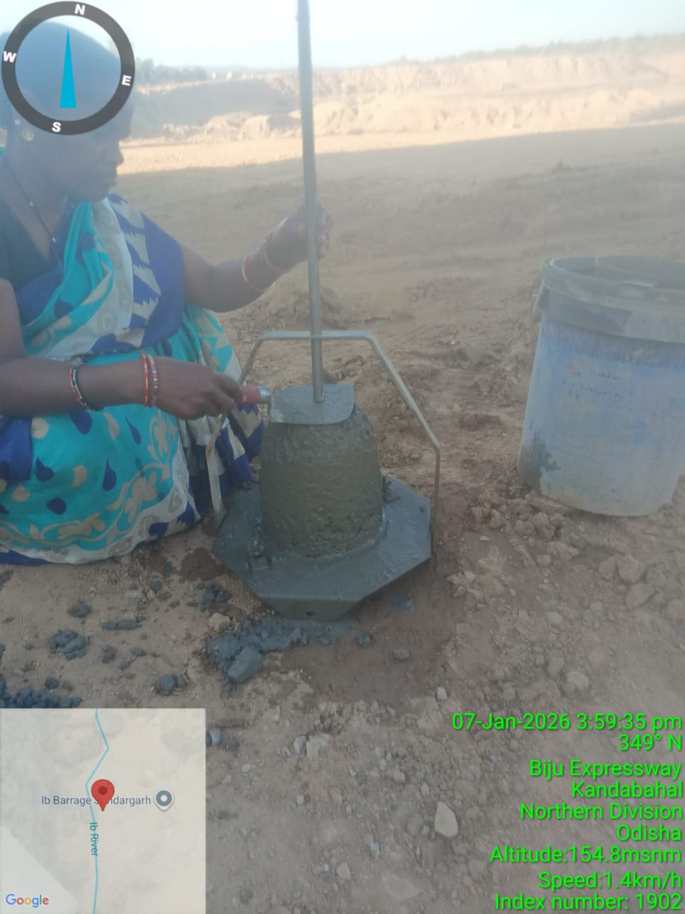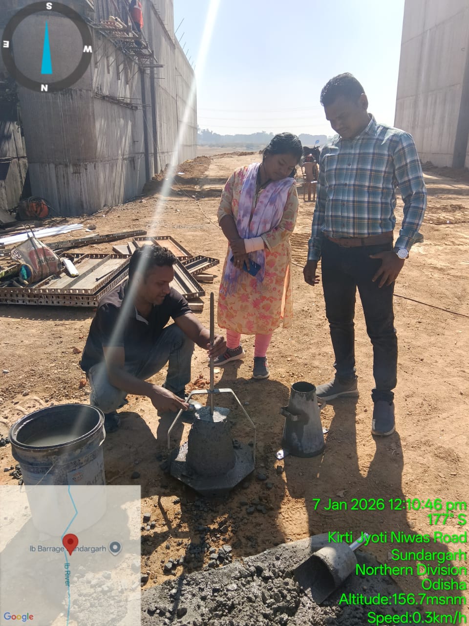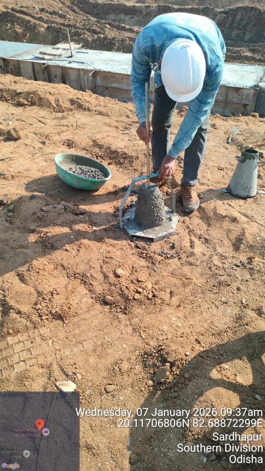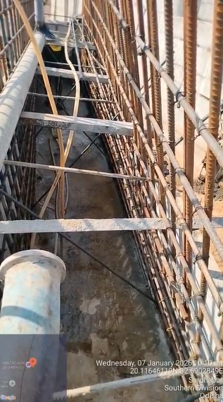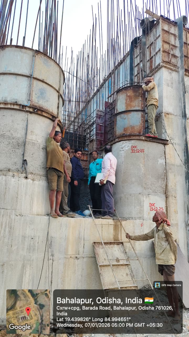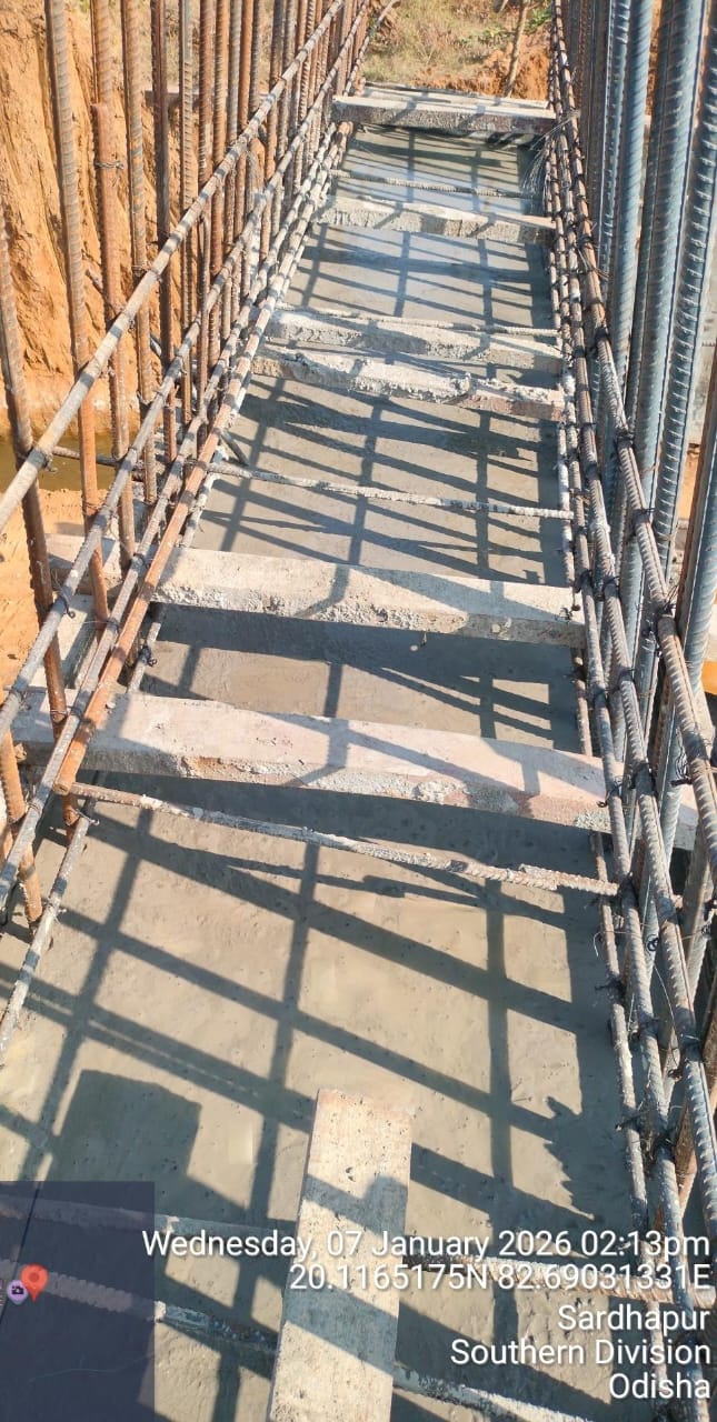 (iv) The area is cleaned properly through air water jetting and passed by SE, KID, Bhawanipatna for placing with RCC M25A20 grade on 07.01.2026