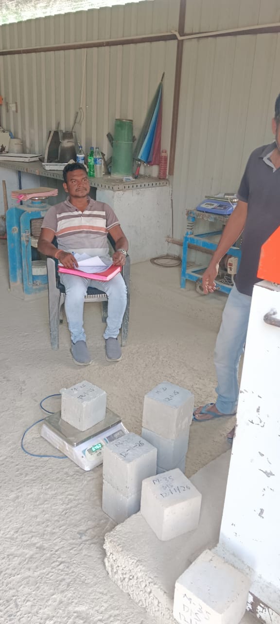 Testing of Compressive M25A20 (Strength is 31.35/mm2 for 28 days) of Middle pier, 1st lift and M20A20 (Strength is 24.02/mm2 for 28 days) of Gravity floor end seal has done in presence of Client & PSS team.