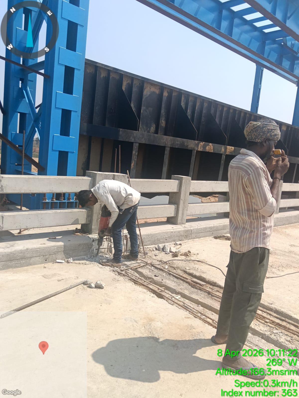 • 2 (i).Fixing & fittings and alignment of All trestle and columns foundation bolts measurements has been checked at pier no.-1 for Blockout area of 6.8m length and found correct by HM Expert of PMC during his site visit on dt.01.04.2026 in presence of mechanical Site Engineers of PMC and EPC Agency.