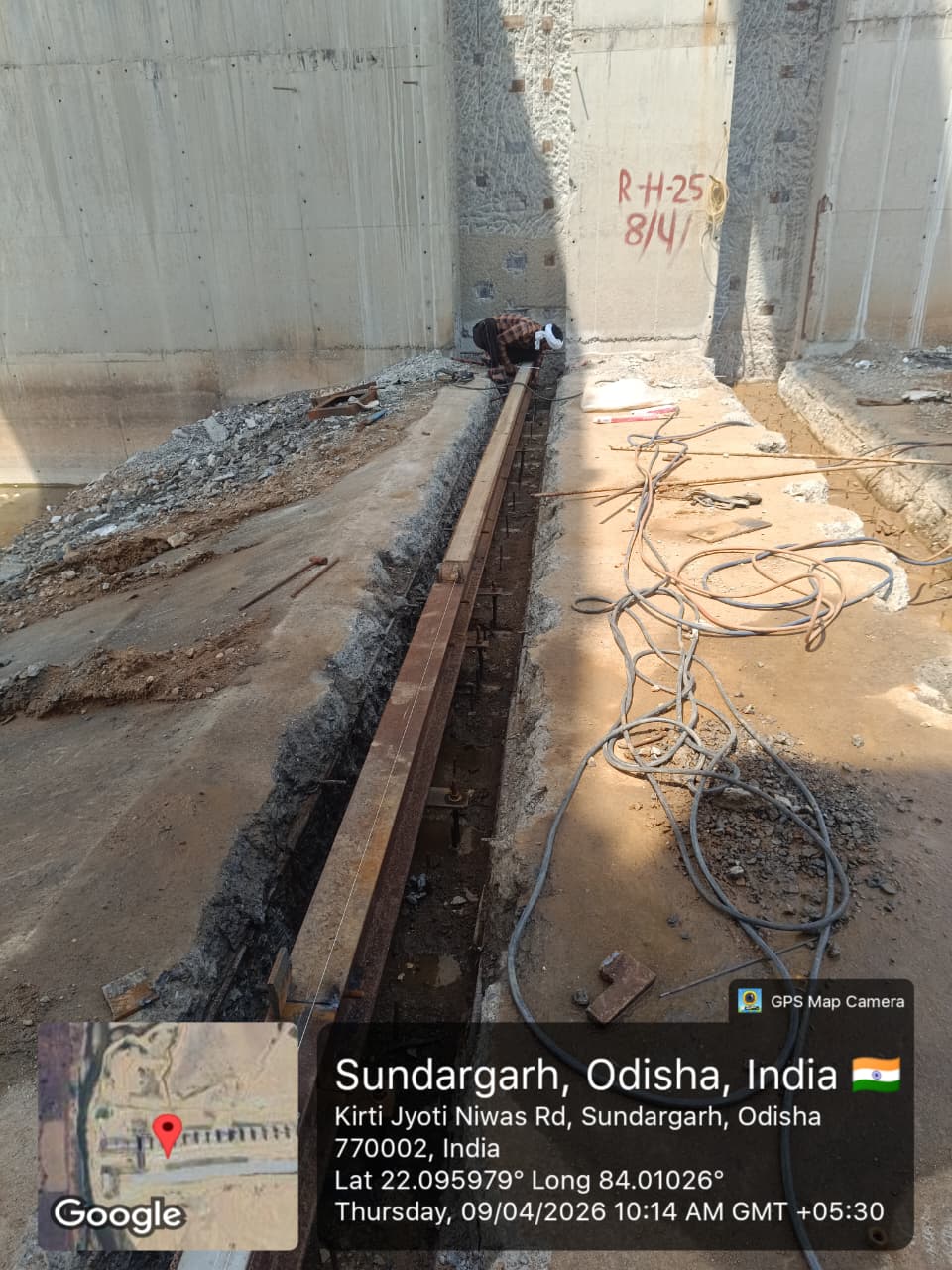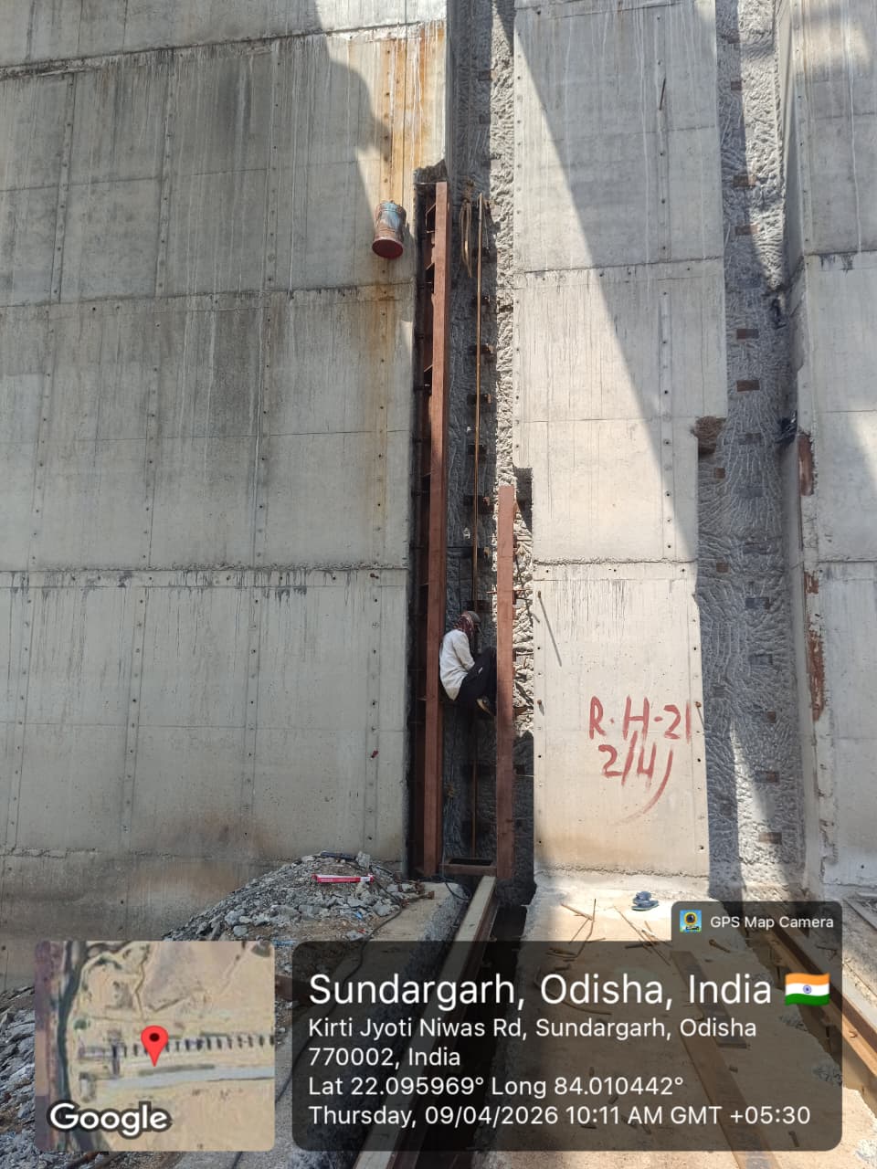 checked placing supporting bars and alignment of shuttering work in RHS U/S FLANK WALL PROFILE 8th LIFT RL- 219.000 to 220.300 Now the area is ready for concrete casting M20 A20. So recommended for the purpose. Approved by AEE sir SID Sambalpur in presence of JE