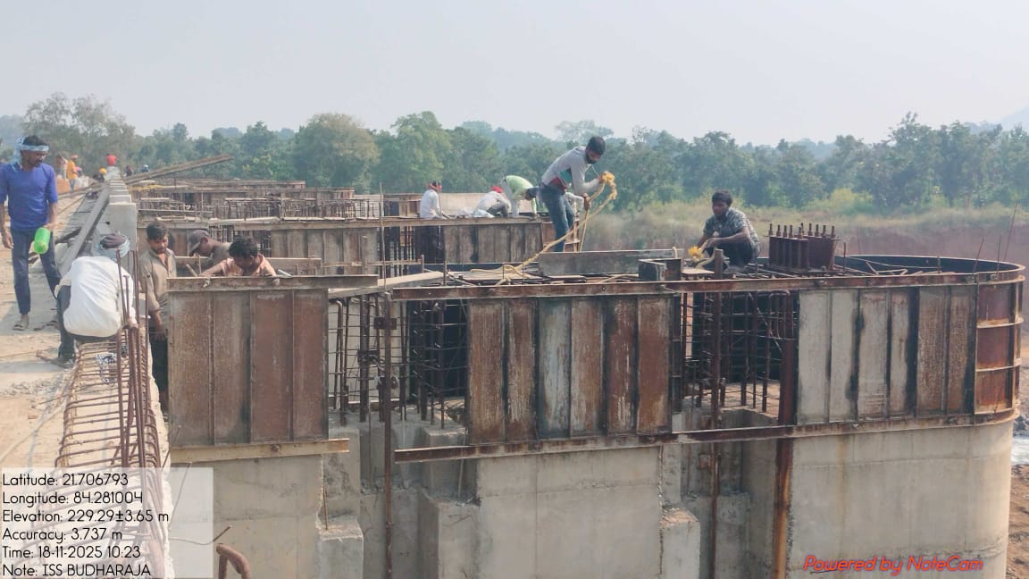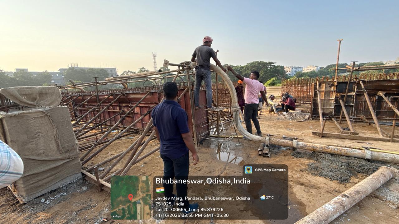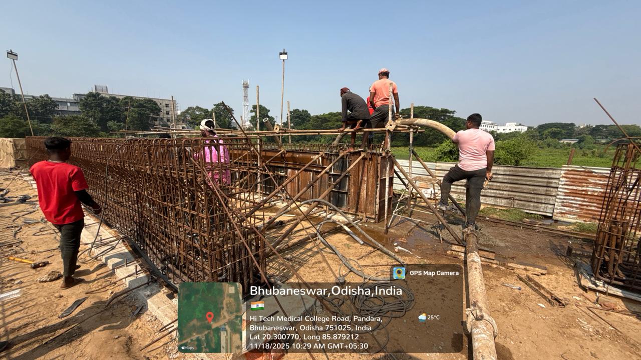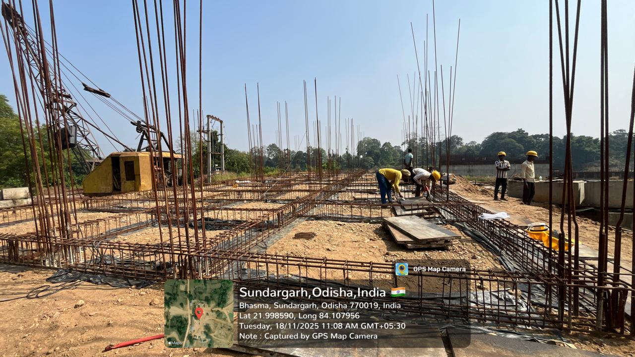 Laying of CC M25A20 in column footing of O&M building of the ISS is in progress.