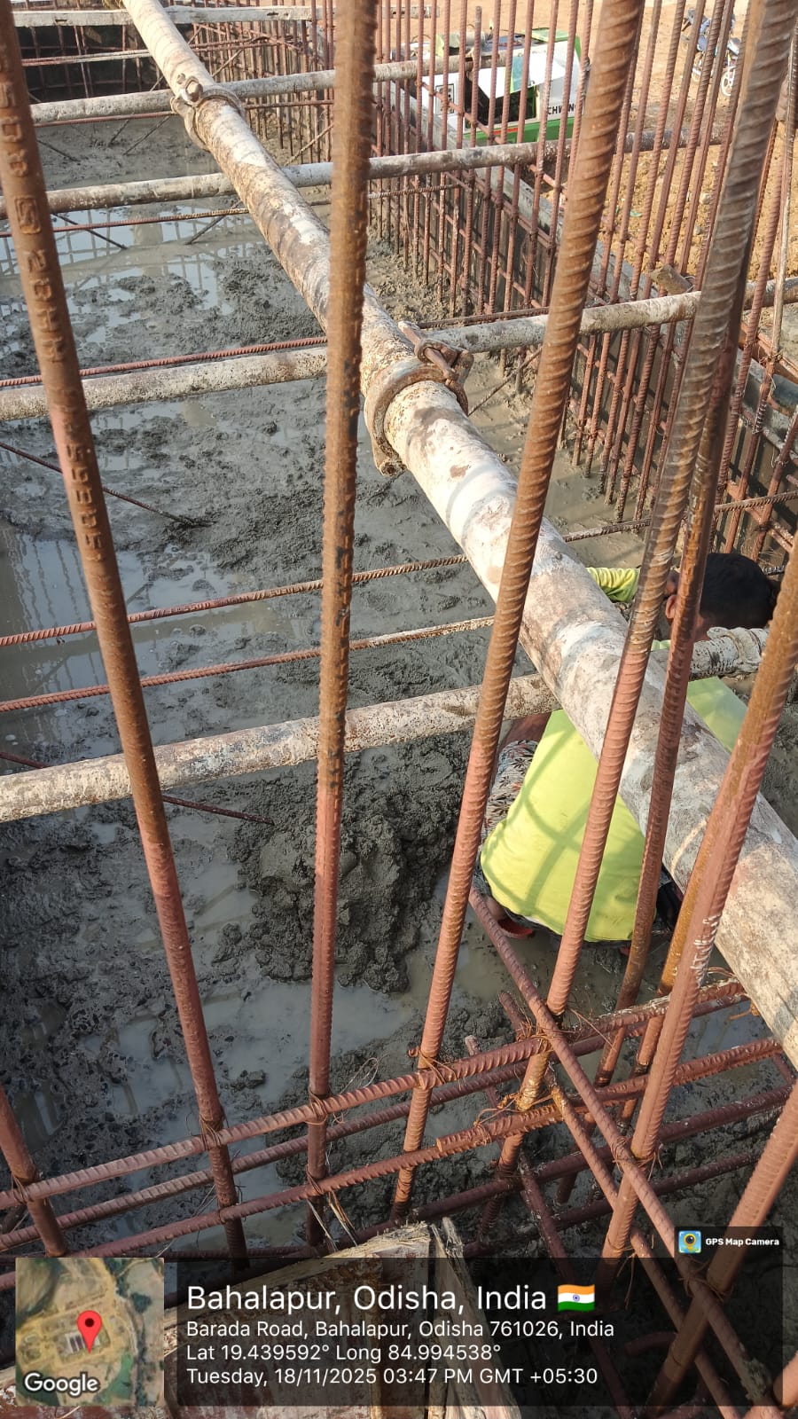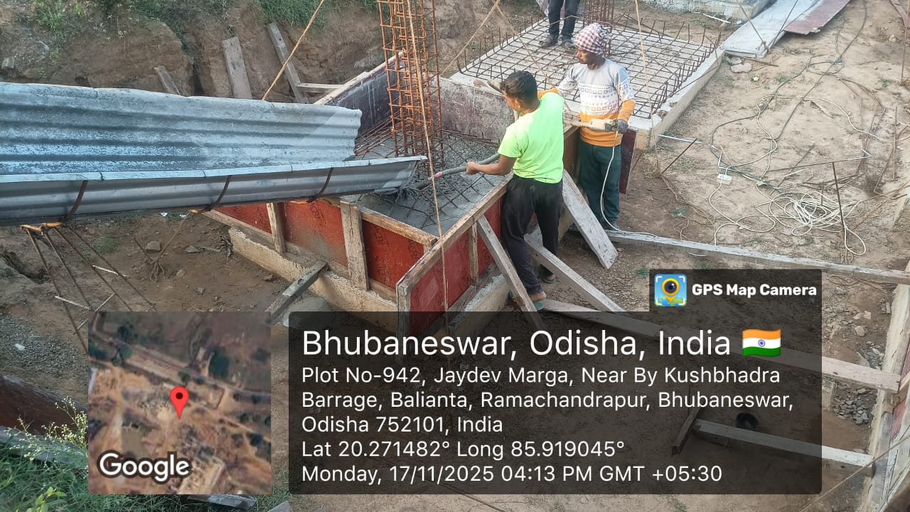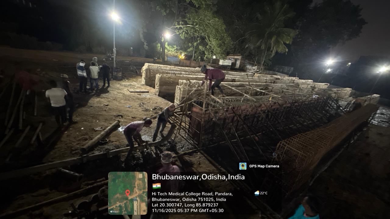 Laying of CC M25A20 in column footing of O&M building of the ISS is in progress.