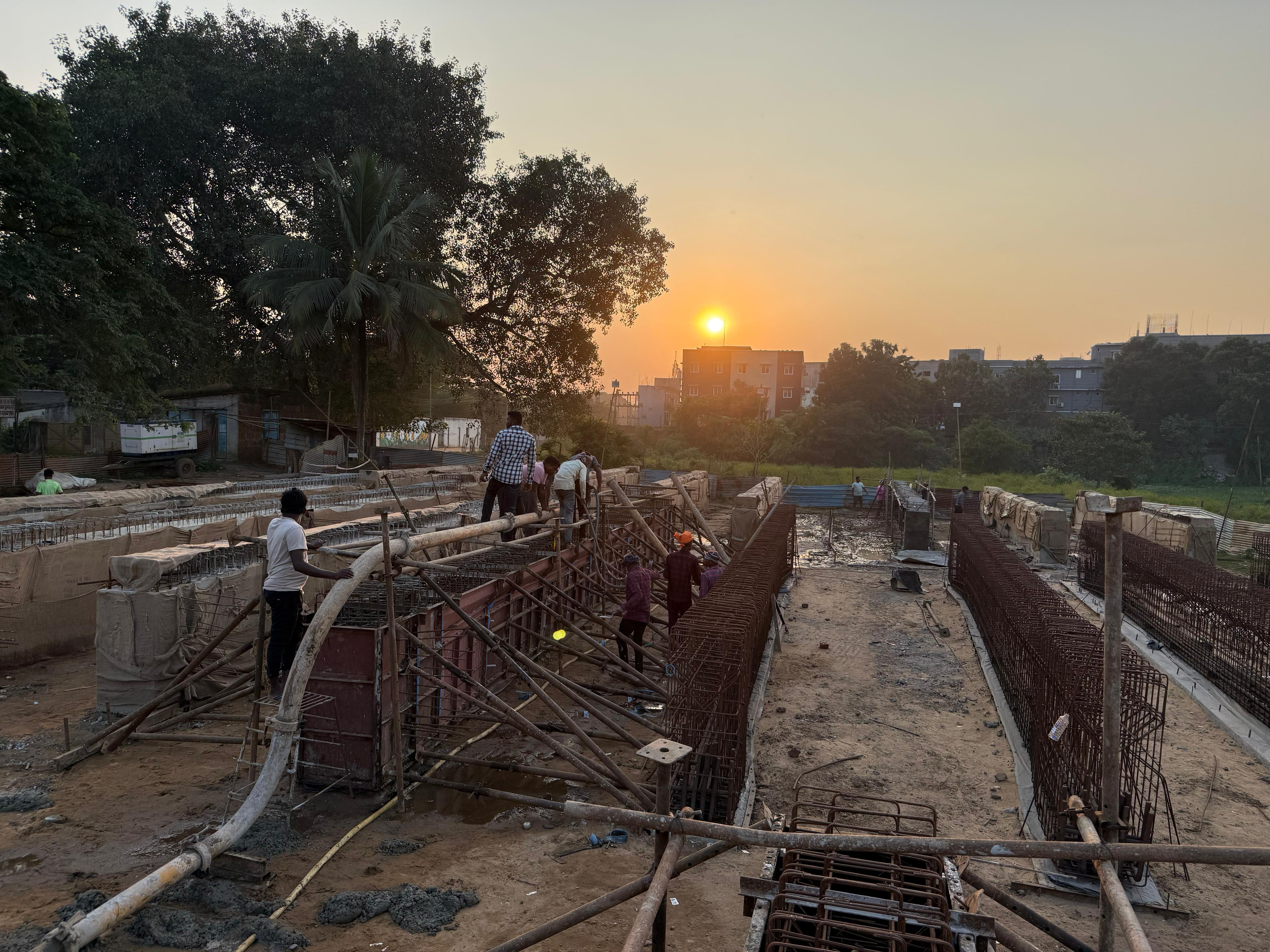 PSS Team observing the ongoing girder casting at ISS site.