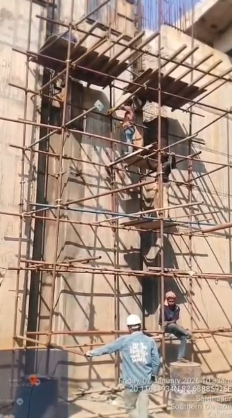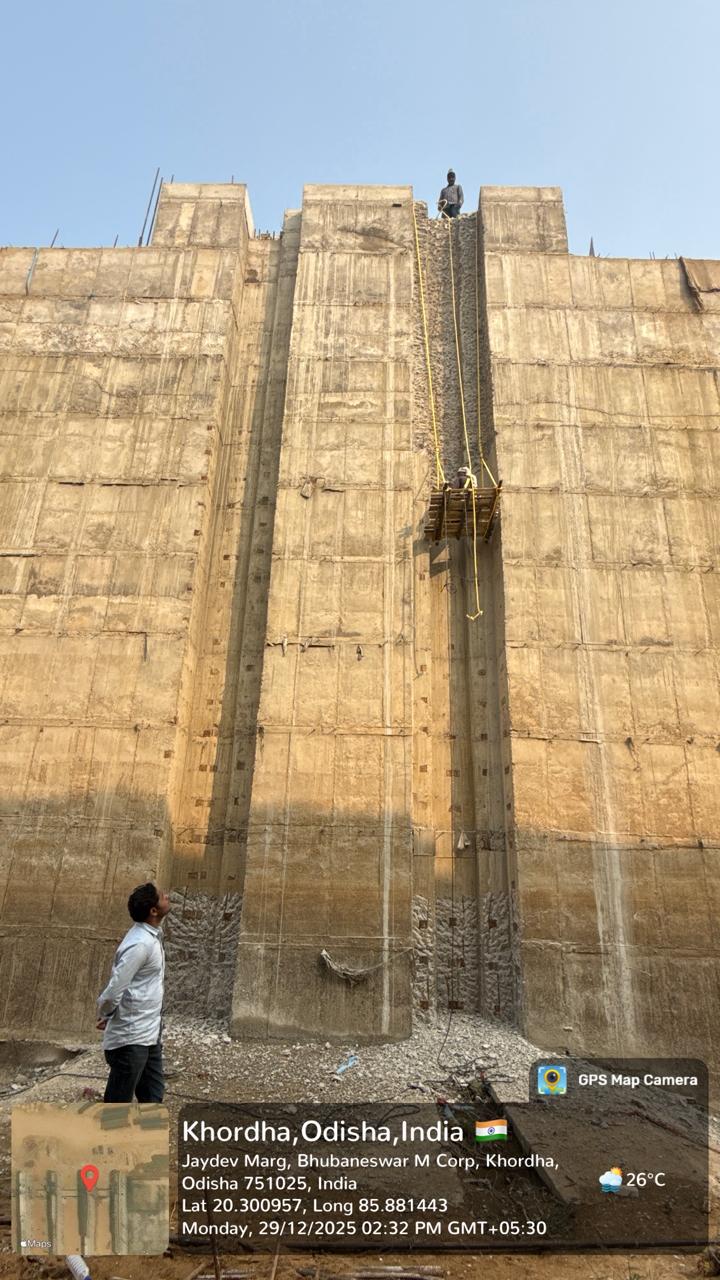 RHS C F WING WALL 8 TH LIFT SHUTTERING WORK IS UNDER PROGRESS.