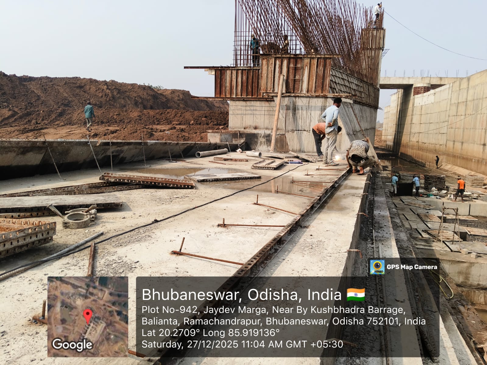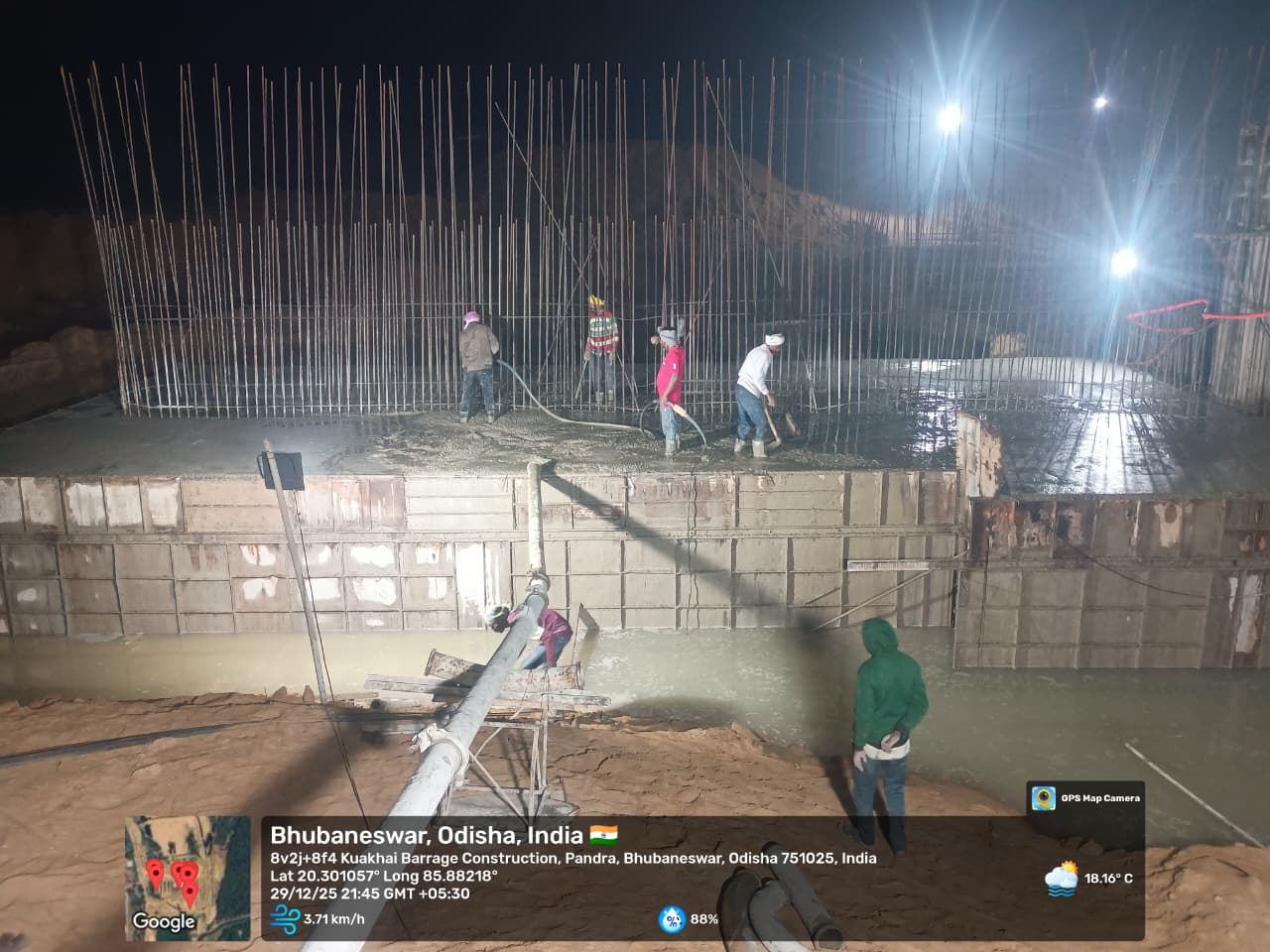 Barrage bay-3 span no-11 p-11 to p-10 M35A20 for stoplog & service gate groove 2nd stage 4th lift casting work in progress