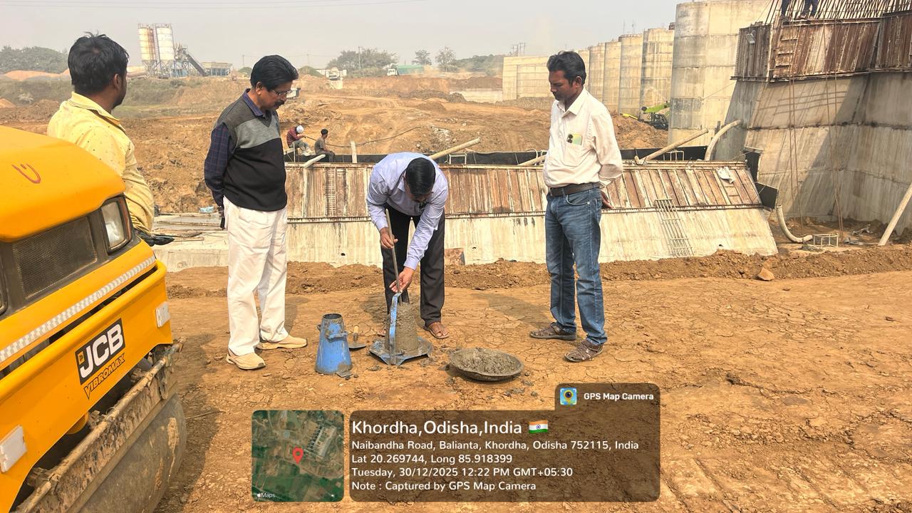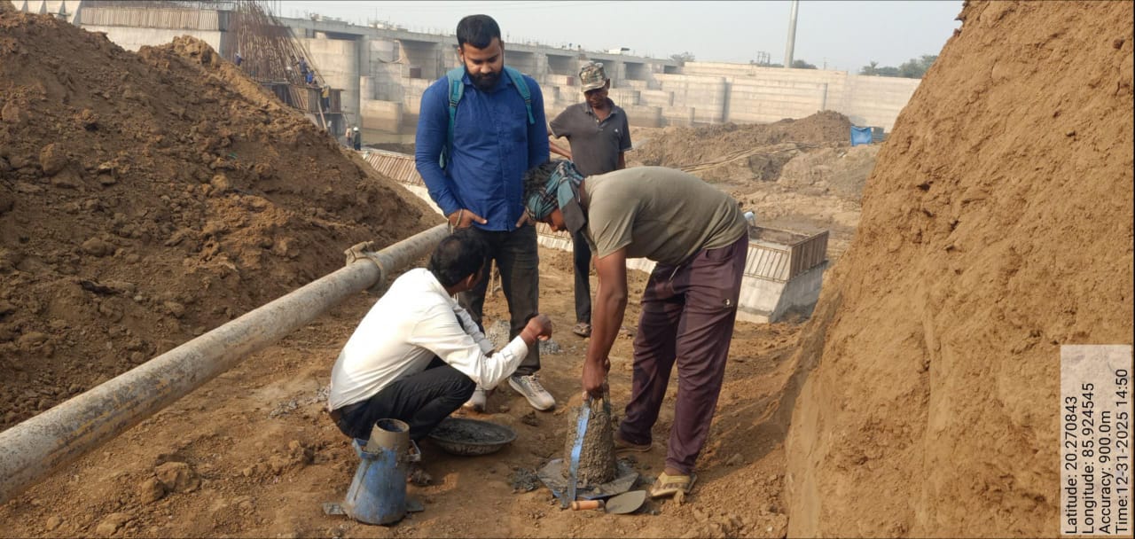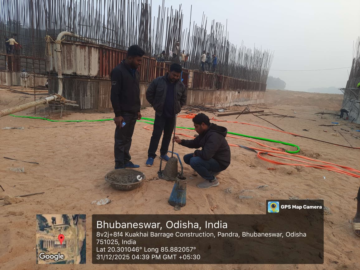 Cube casting & Slump testing M25A20 (Value 80mm) of Double pier, 2nd lift done in presence of Client & PSS Team.