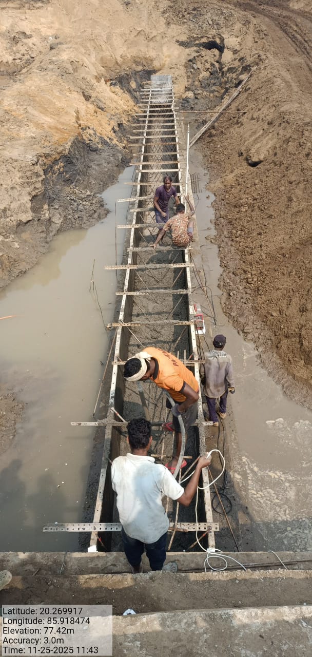Laying of CC M25A20 in Right side Abutment & Counterfort from 15.20M to 16.60M in progress.