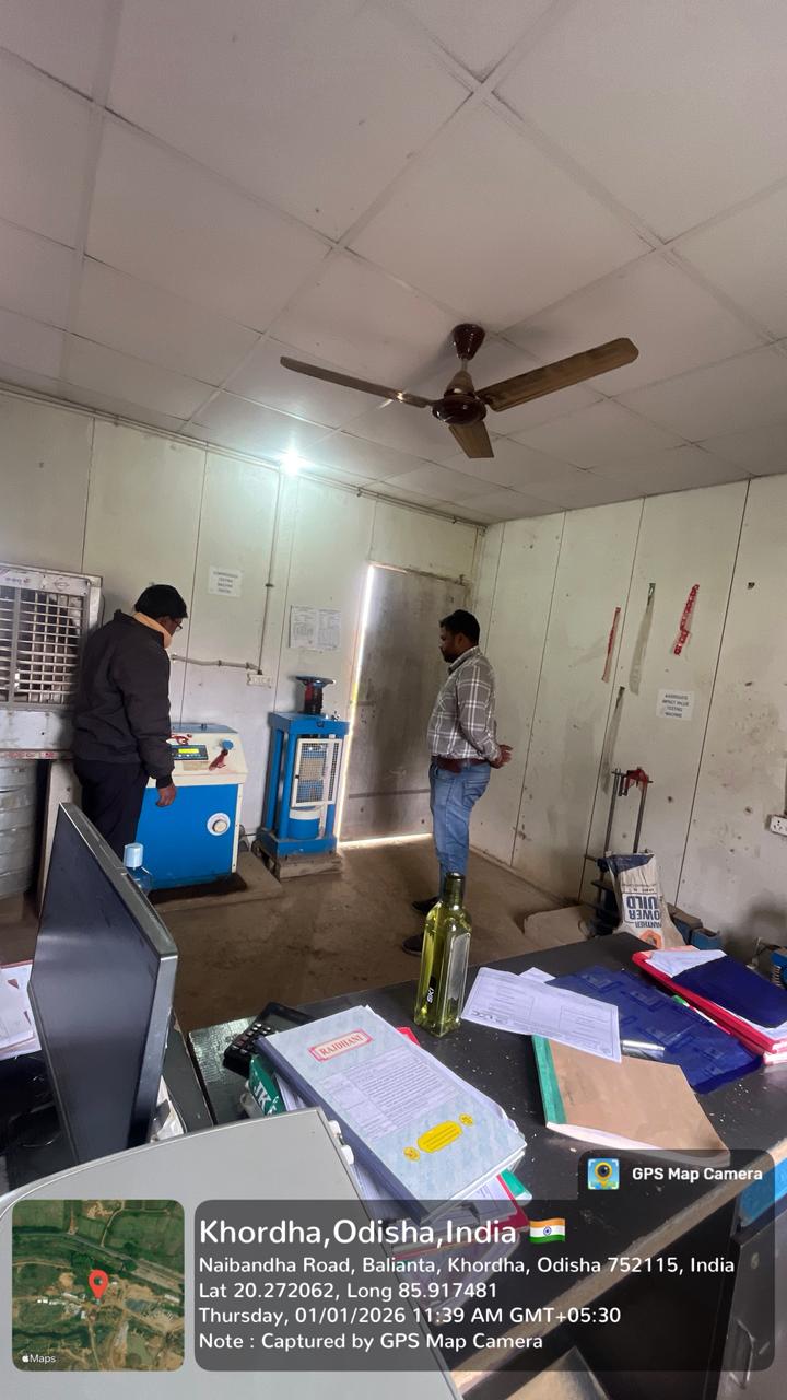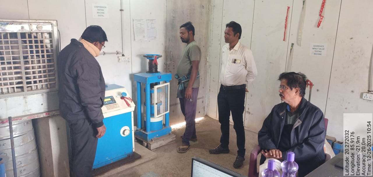 1. Conducted test for 7 days compressive strength of concrete cube RCC M25A20, PCC M15A40 grade, PCC M20A20 grade at field laboratory and result found 21.33 N/mm2 ,14.88 N/mm2 & 18.07 N/mm2 respectively.