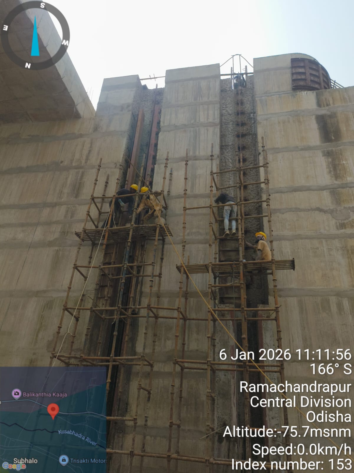 Casting of the downstream divide wall-2 at Baitarani ISS was completed successfully-08.01.2026.