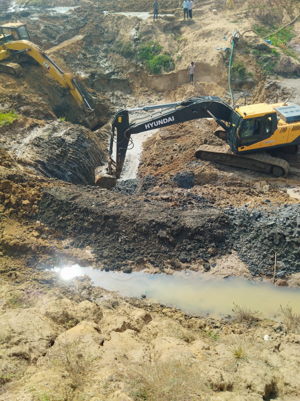 Excavation work is in progress for Laying of 75mm Dia HDPE Pipe of OCS NO- 0201297-C10A at village Rainbachan.