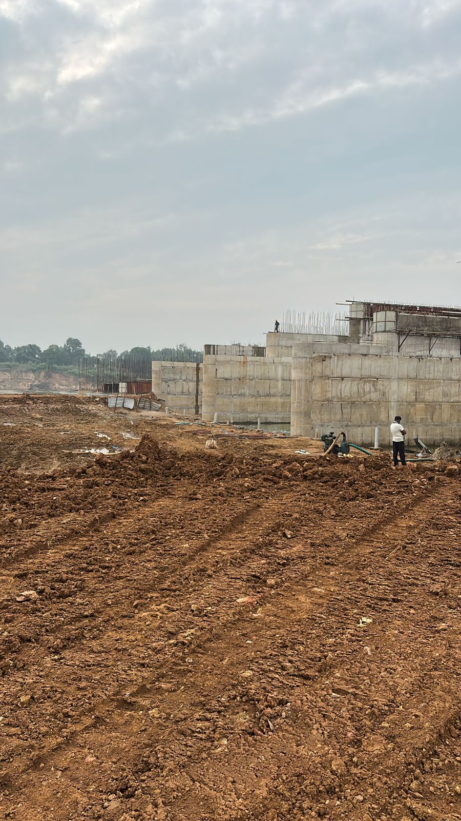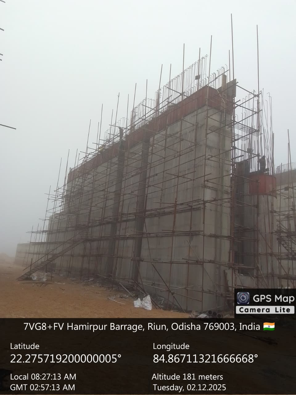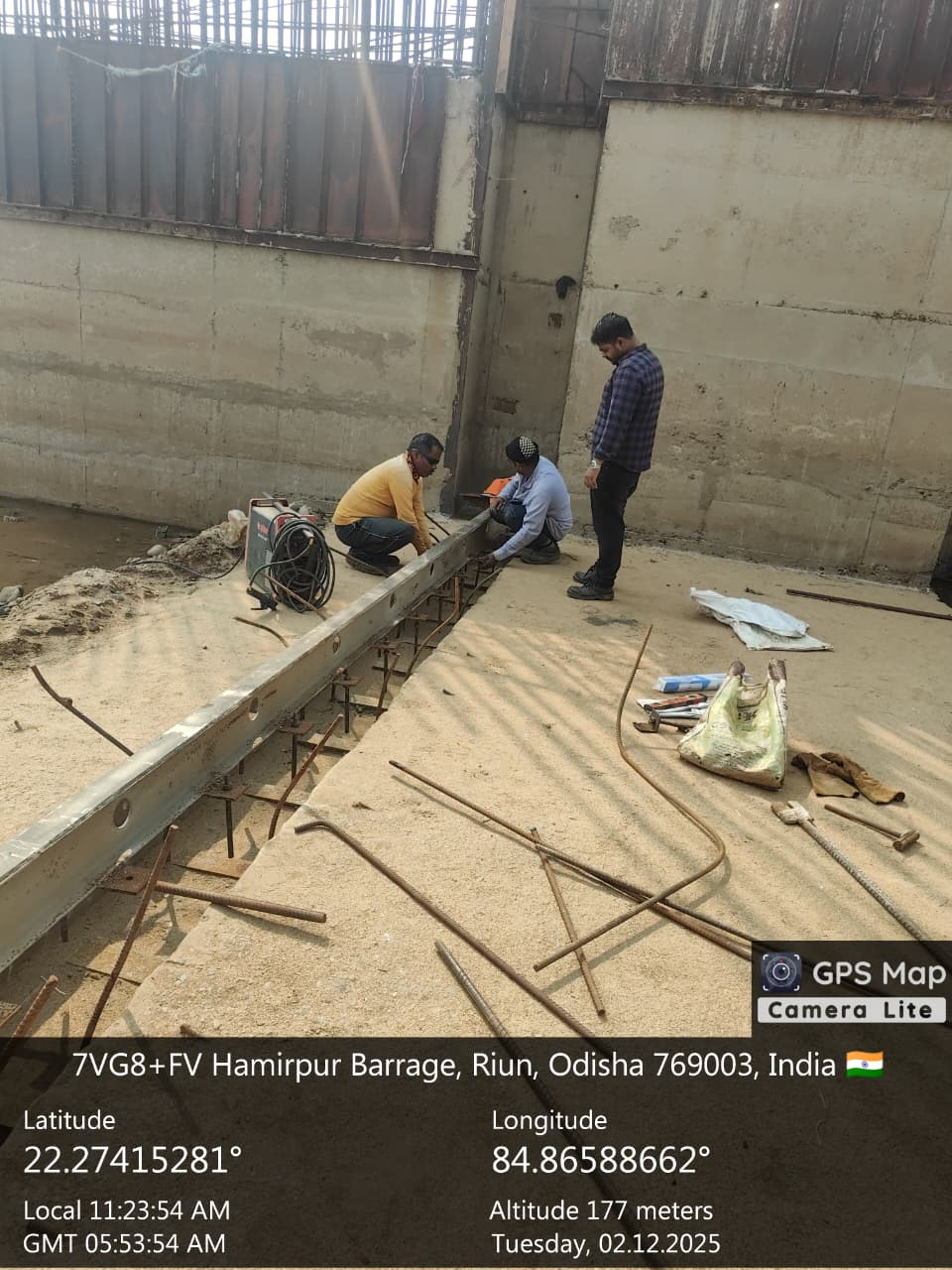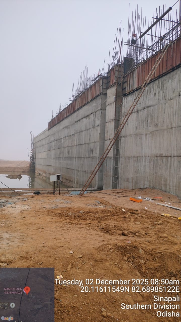 Reinforcement at right side under sluice bay in between P9 and A2 for final lift pocket filling work is under progress on 02.12.2025