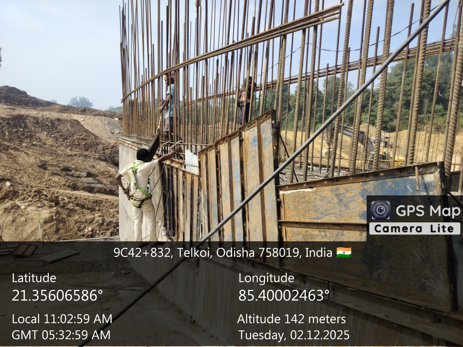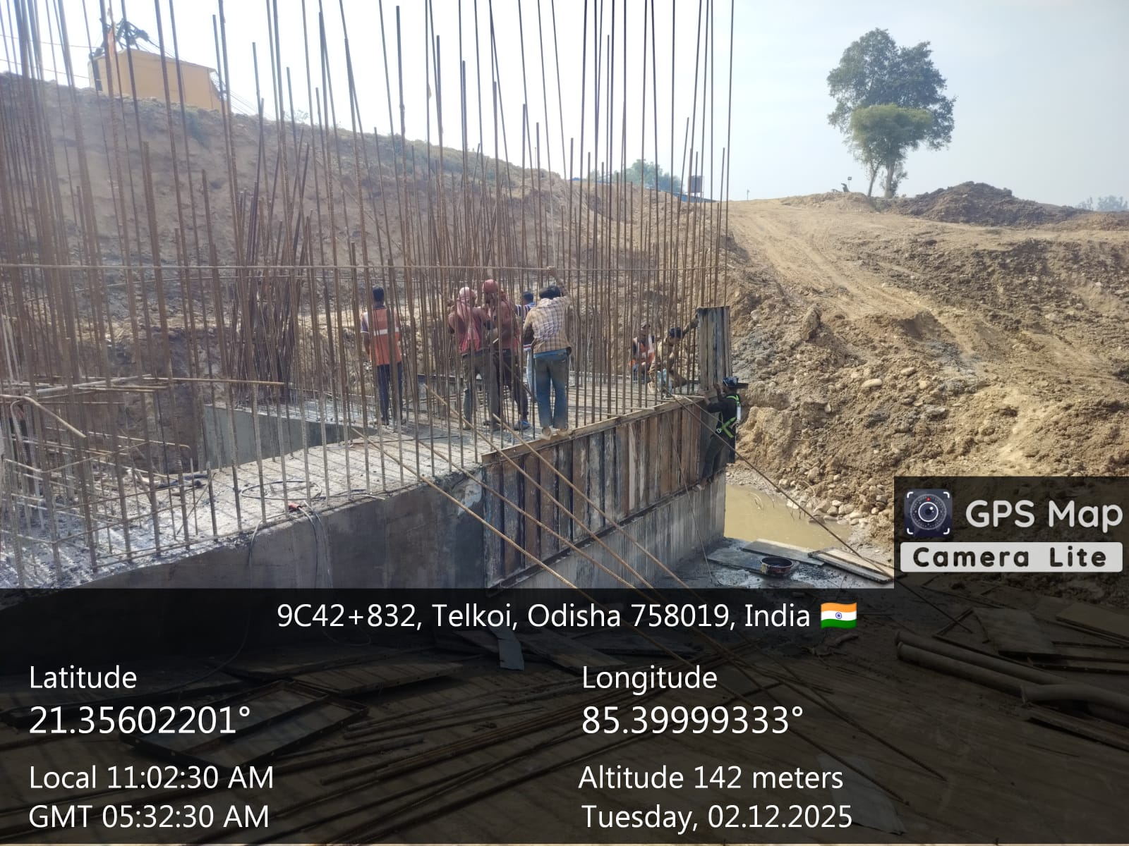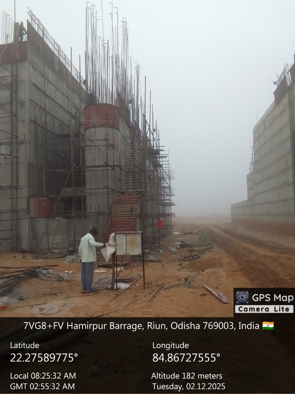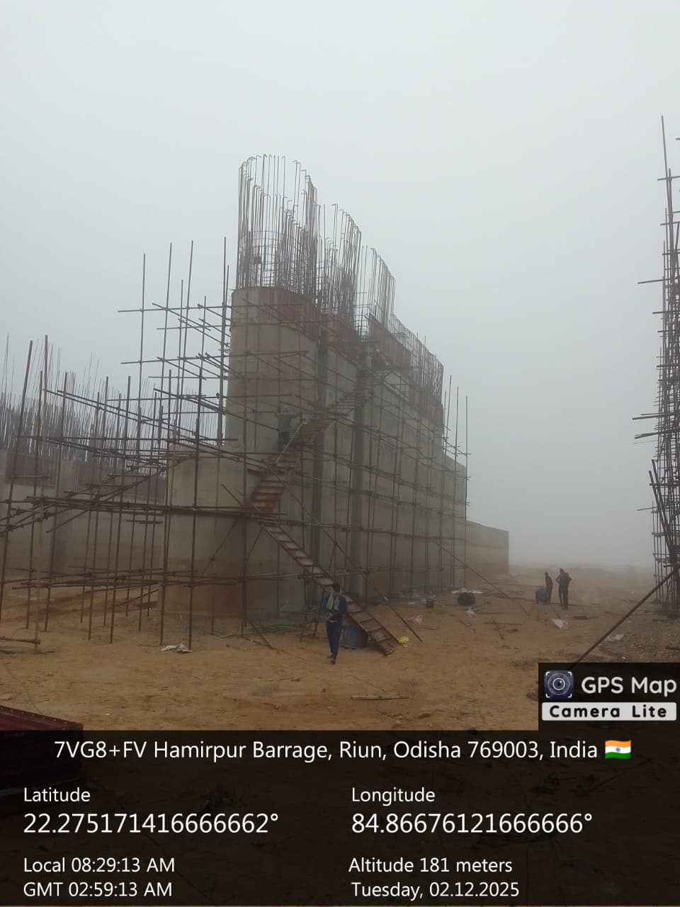 Reinforcement at right side under sluice bay in between P9 and A2 for final lift pocket filling work is under progress on 02.12.2025