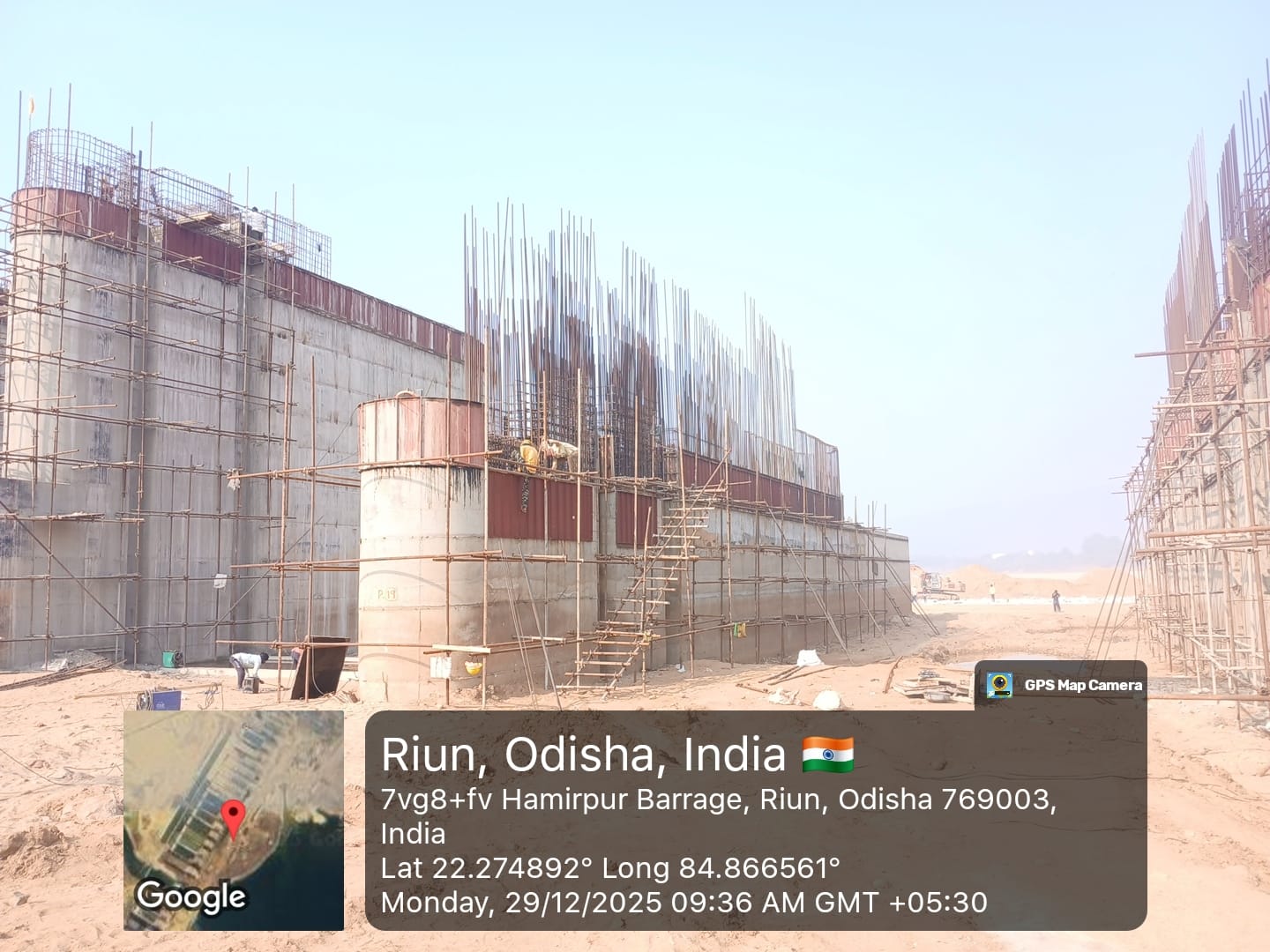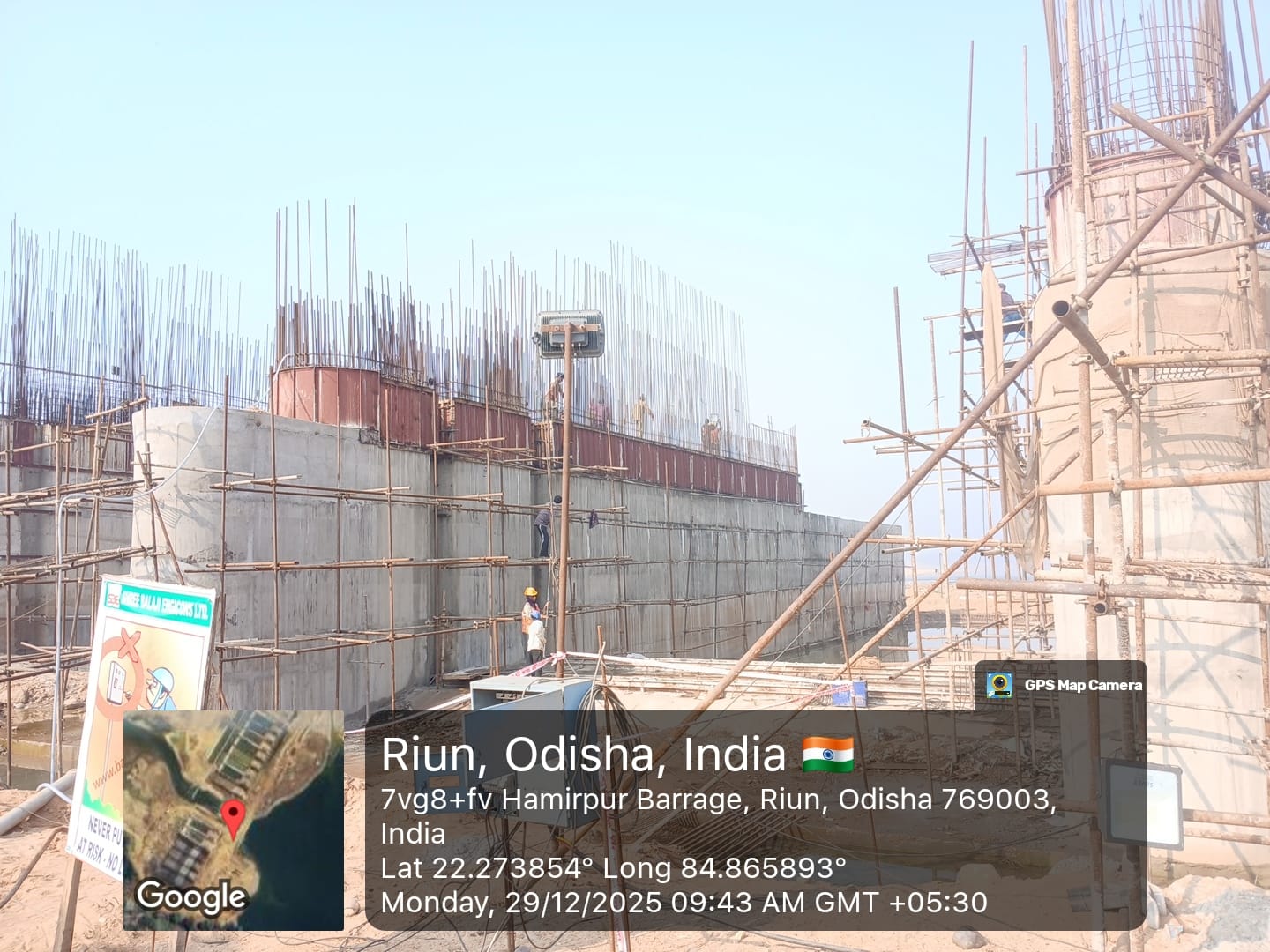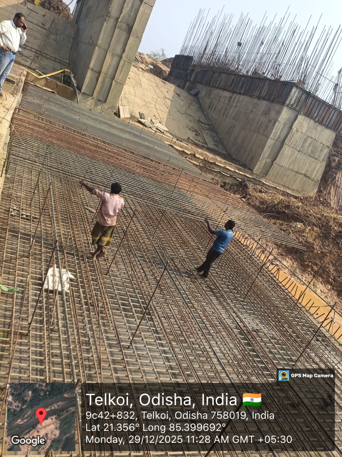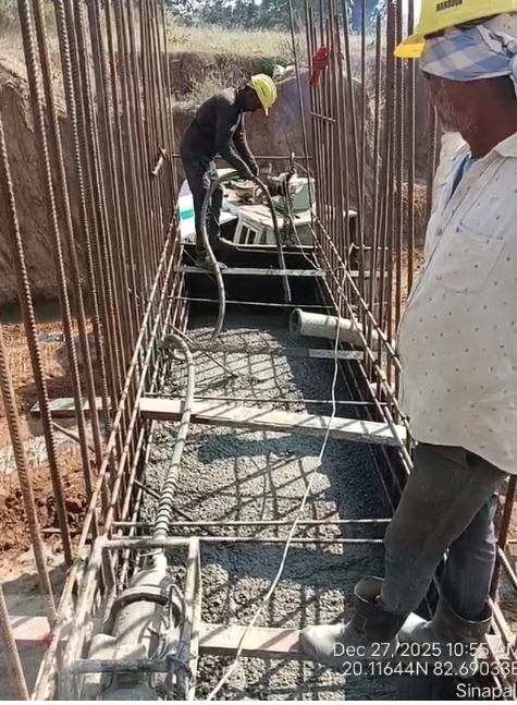 Concrete casting with M35A20 grade of stoplog & main gate grooves sill beam at bay-8 (barrage bay no.6) block-2 is in progress in presence of JE,KID, PM EPC agency, Site Engineers of PMC & EPC agency. Slump achieved 75mm on 27.12.2025