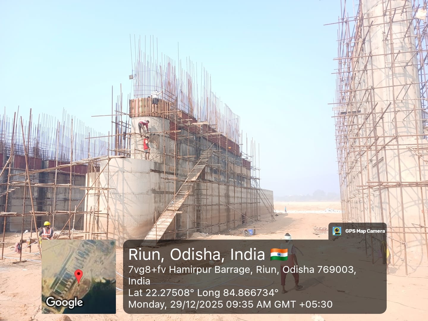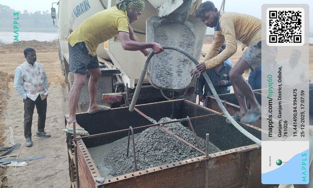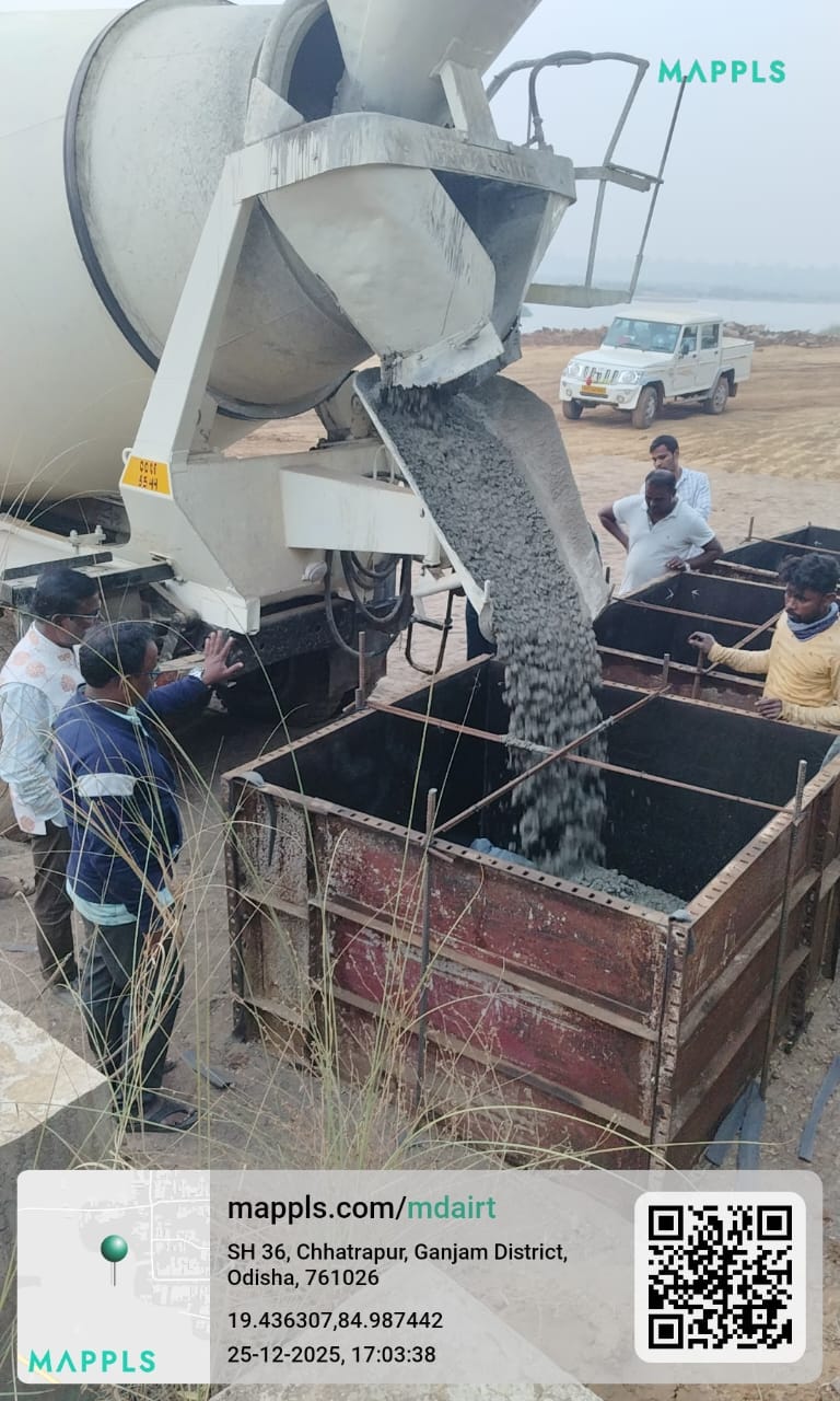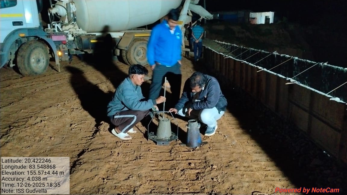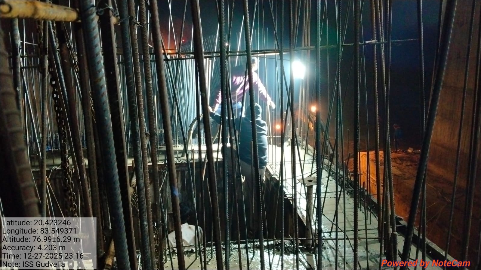 Concrete casting with M35A20 grade of stoplog & main gate grooves sill beam at bay-8 (barrage bay no.6) block-2 is in progress in presence of JE,KID, PM EPC agency, Site Engineers of PMC & EPC agency. Slump achieved 75mm on 27.12.2025