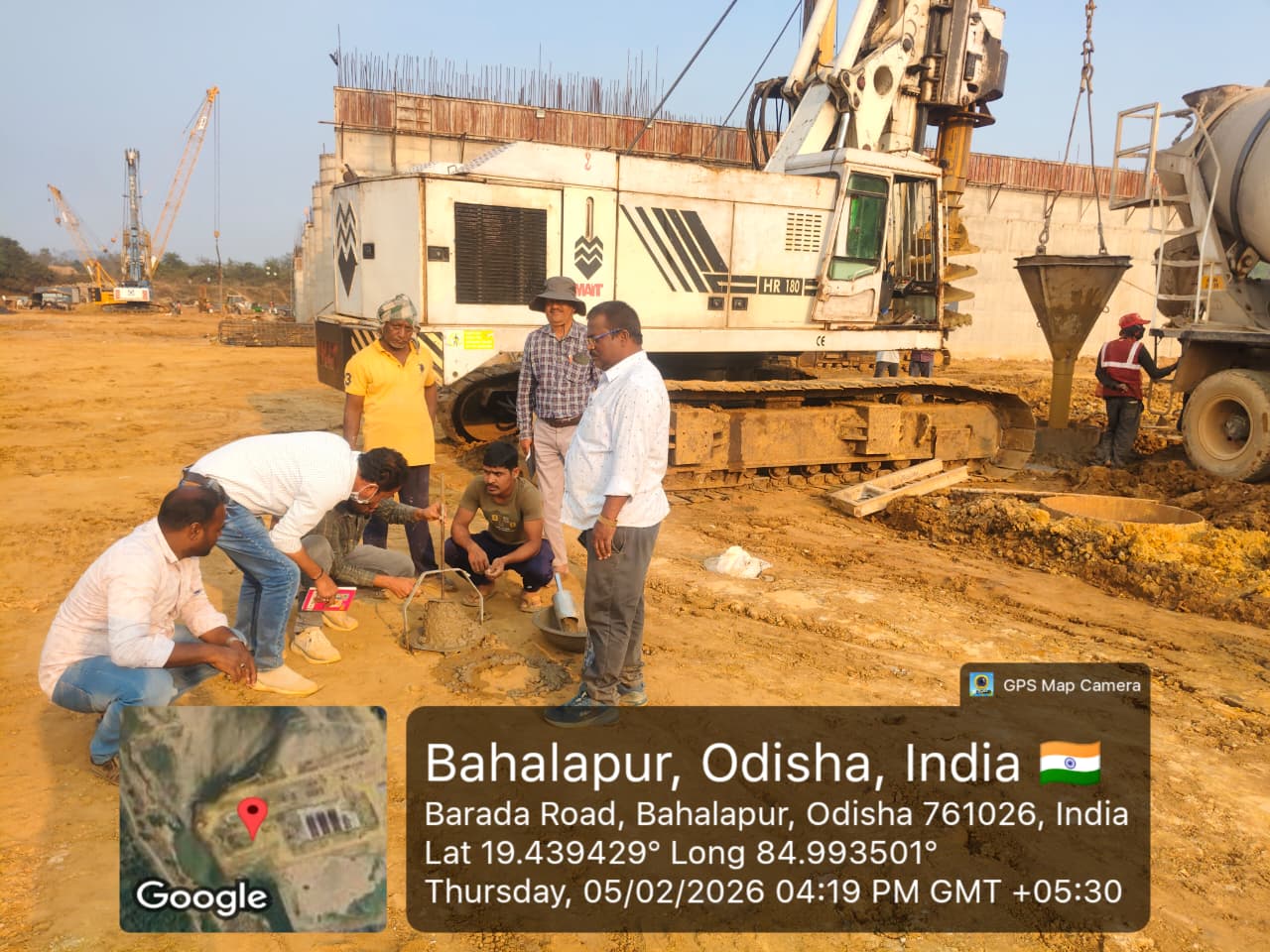 Visit of AEE, AE and dept. officials, IEE Expert along with Site engineer PMC. Inspected the overall progress of site and Pile load test and pile concreting.