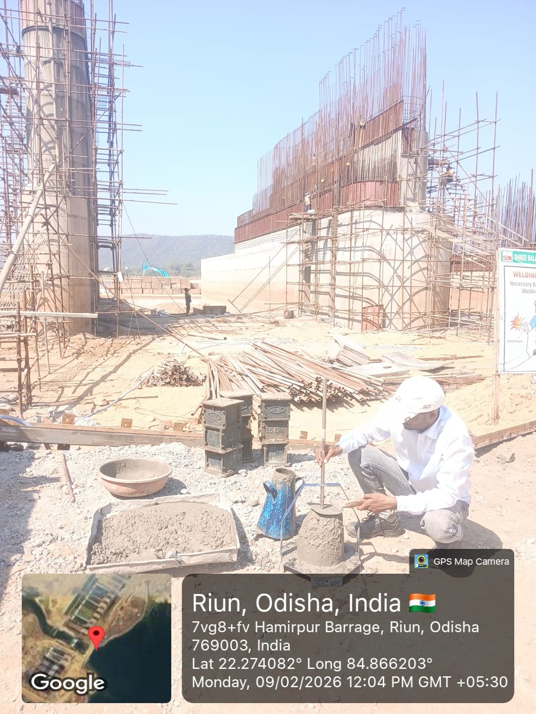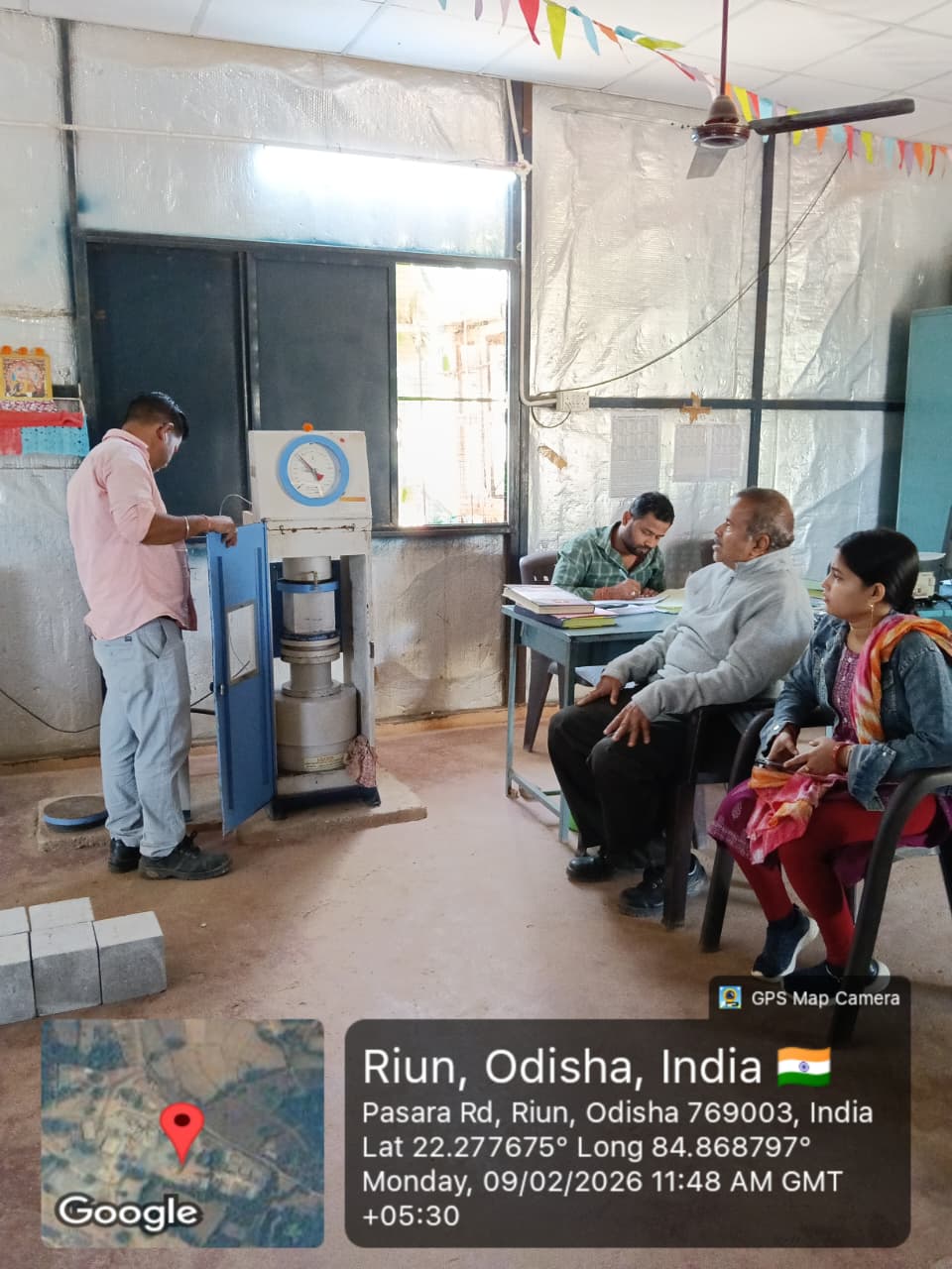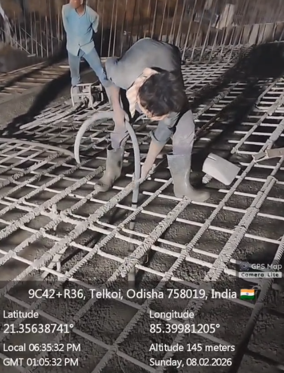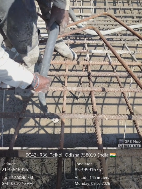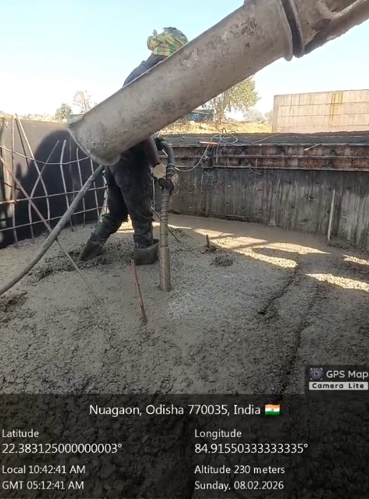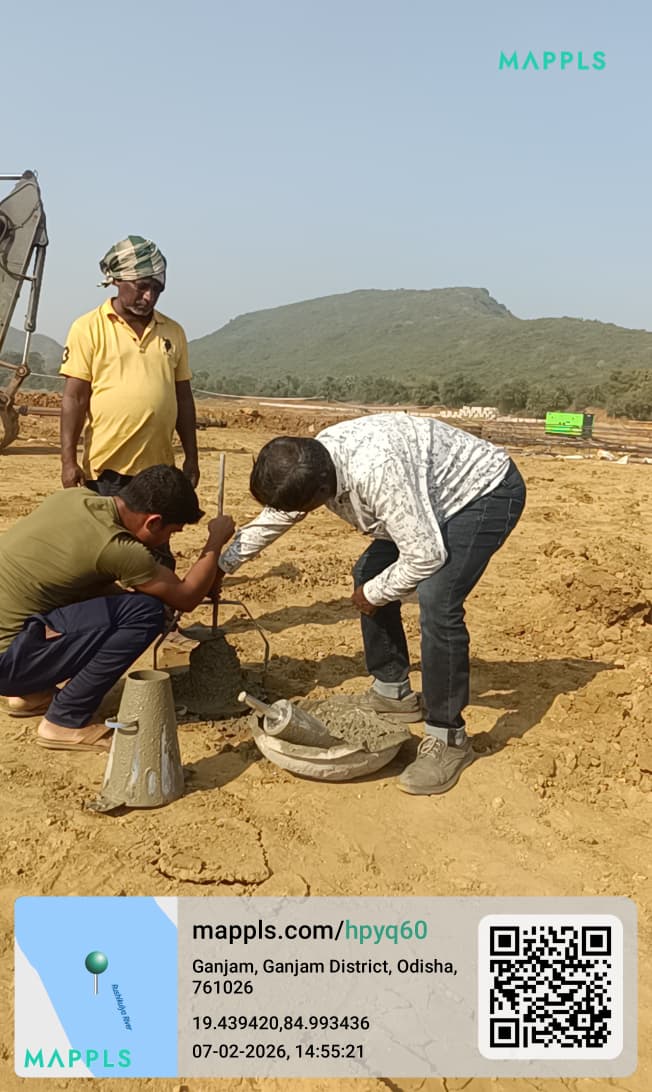 Conducted 3 nos. cube tests of RCC M25A20 grade at site Lab in presence of SE, QAD, Bhawanipata, AEE & JE of QAD, SDO, ISS Nandagaon, Sr. Site Engineer of PMC, PM of EPC Agency and site Engineer of PMC and EPC Agency. Found the result of 28days compressive strength 34.81N/mm² (Avg) on 09.02.2026