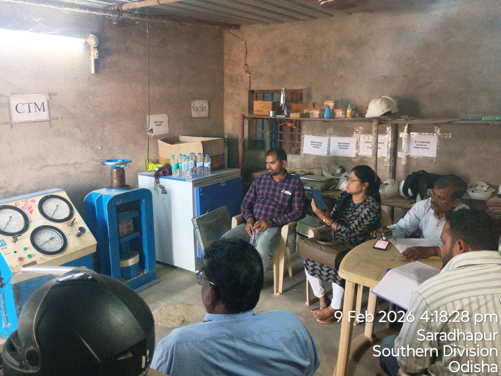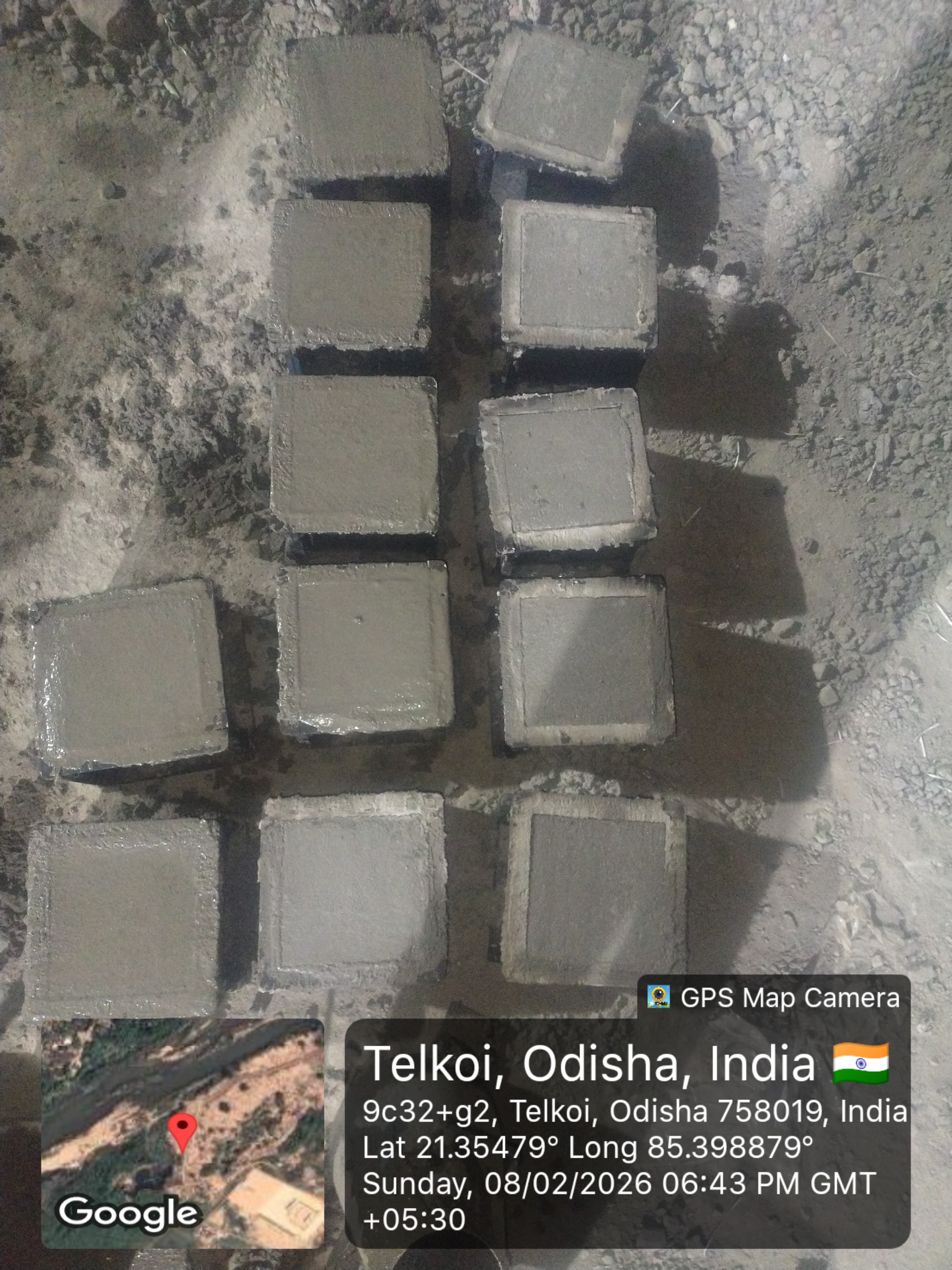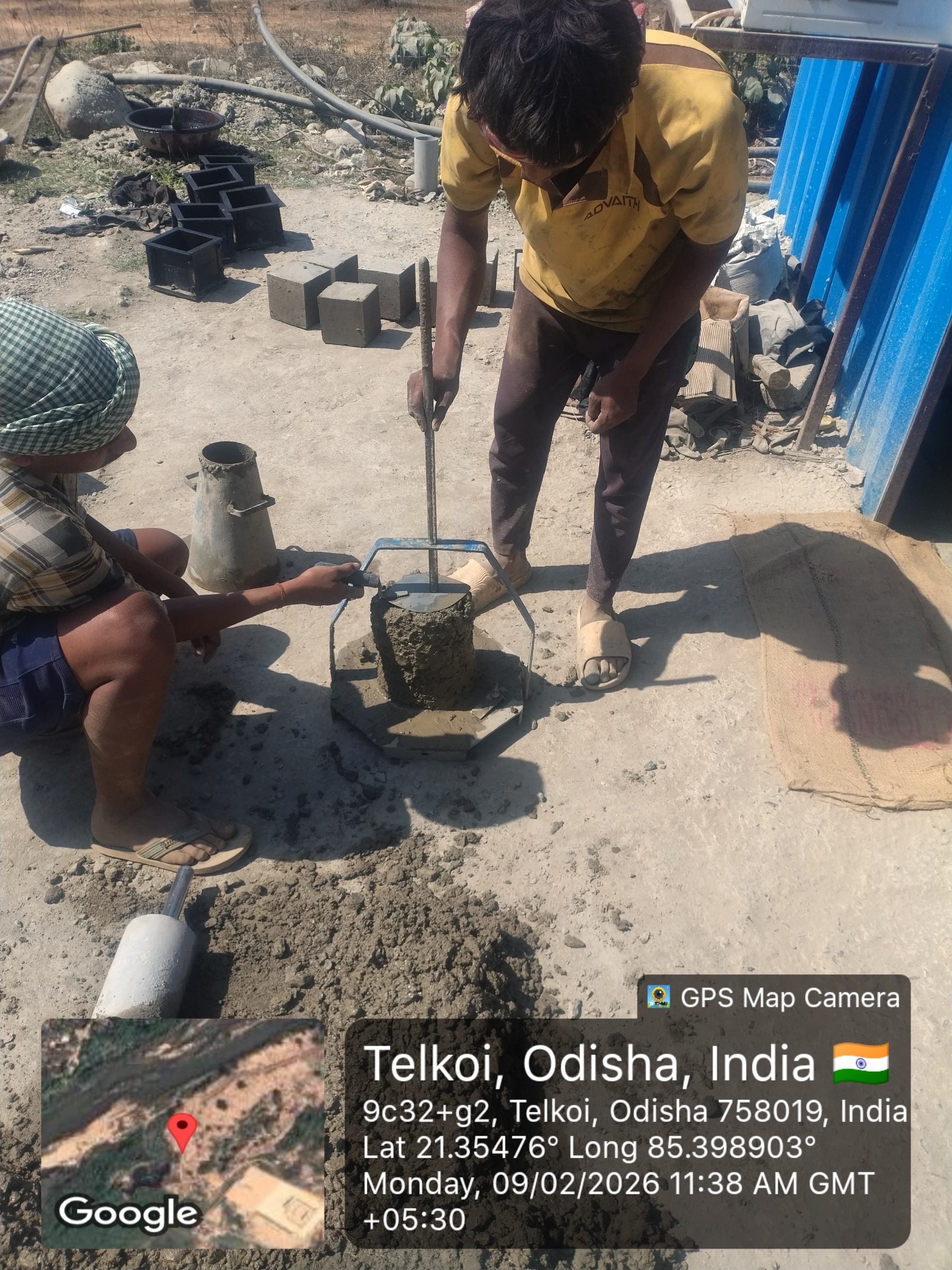 Conducted 3 nos. cube tests of RCC M25A20 grade at site Lab in presence of SE, QAD, Bhawanipata, AEE & JE of QAD, SDO, ISS Nandagaon, Sr. Site Engineer of PMC, PM of EPC Agency and site Engineer of PMC and EPC Agency. Found the result of 28days compressive strength 34.81N/mm² (Avg) on 09.02.2026