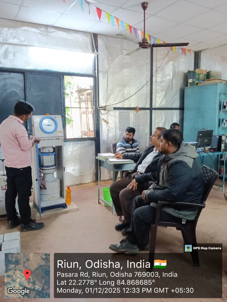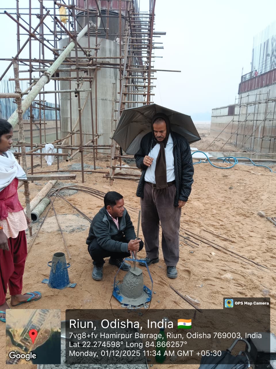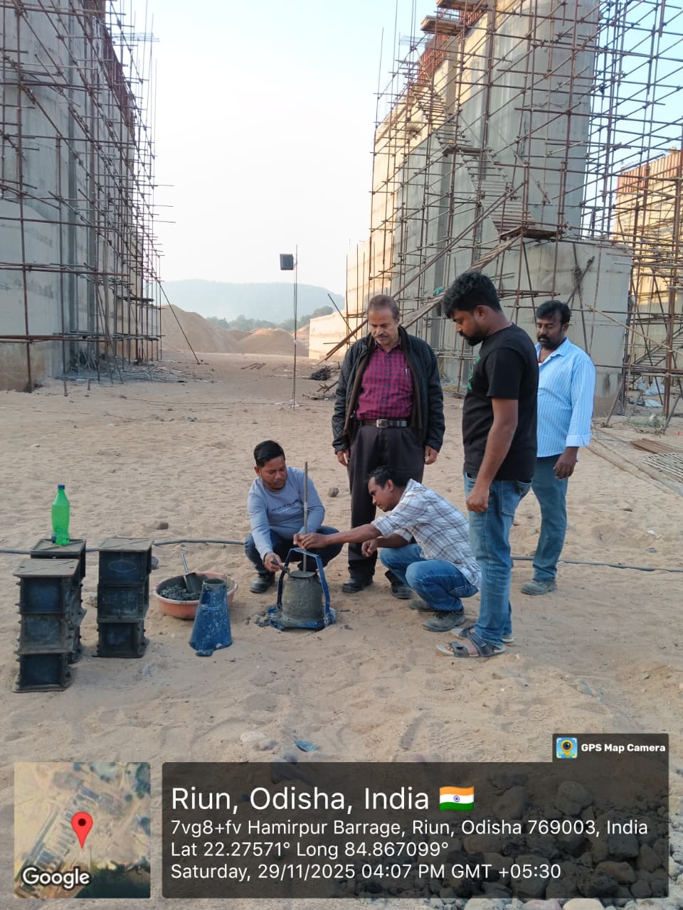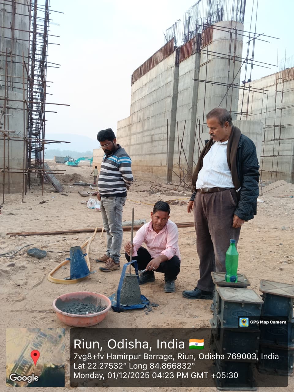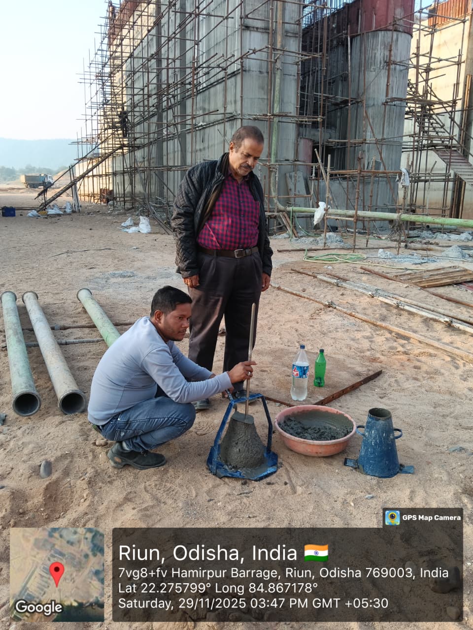 M20 Grade 28days Compressive strength test Conducted for C.C Block at Baitarani ISS Site laboratory in presence of Quality Control AEE of Quality Assurance Division Chandikhol. Superintending Engineer,AEE and AE of Akhuapada irrigation Division,PMCand representatives of Agency-02.12.2025