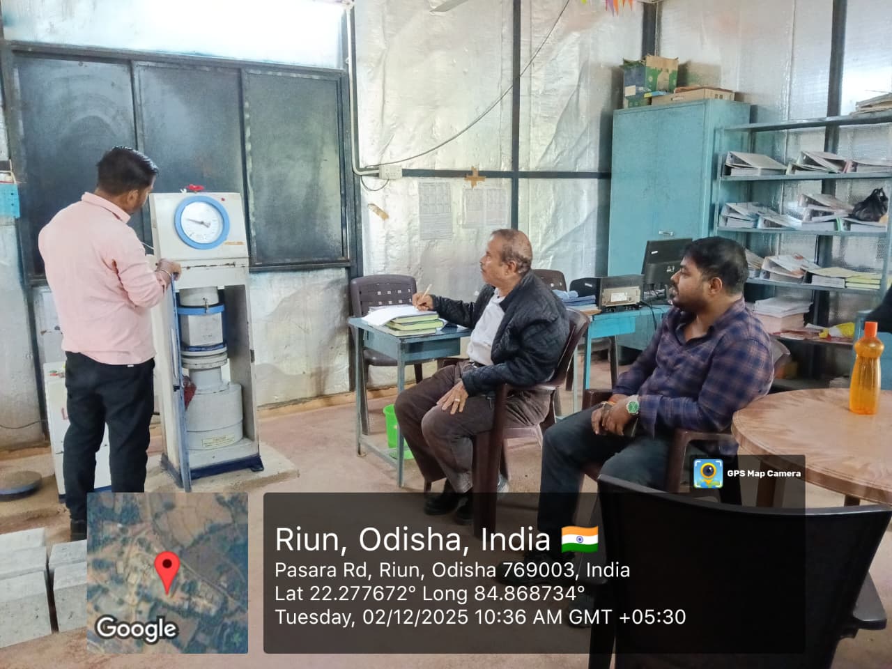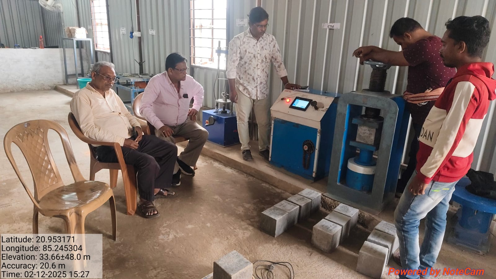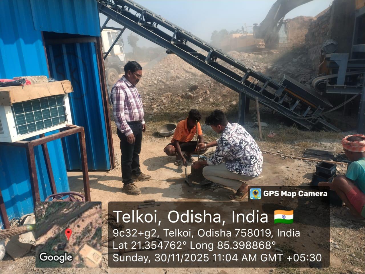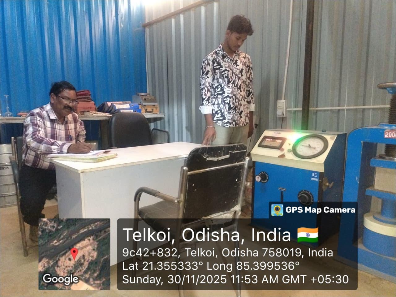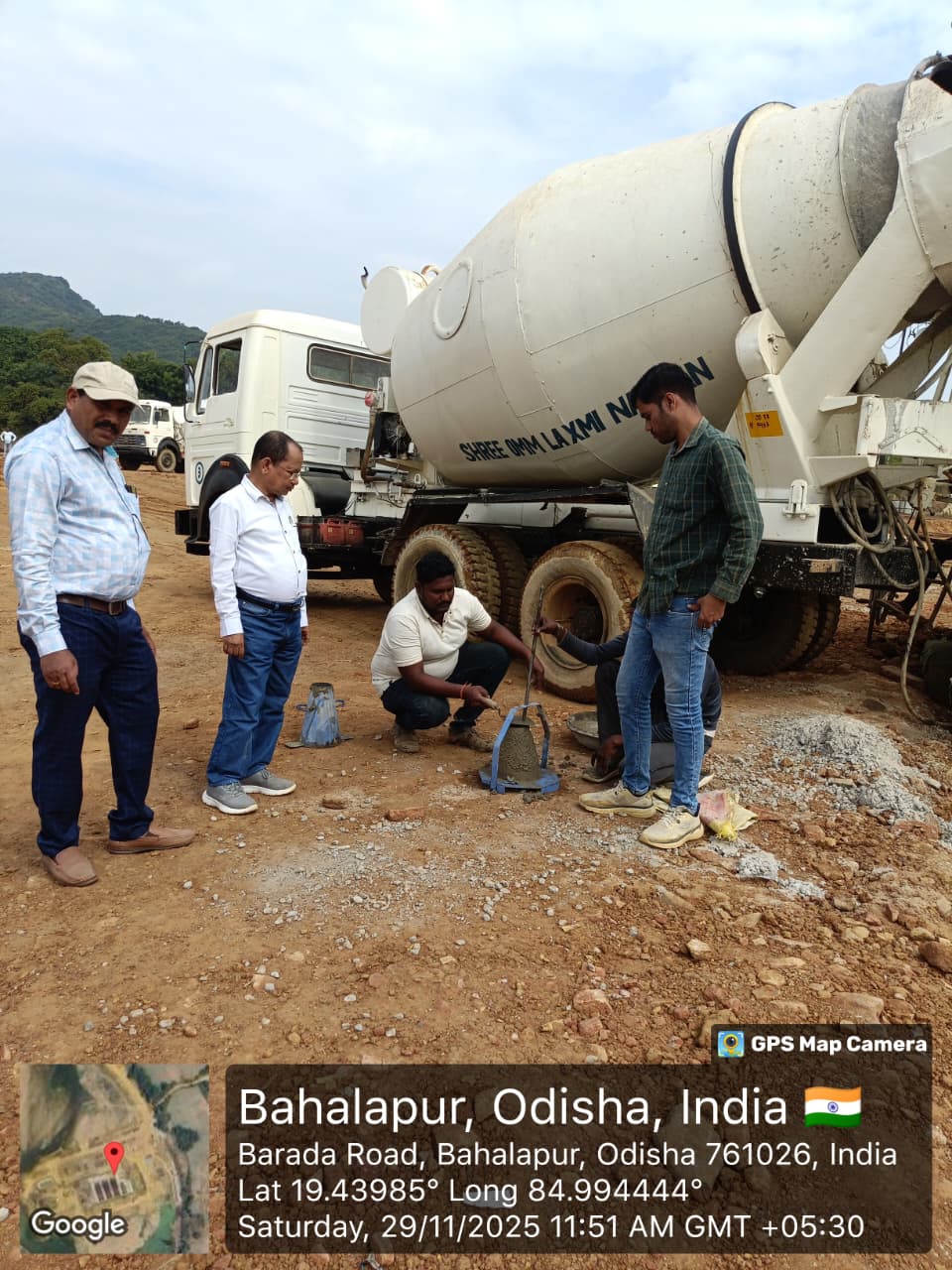 M20 Grade 28days Compressive strength test Conducted for C.C Block at Baitarani ISS Site laboratory in presence of Quality Control AEE of Quality Assurance Division Chandikhol. Superintending Engineer,AEE and AE of Akhuapada irrigation Division,PMCand representatives of Agency-02.12.2025
