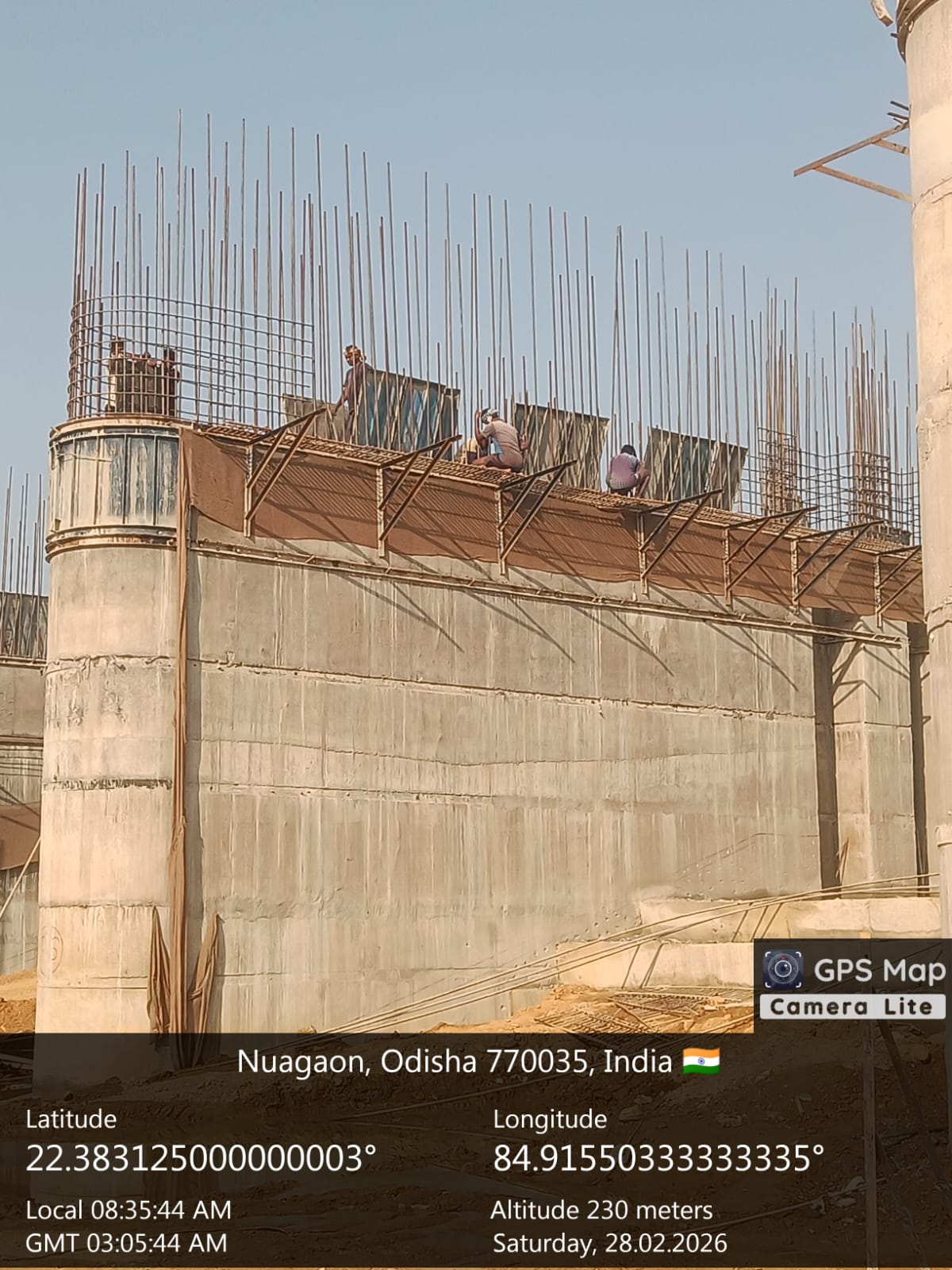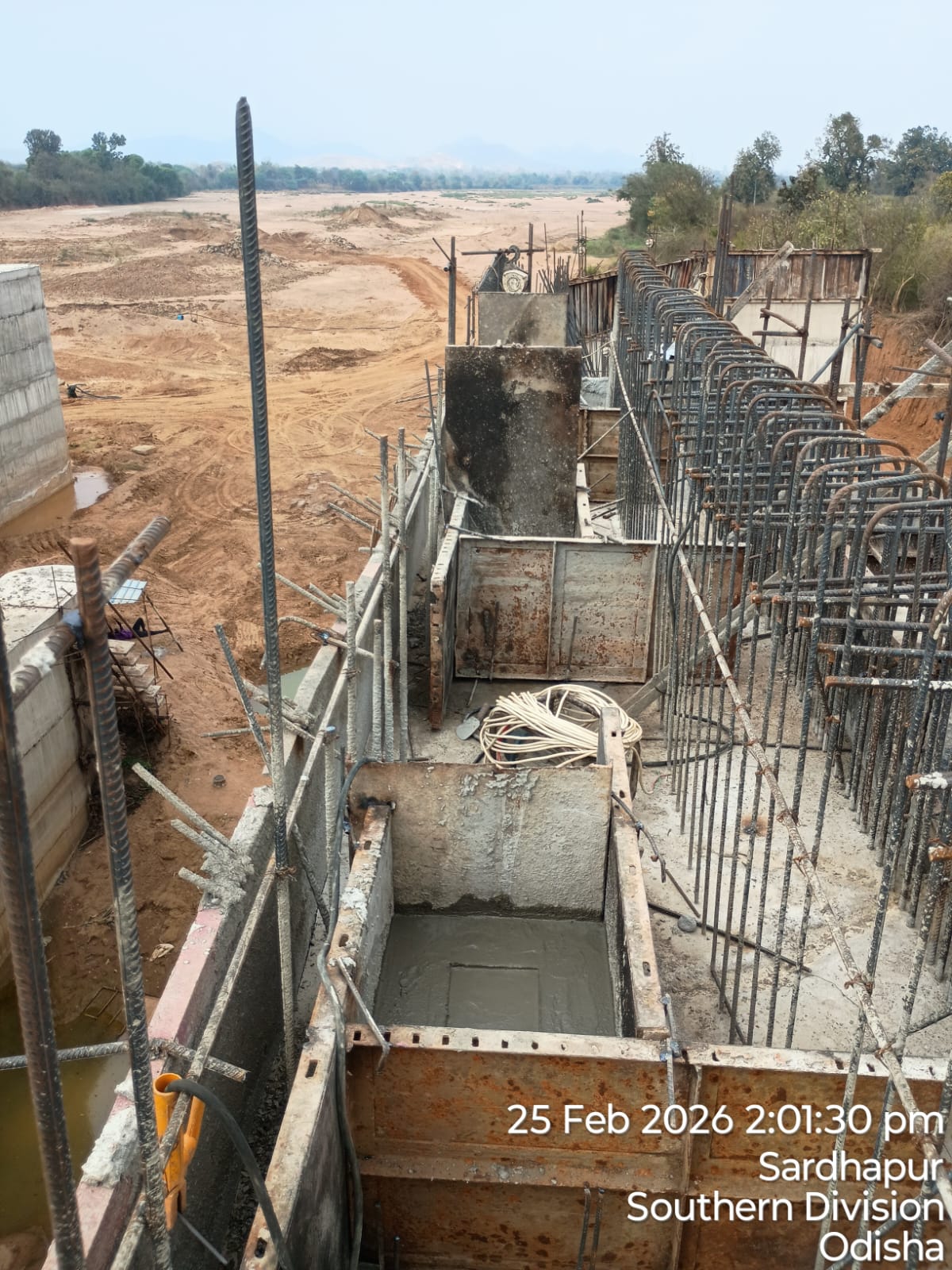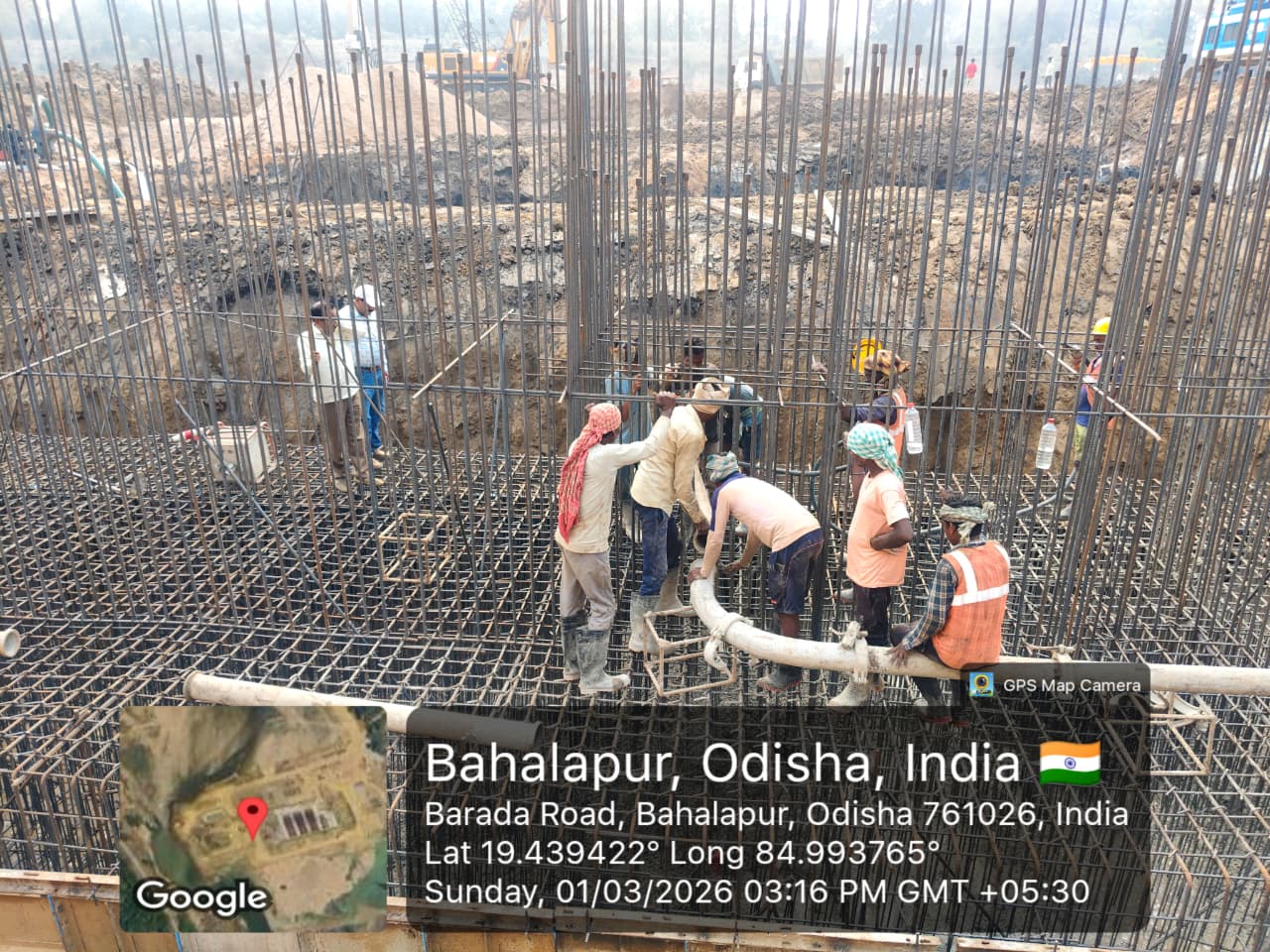 (v) Area is cleaned using air water pressure and passed by SE, KID, Bhawanipatna and ready to place concrete with RCC M35A20 grade upto RL-247.00m on 27.02.2026