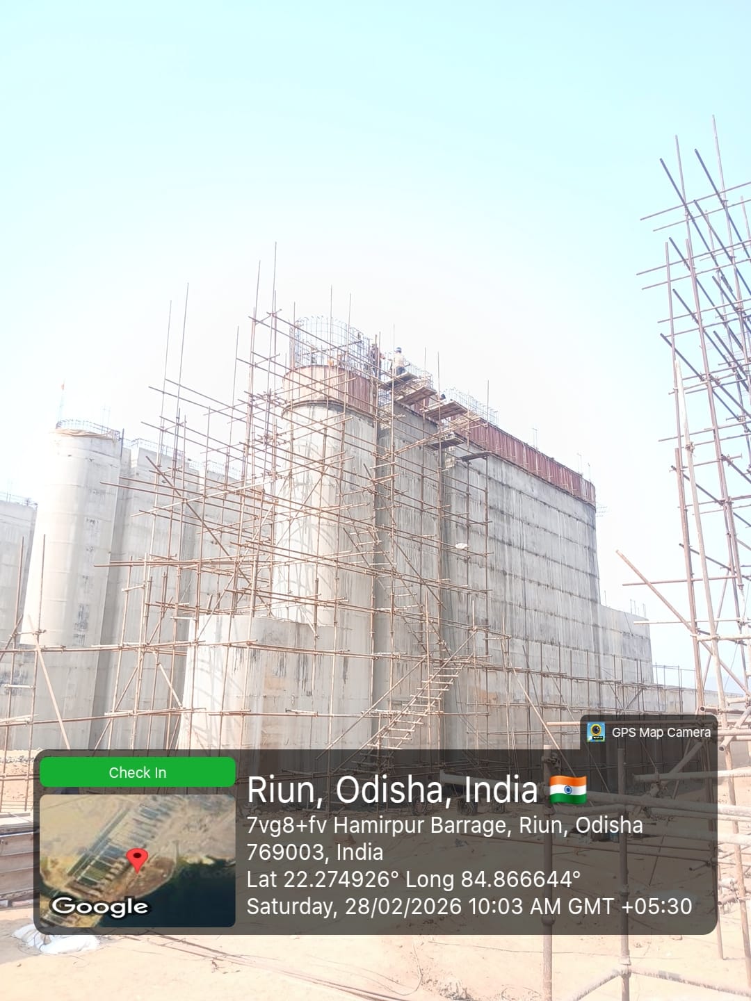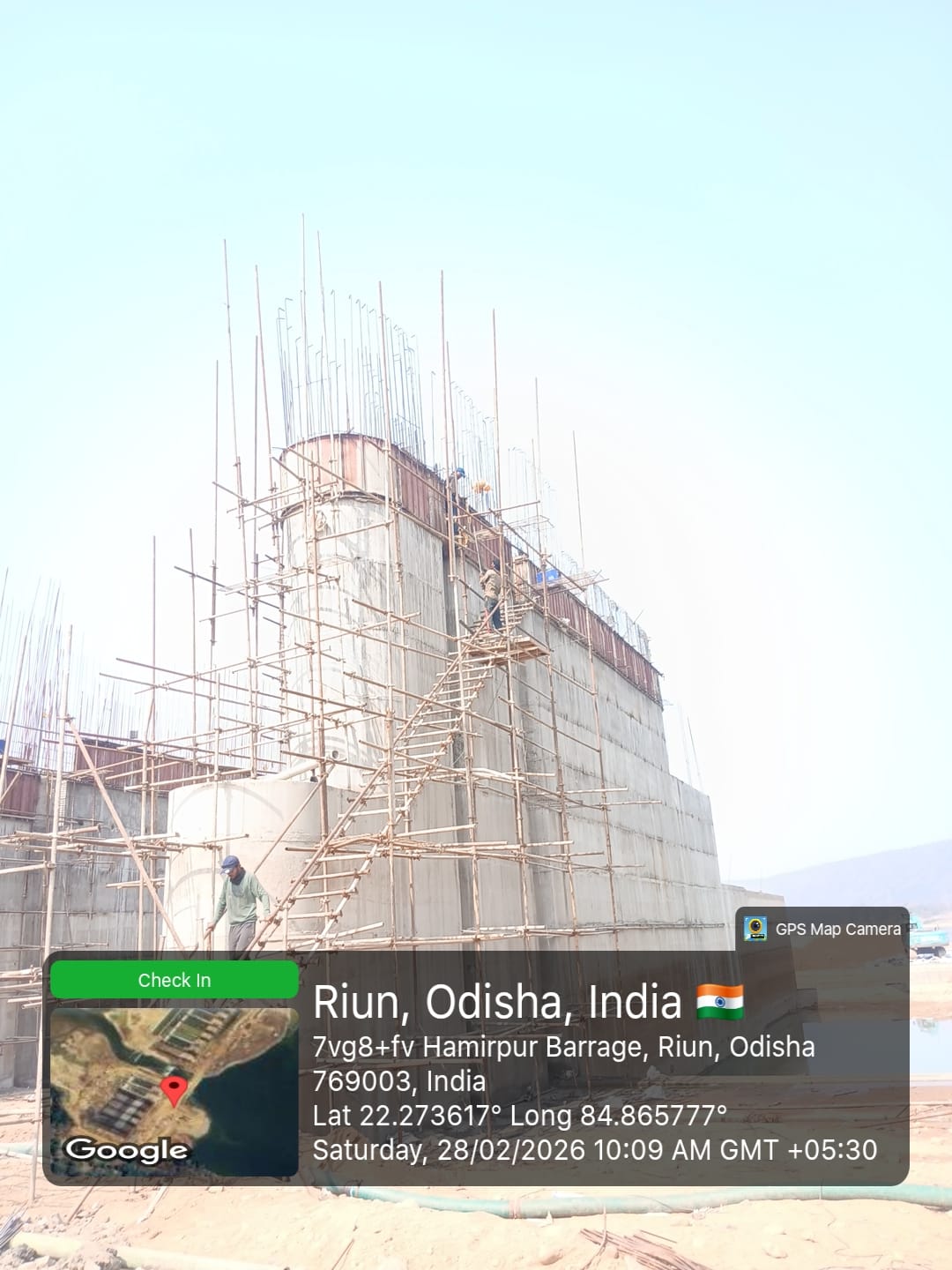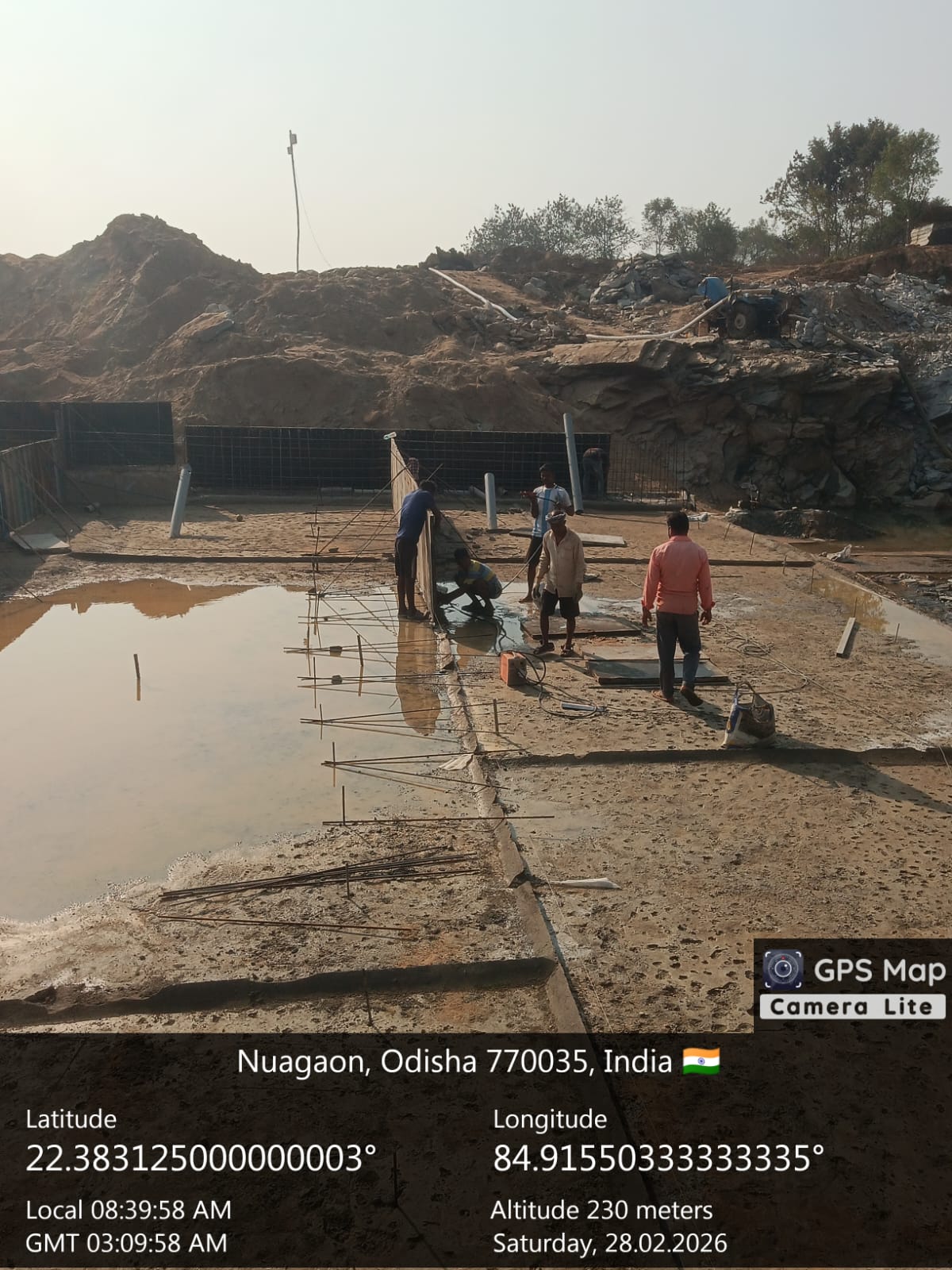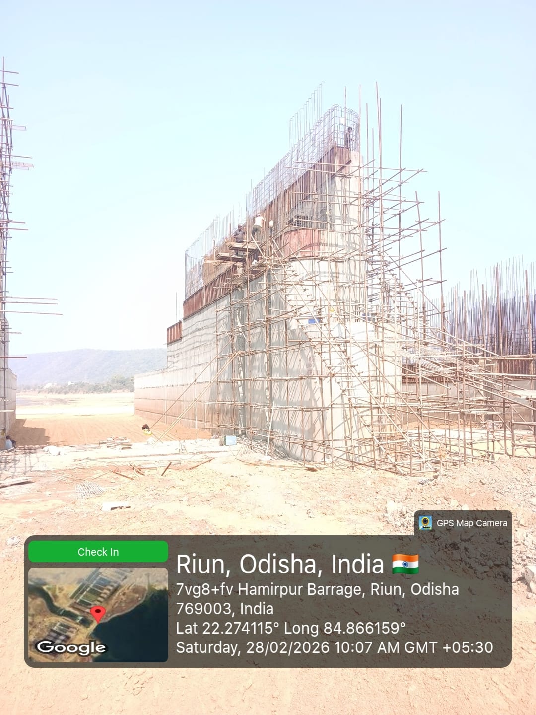 (v) Area is cleaned using air water pressure and passed by SE, KID, Bhawanipatna and ready to place concrete with RCC M35A20 grade upto RL-247.00m on 27.02.2026