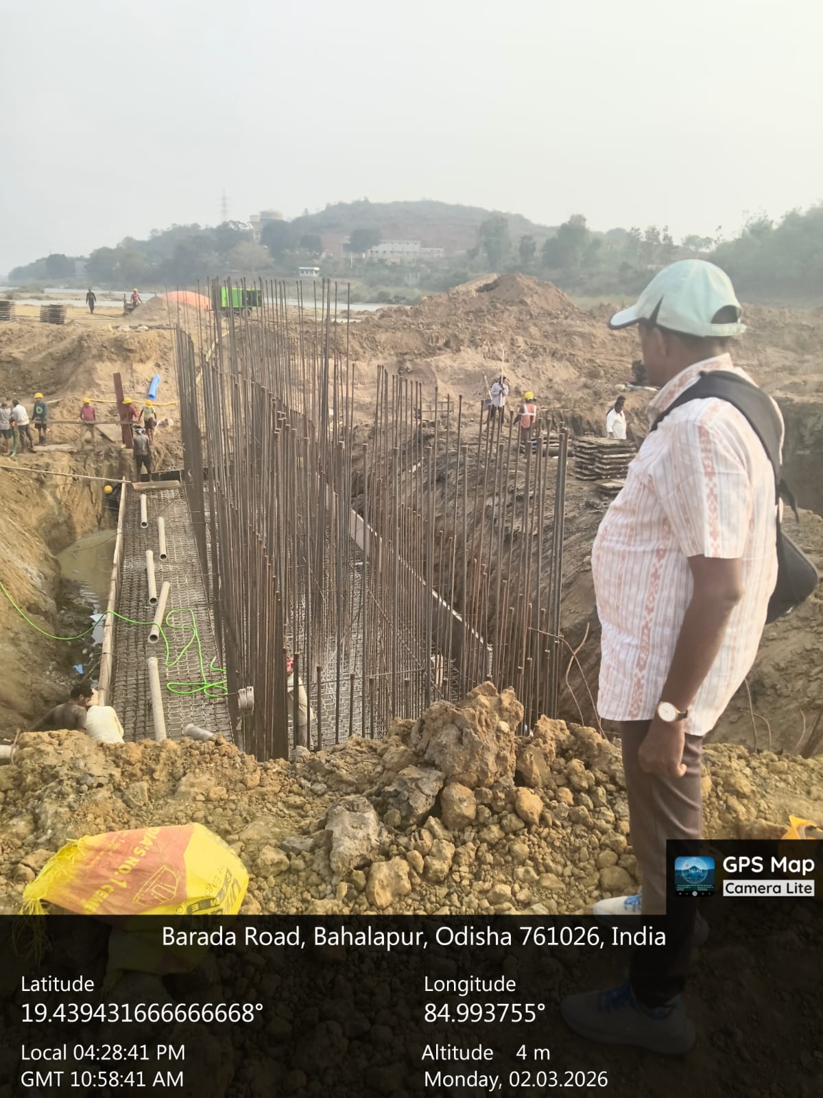 Visit of AEE, AE of Dept., SD expert and Irr. Eng. Exp. along with Site engineers PMC to the ISS Site. Inspected the overall progress of site, CC block concreting, LHS divide wall pier cap RCC work, Pile cage lowering and Divide wall pile no 113 concreting.