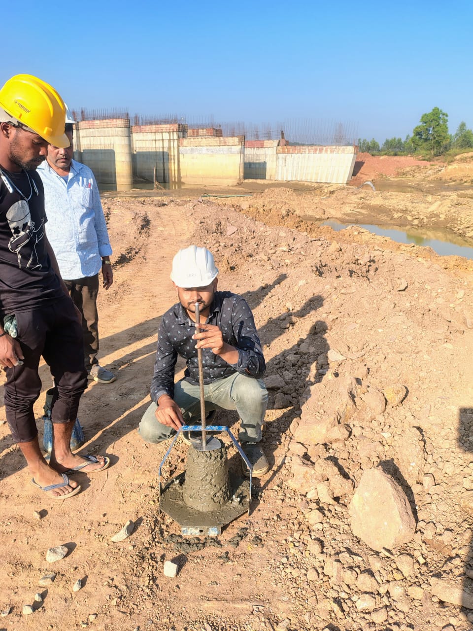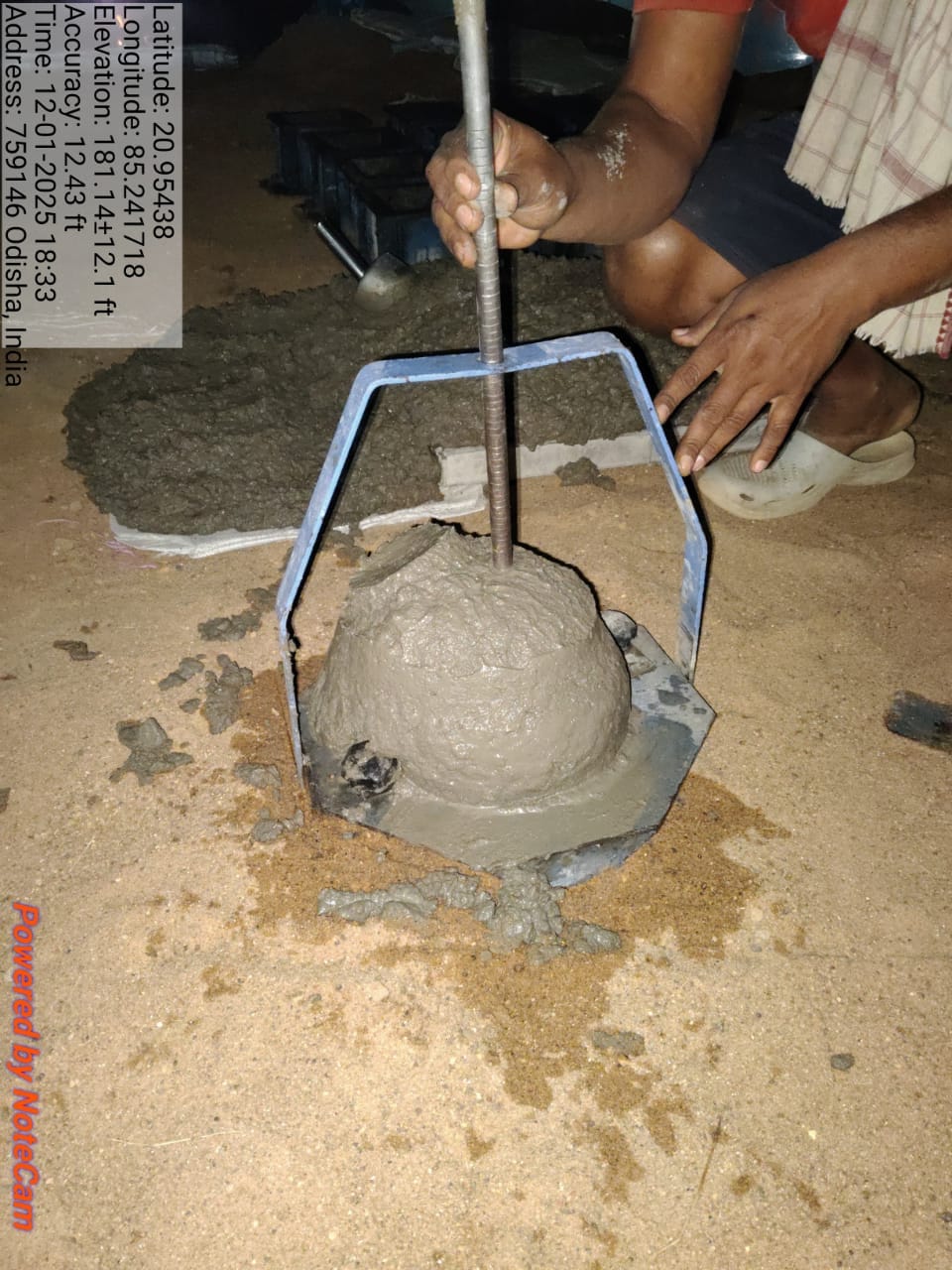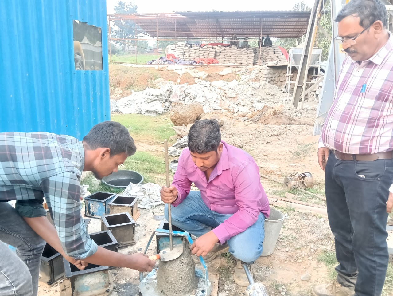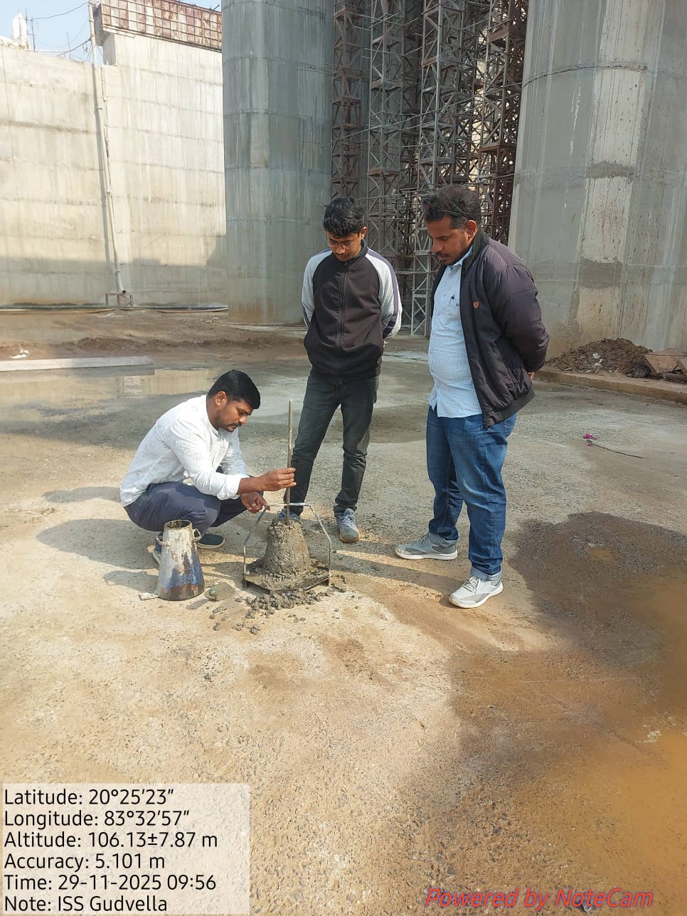 Slump cone test conducted at site in presence of QA/QC Expert and Site Engineers PMC. Cube cast at site.