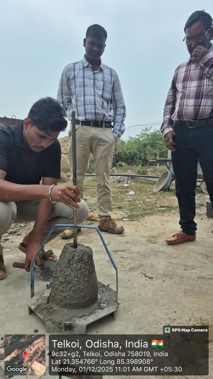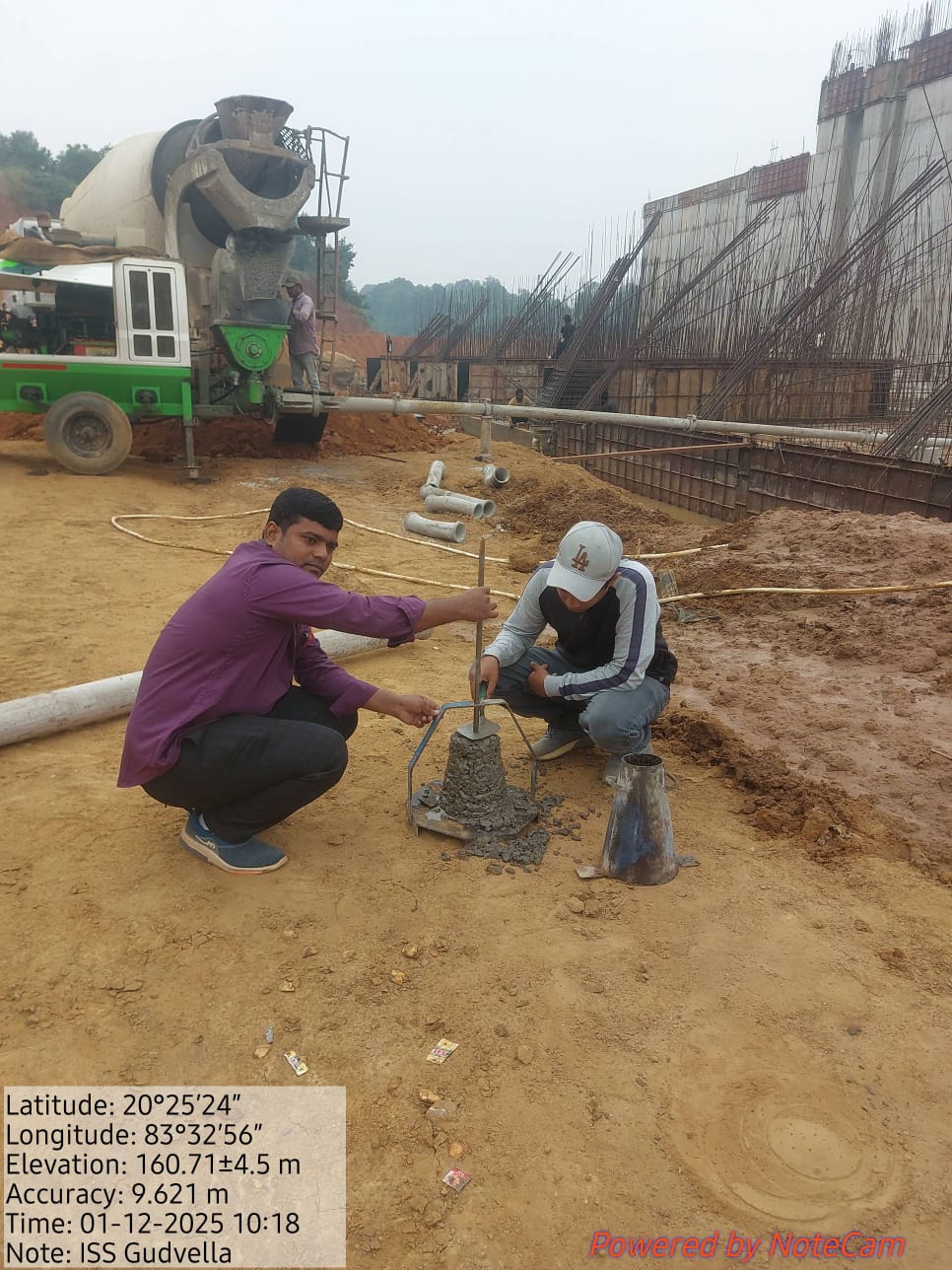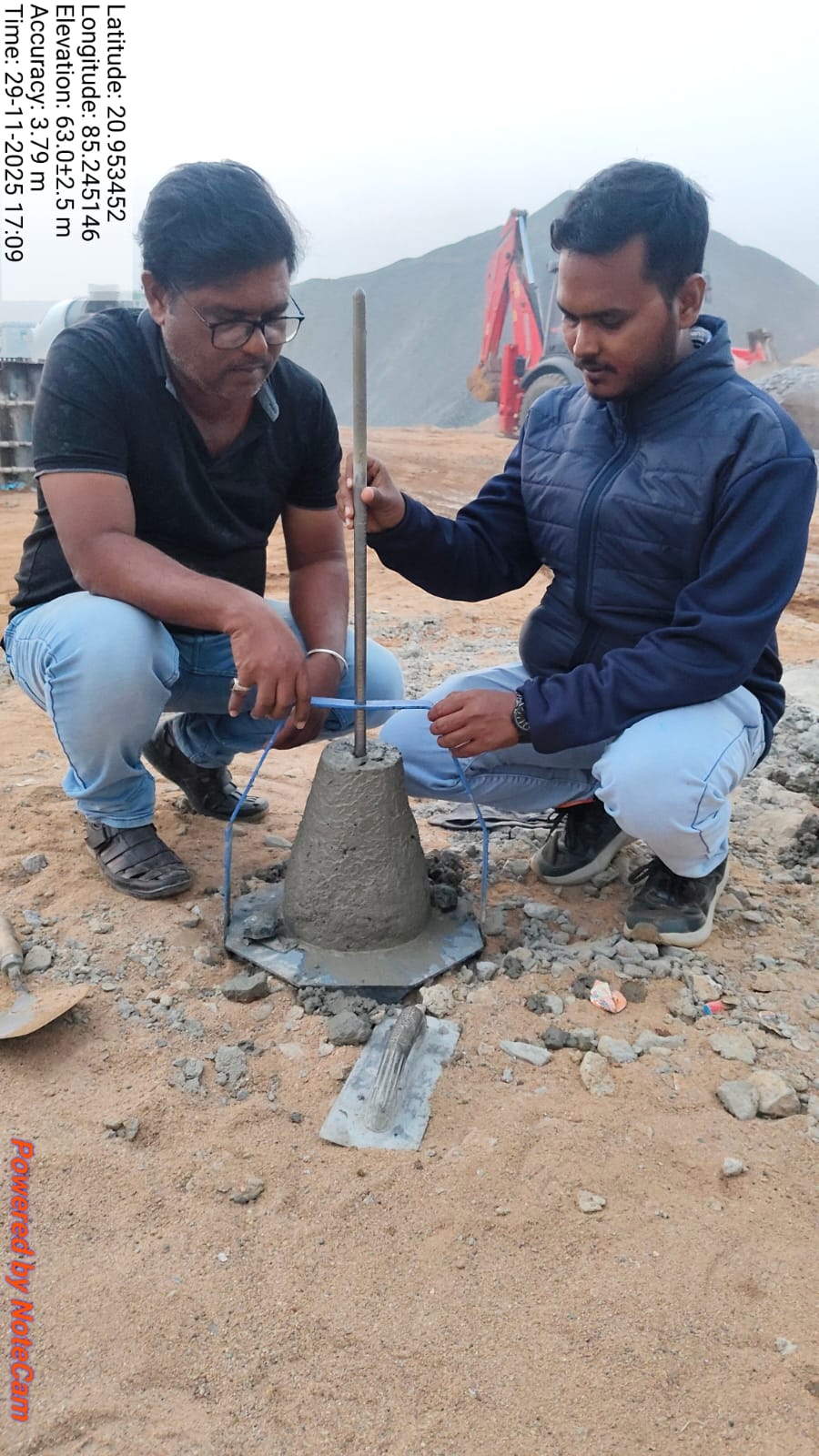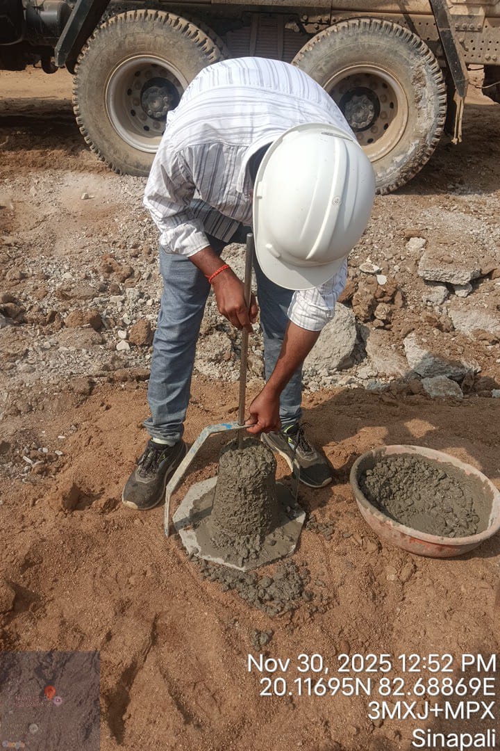 Slump cone test conducted at site in presence of QA/QC Expert and Site Engineers PMC. Cube cast at site.