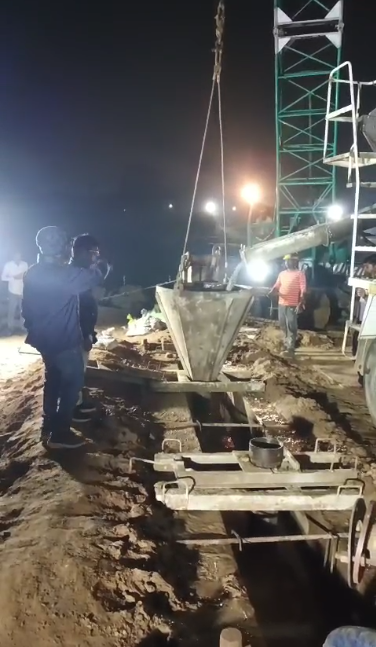Cast of concrete at end seal portion from P5 to P7 with RL 147.85m to 148.60m is under progress through chute in the presence of Dept JE, site engineer of PMC and agency at site. Slump achieved 67mm on 29.11.2025