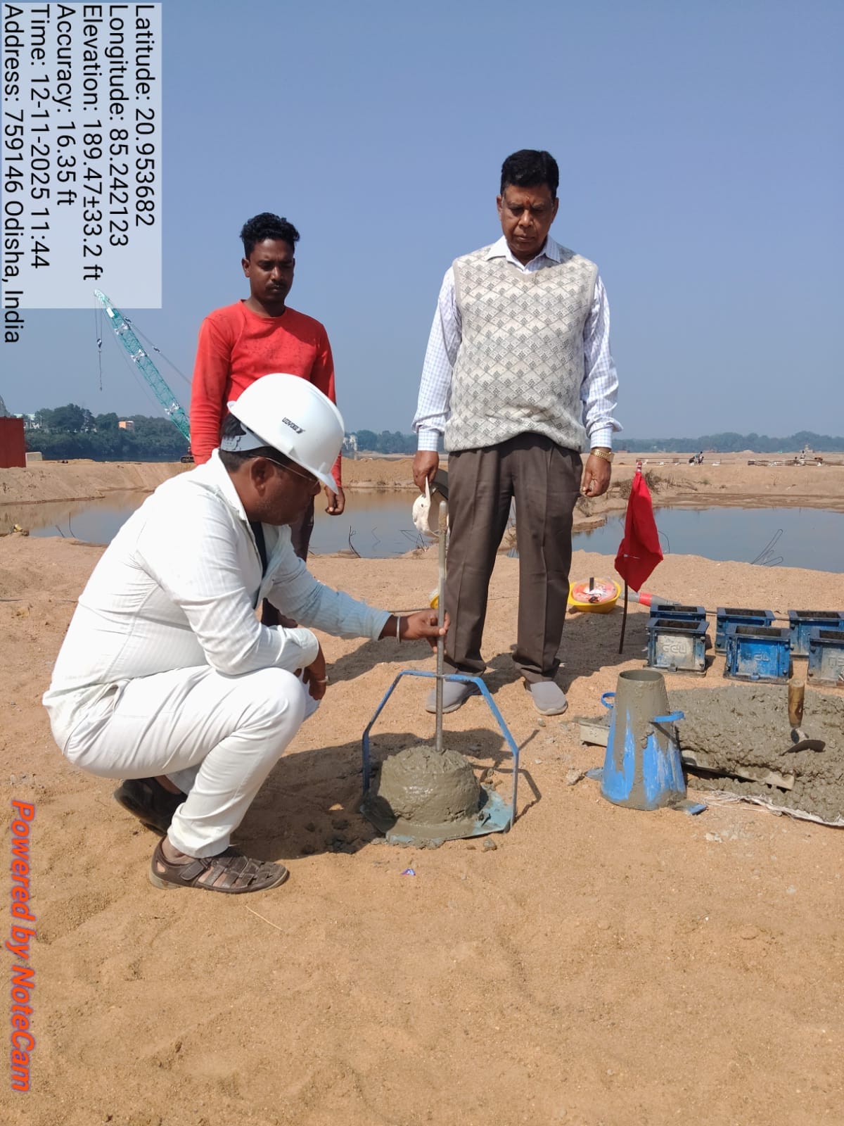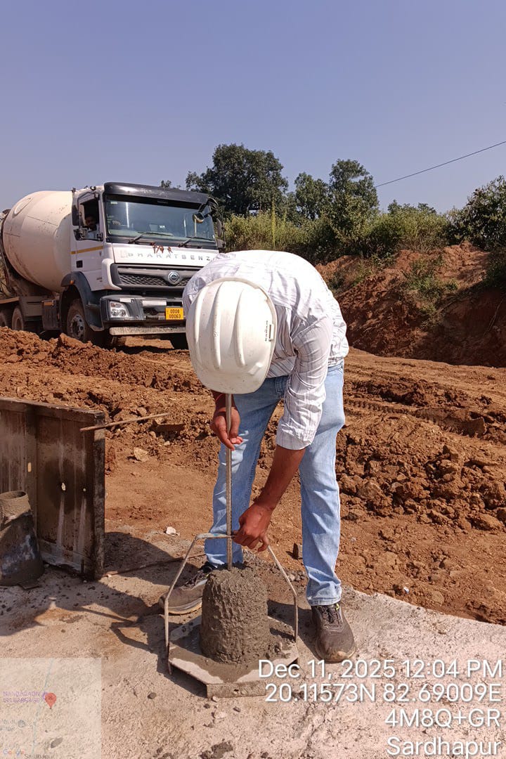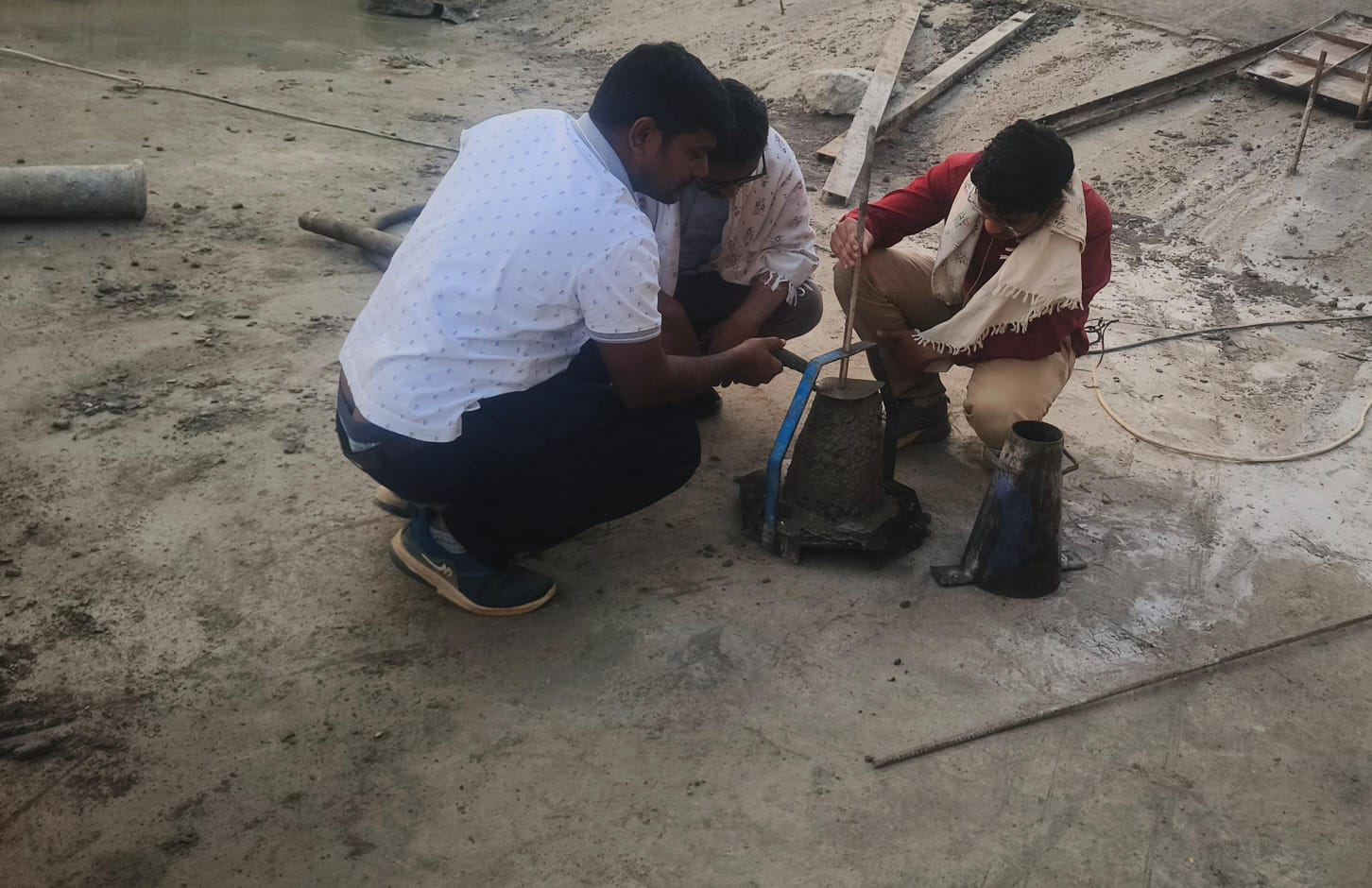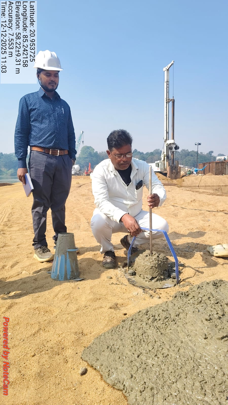 Slump test and cube cast at site in presence of Geologist and Irr. Eng. Expert along with Site engineer