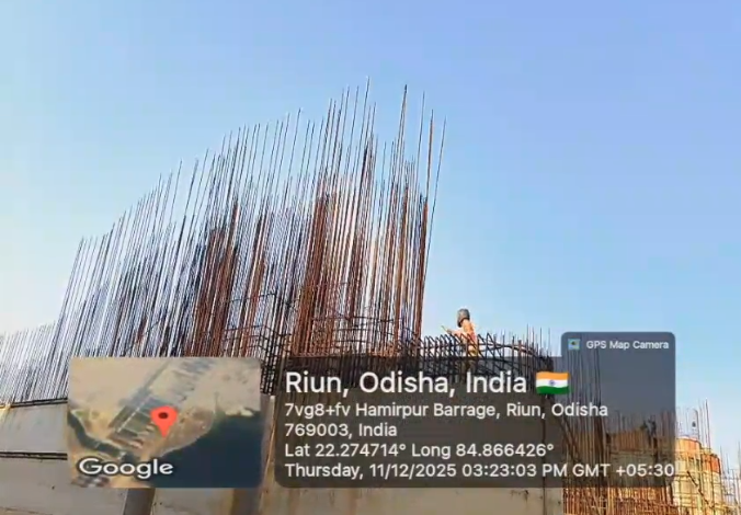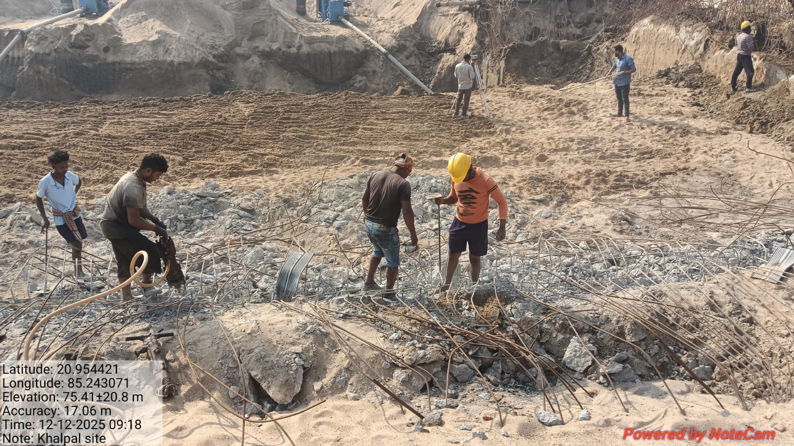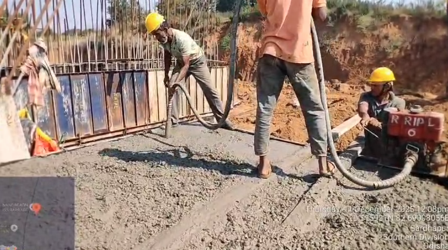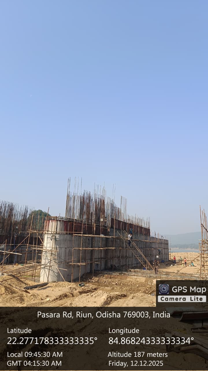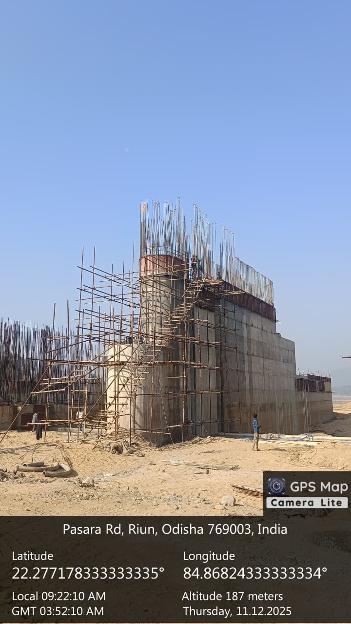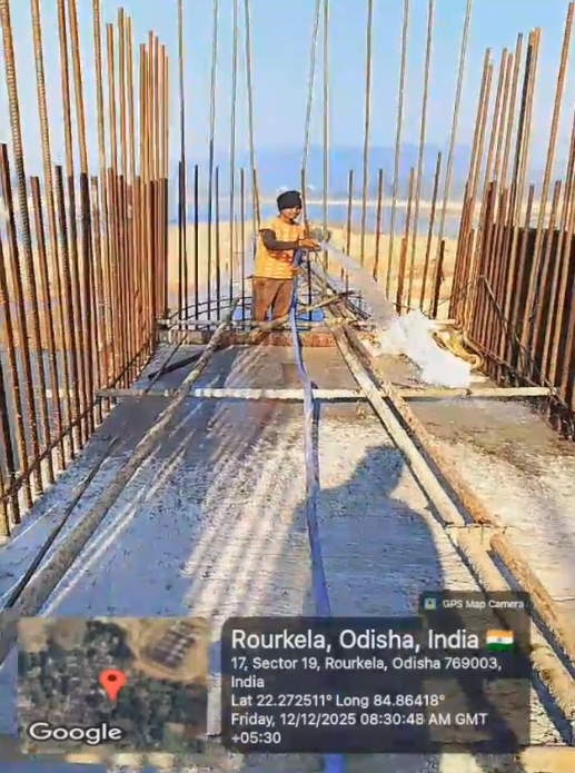 Cast of concrete 2nd layer RCC M25A20 grade at Barrage bay crest -8 in between P9 and P8 from RL 148.90m to 149.60 m is under progress through pump in the presence of Dept JE, site engineer of PMC and agency at site. Slump achieved 91mm on 11.12.2025