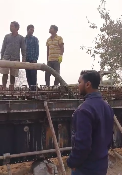 Concrete casting with RCC M25A20 grade for 6nos. Pedestals at pier no.9 from RL-245.40m to RL-245.70m is in progress through concrete pump in presence of Site Engineers of PMC & Site Engineer of EPC agency. The slump test value is 81mm on 06.01.2026