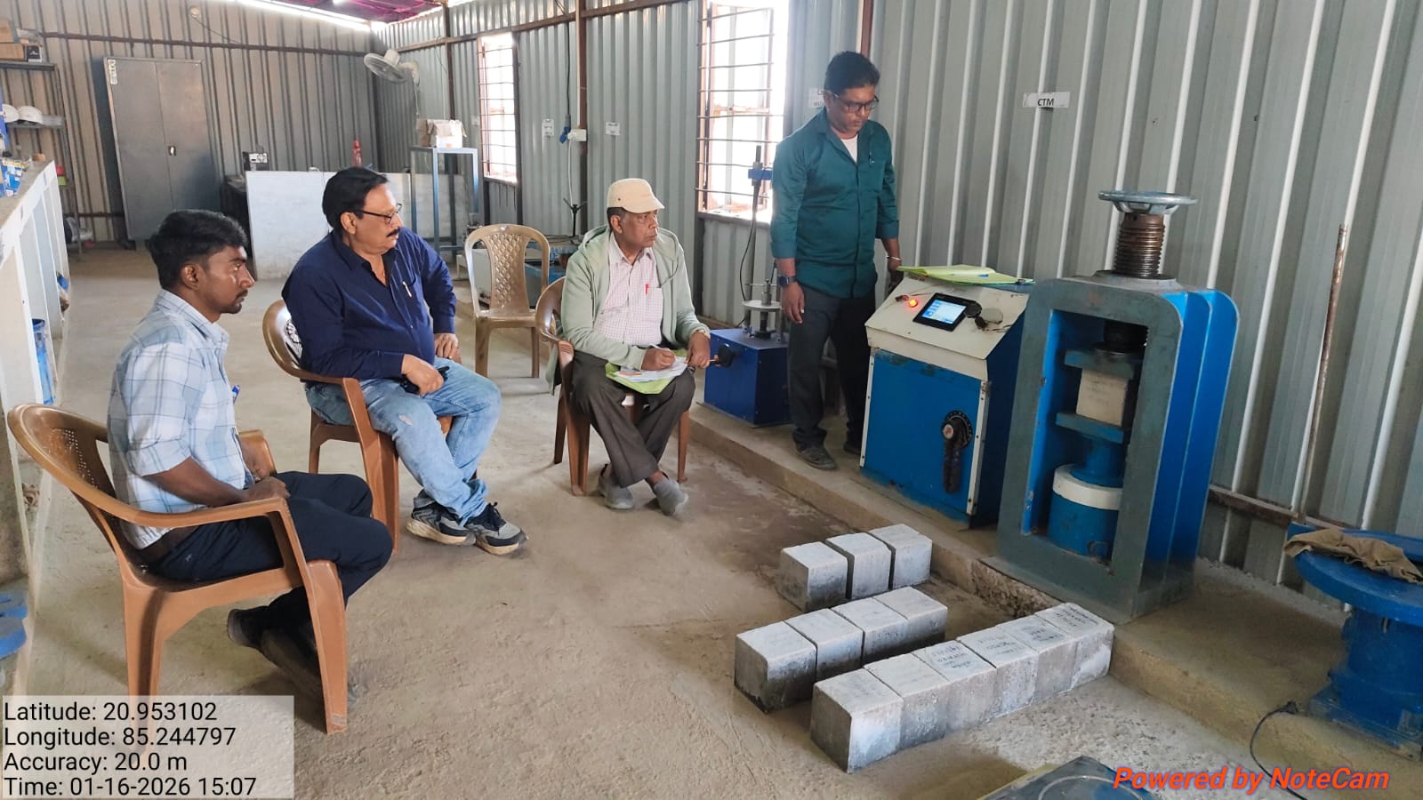 Testing of Compressive M25A20 (Strength is 19.85/mm2 for 07 days) of Divide wall foundation footing and M20A20 (Strength is 29.53/mm2 for 28 days) of Gravity floor has done in presence of Client & PSS team.