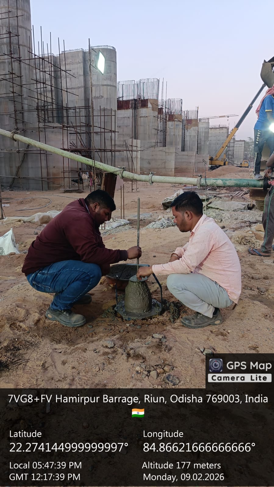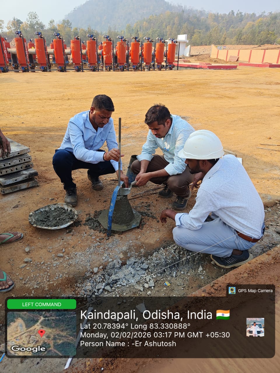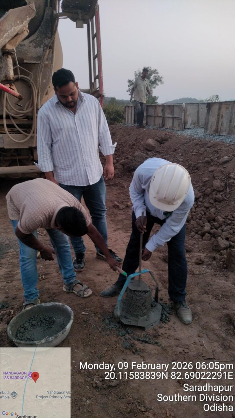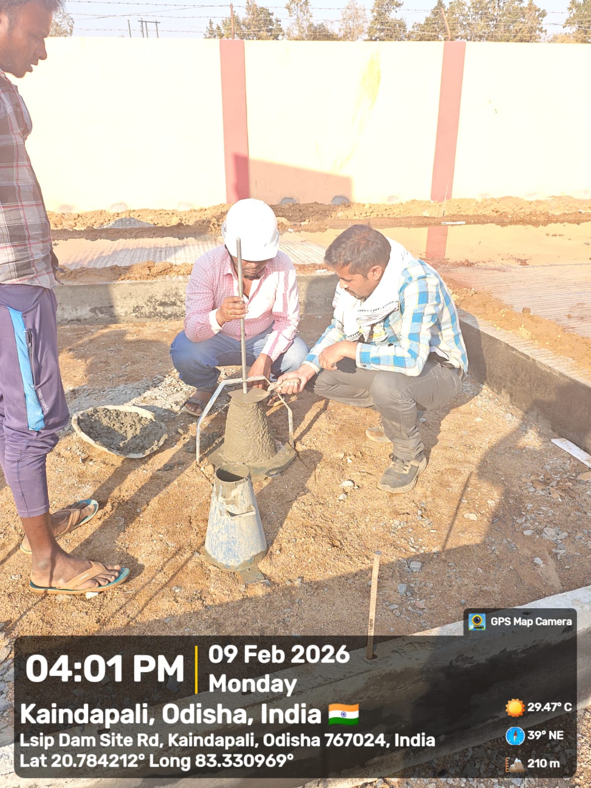 Slump testing work is in progress for internal approach road block casting at Pump House in presence of DoWR JE, PMC team and MEIL staff.