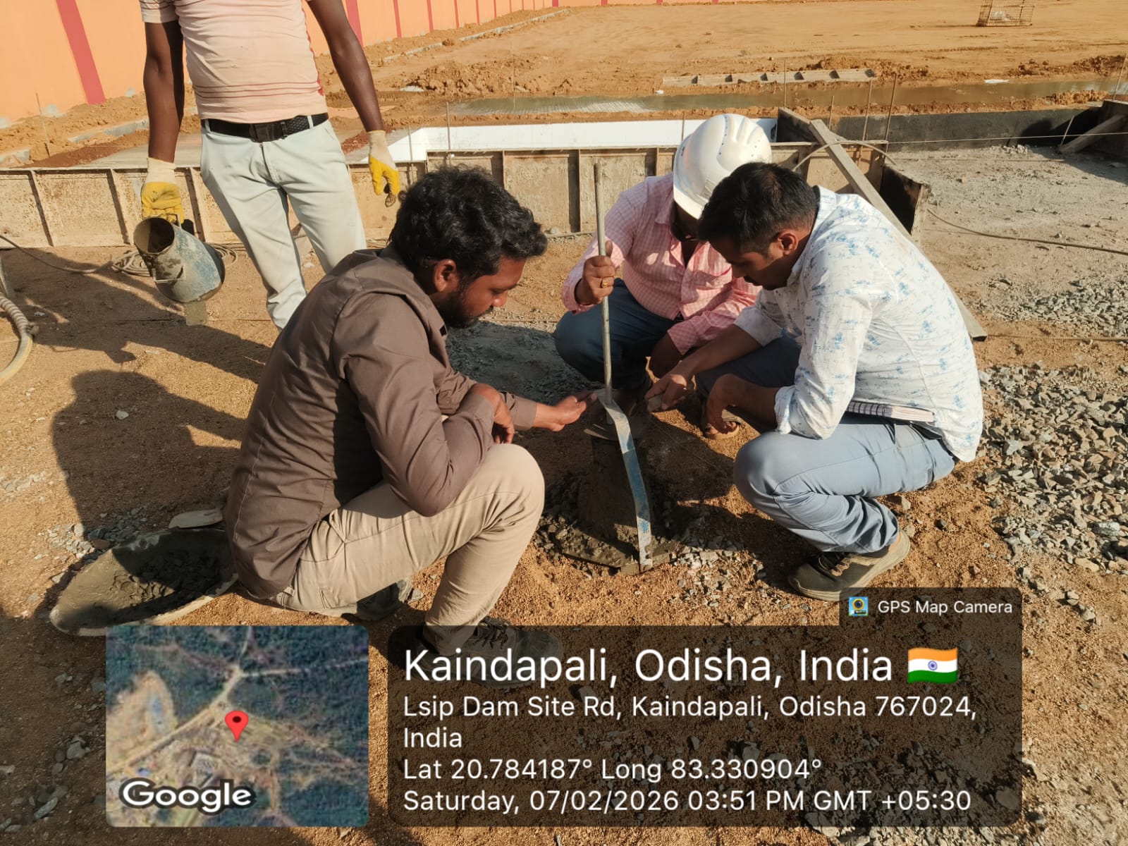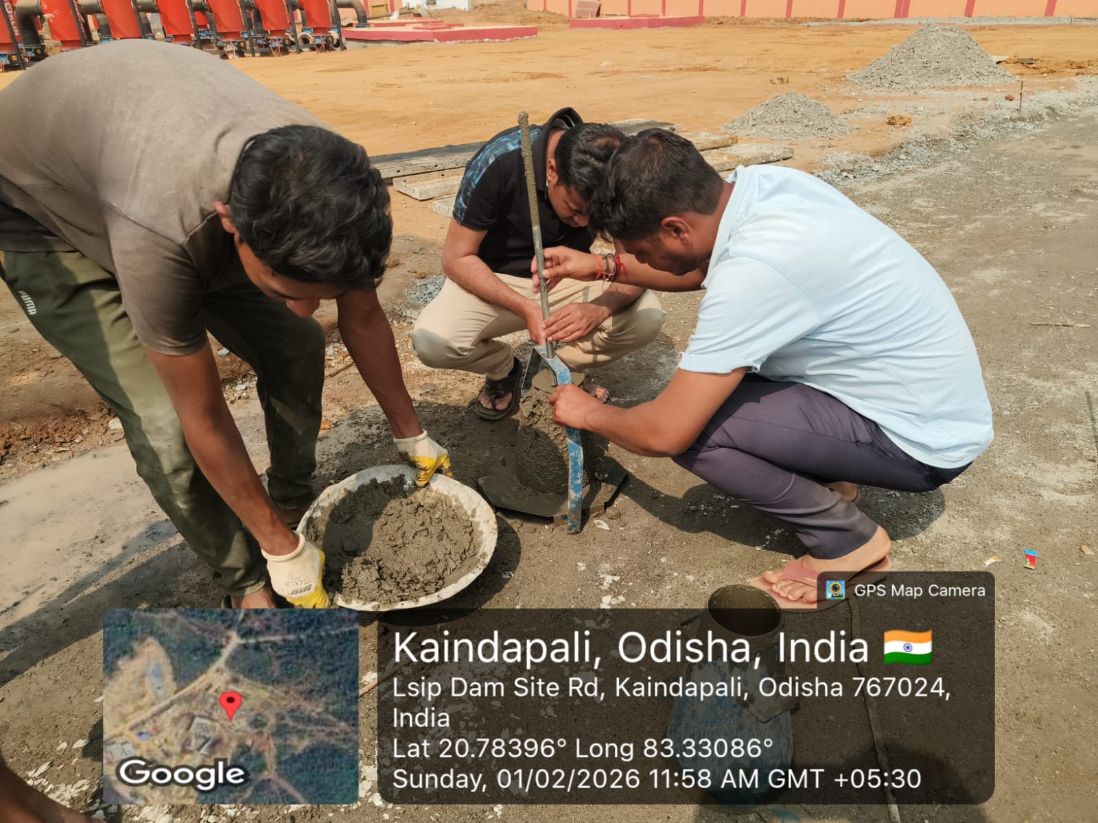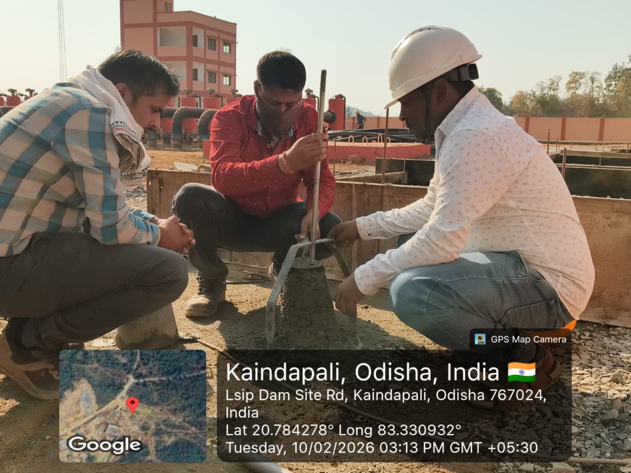 Slump testing work is in progress for internal approach road block casting at Pump House in presence of DoWR JE, PMC team and MEIL staff.
