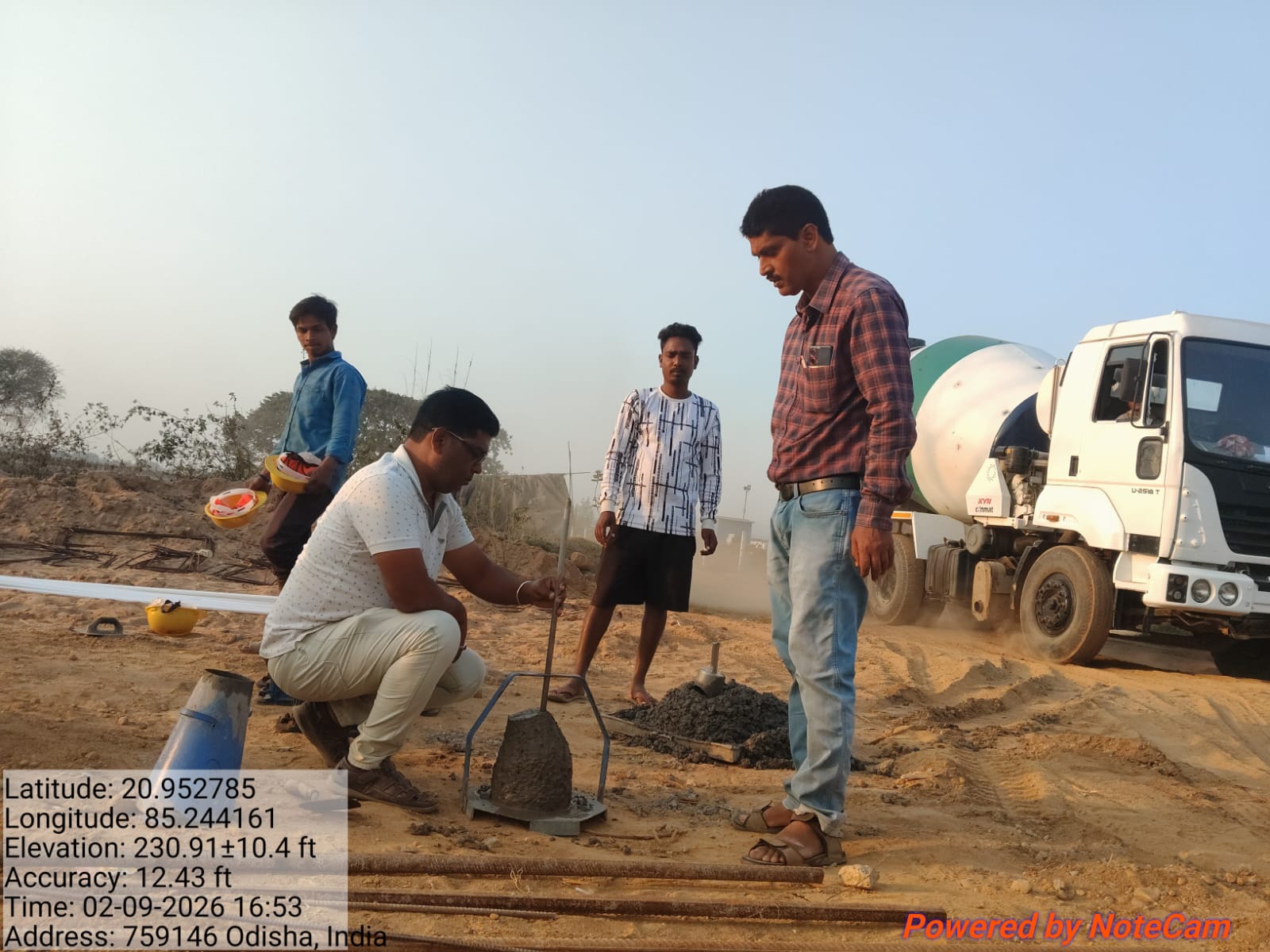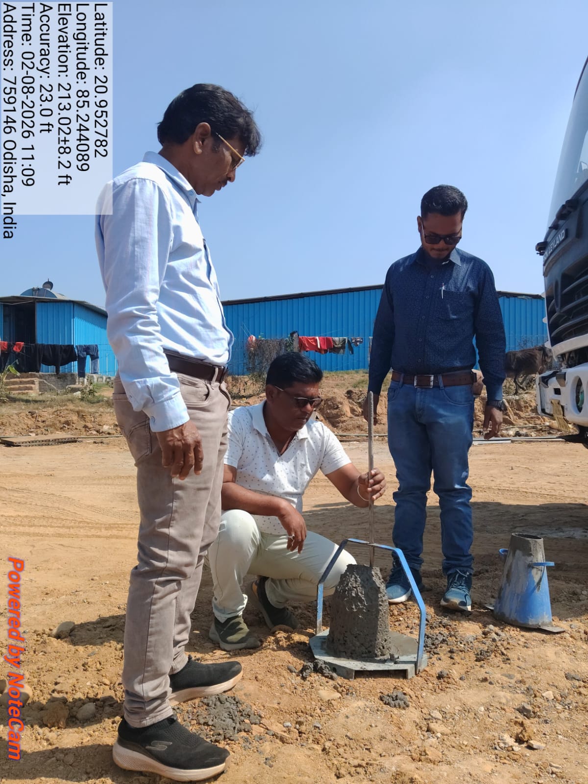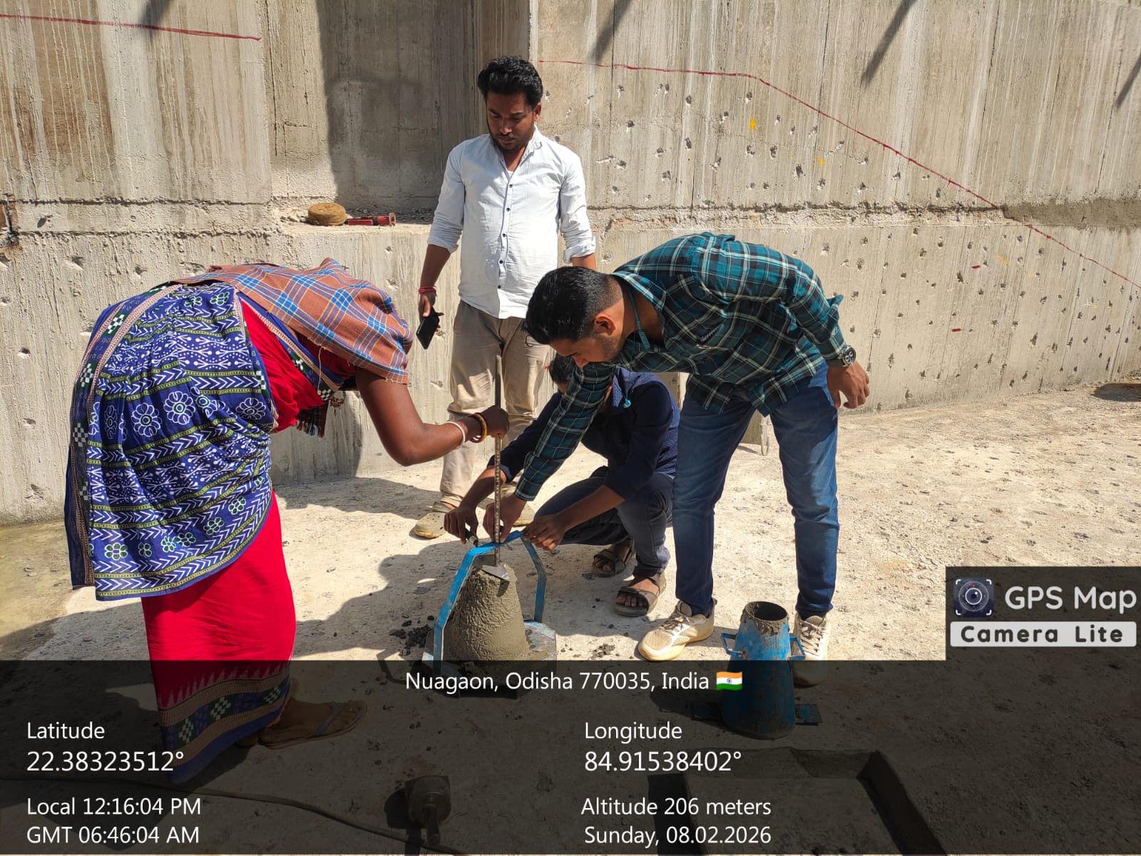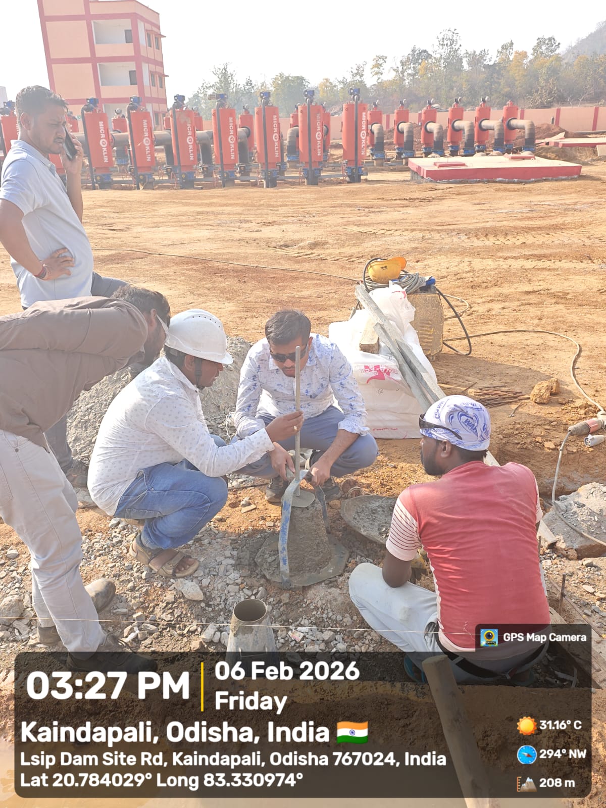 Slump testing work is in progress for internal approach road block casting at Pump House in presence of DoWR JE, PMC team and MEIL staff.